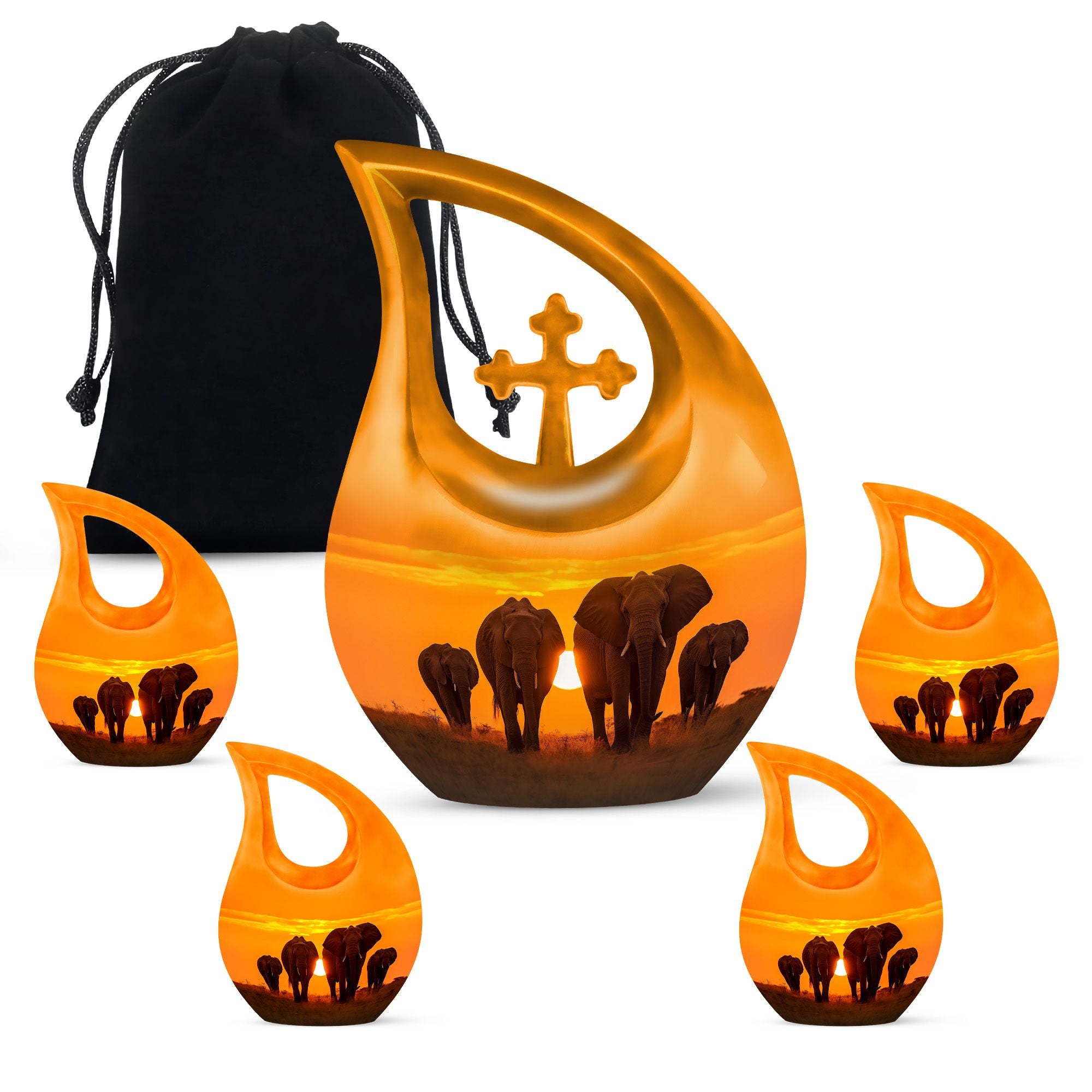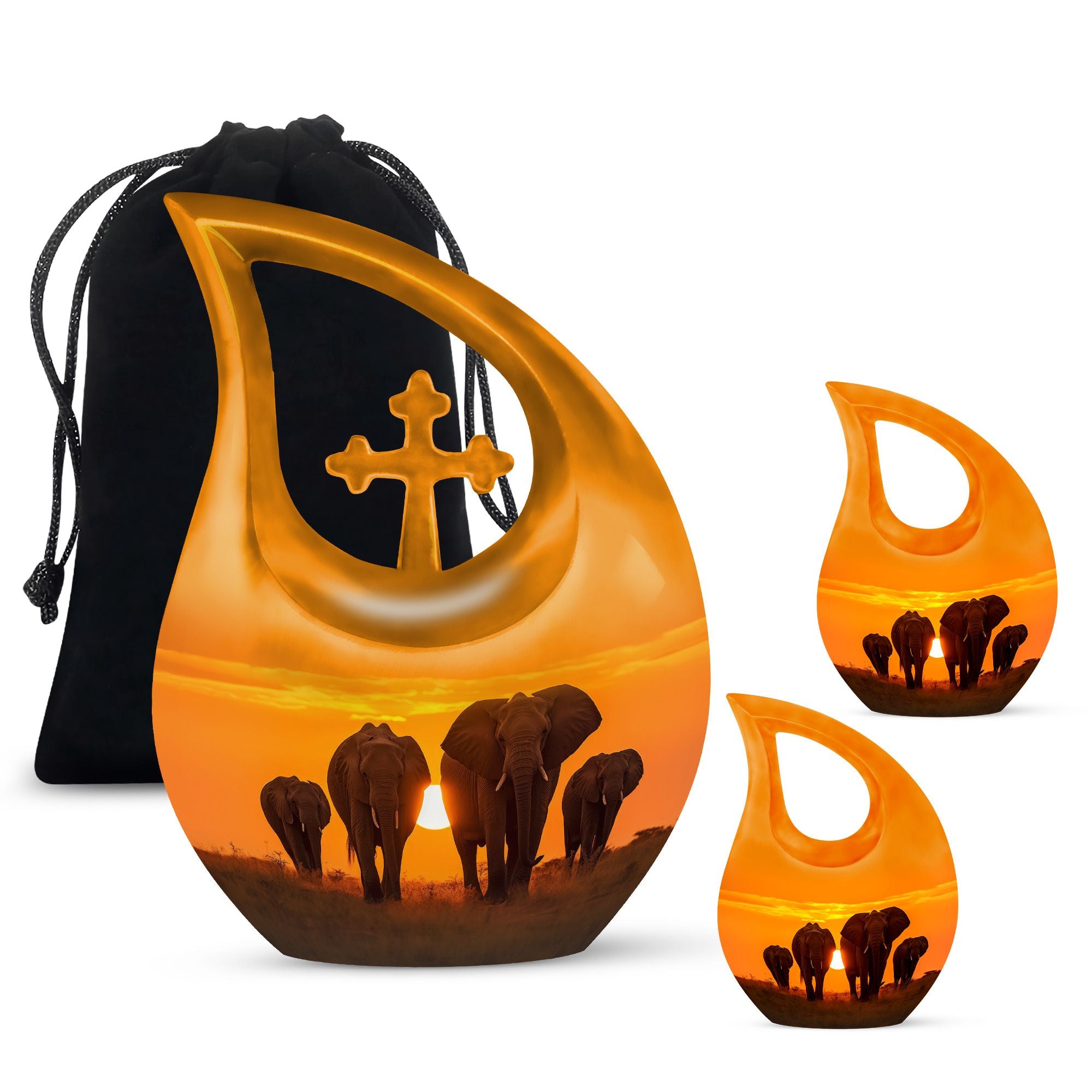 The Elephant Family Sunset design captures the essence of family and togetherness — a touching reminder that love transcends life. Whether you are looking for funeral urns for human ashes adult or elegant cremation urns large, this piece stands as a symbol of everlasting connection and peace.