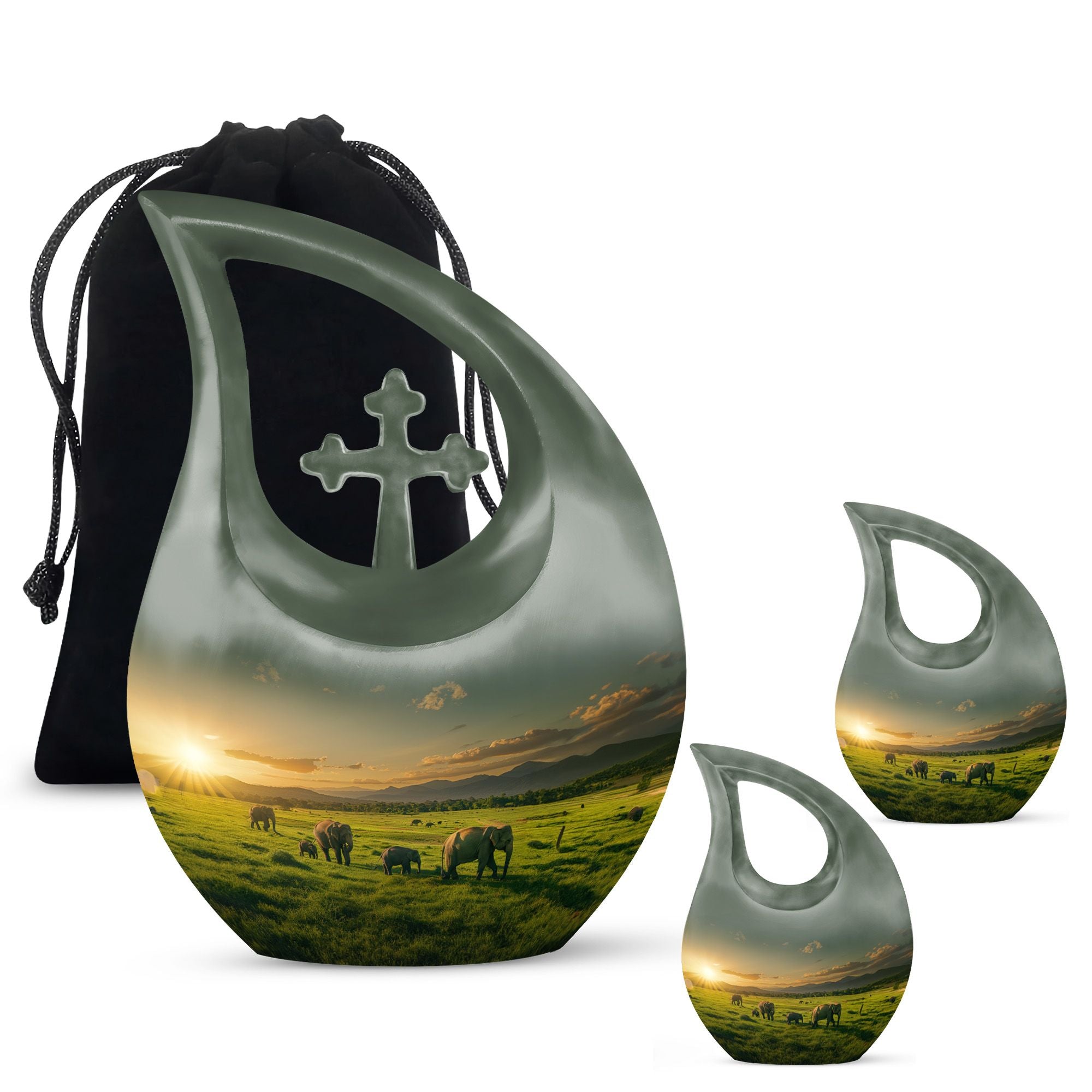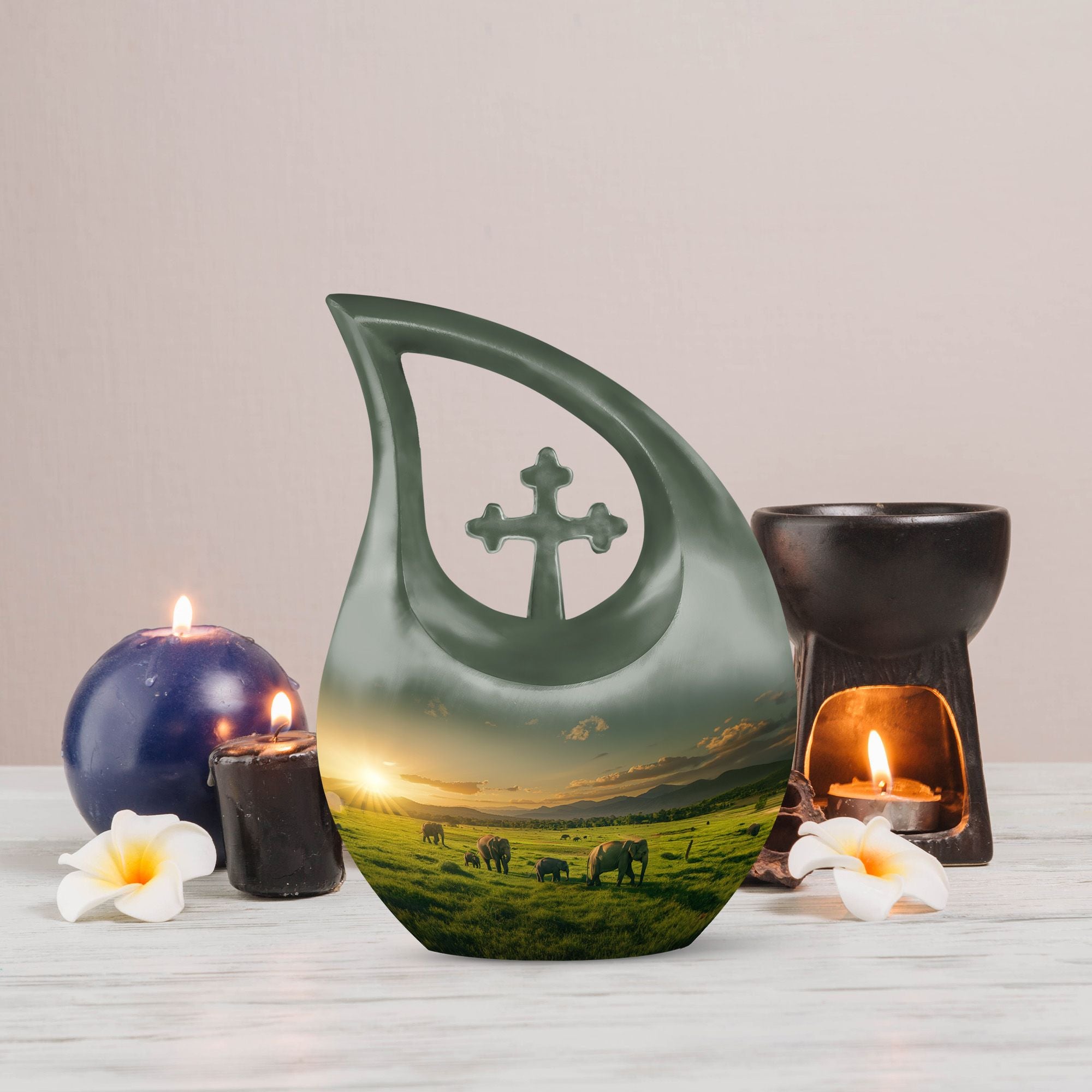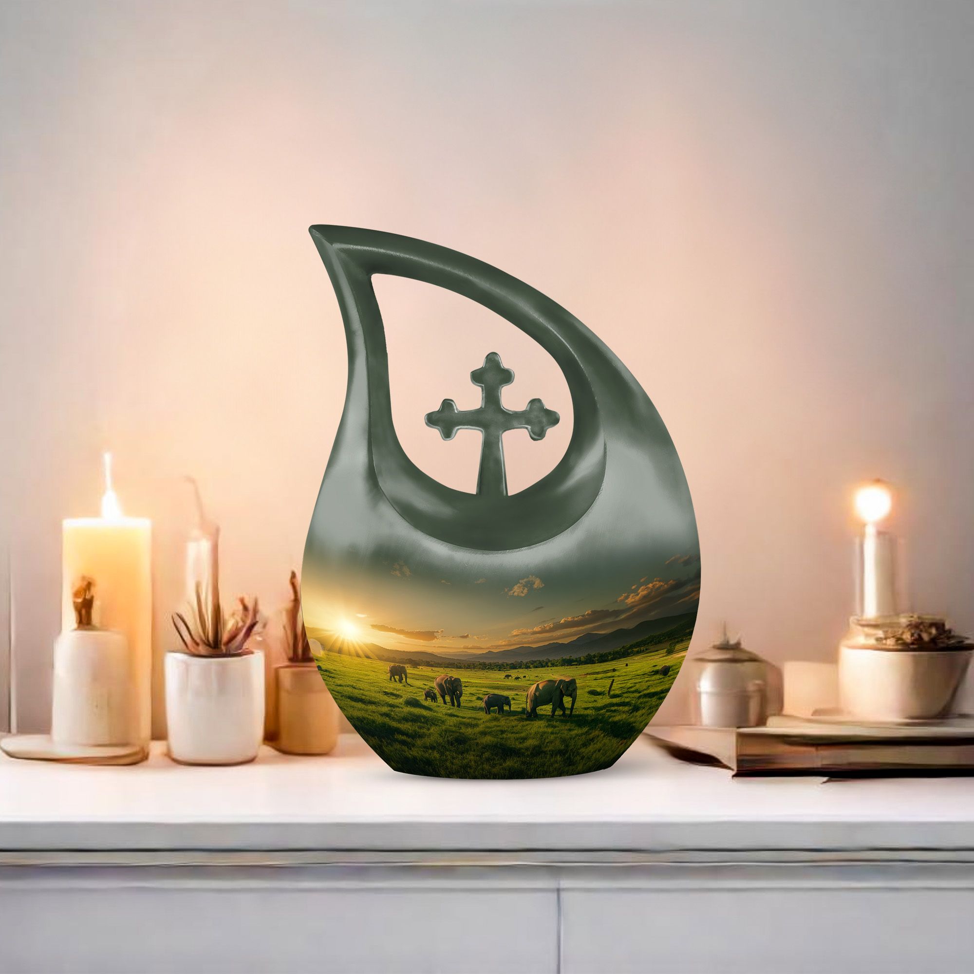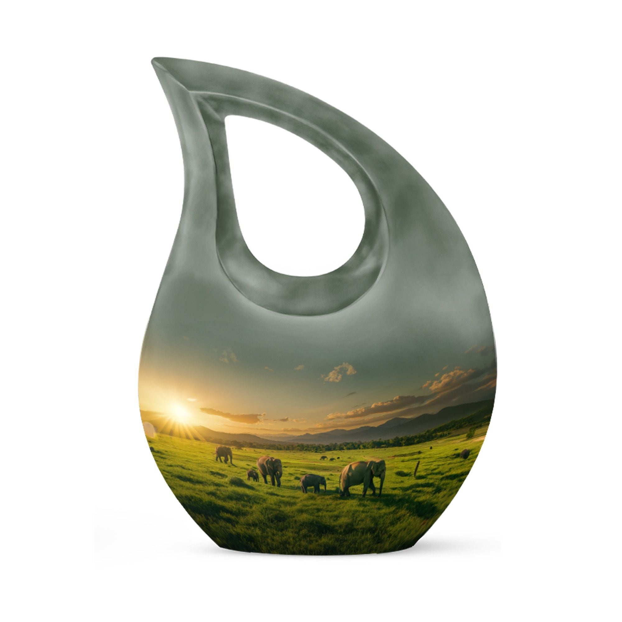 The Elephant Family Cremation Urn honors the unbreakable bonds of love, unity, and protection. With its warm sunset design and symbolic elephant family artwork, this handcrafted memorial is ideal for families seeking burial urns for ground, cremation urns for burial, or a meaningful tribute for a loved one. Its comforting presence provides peace during moments of remembrance.