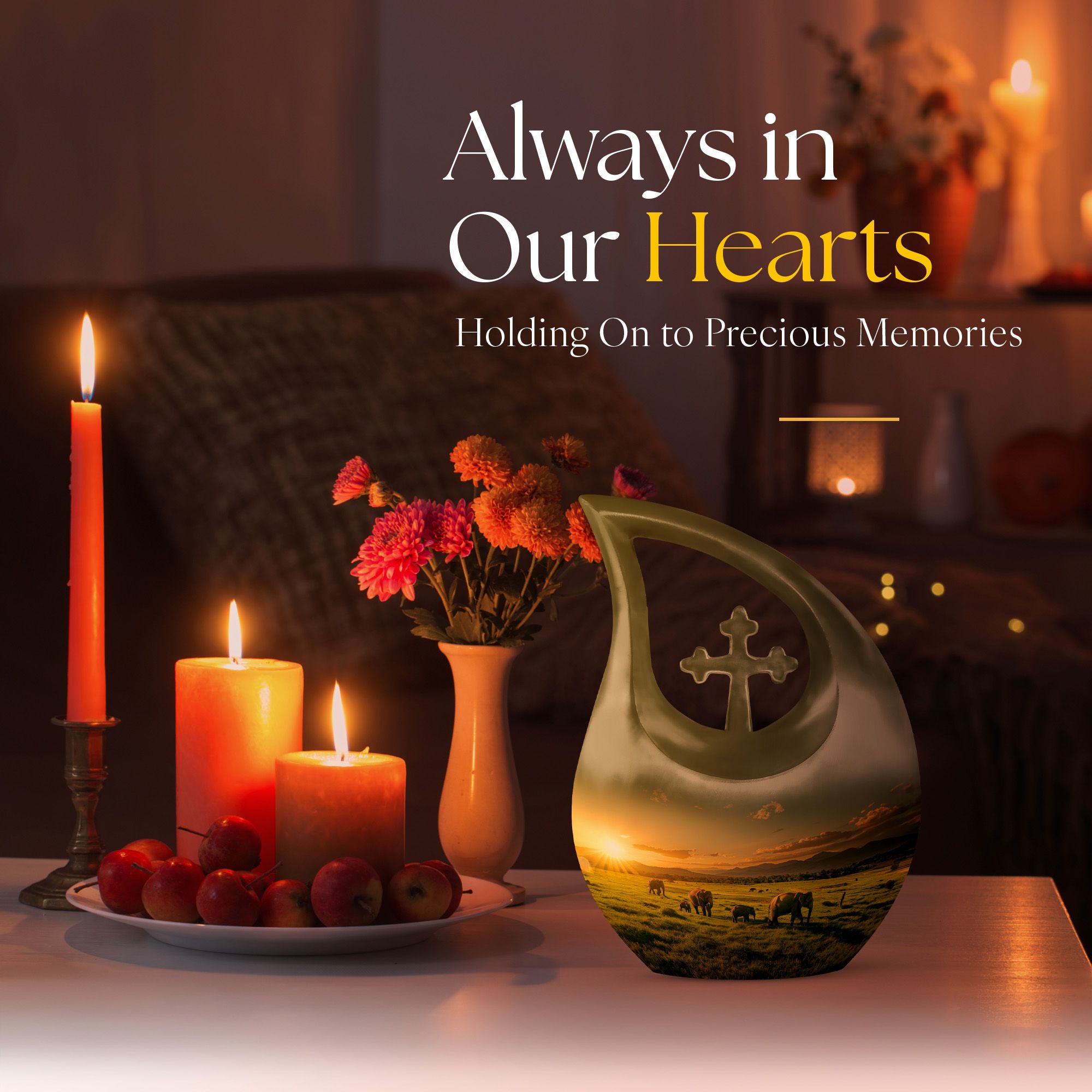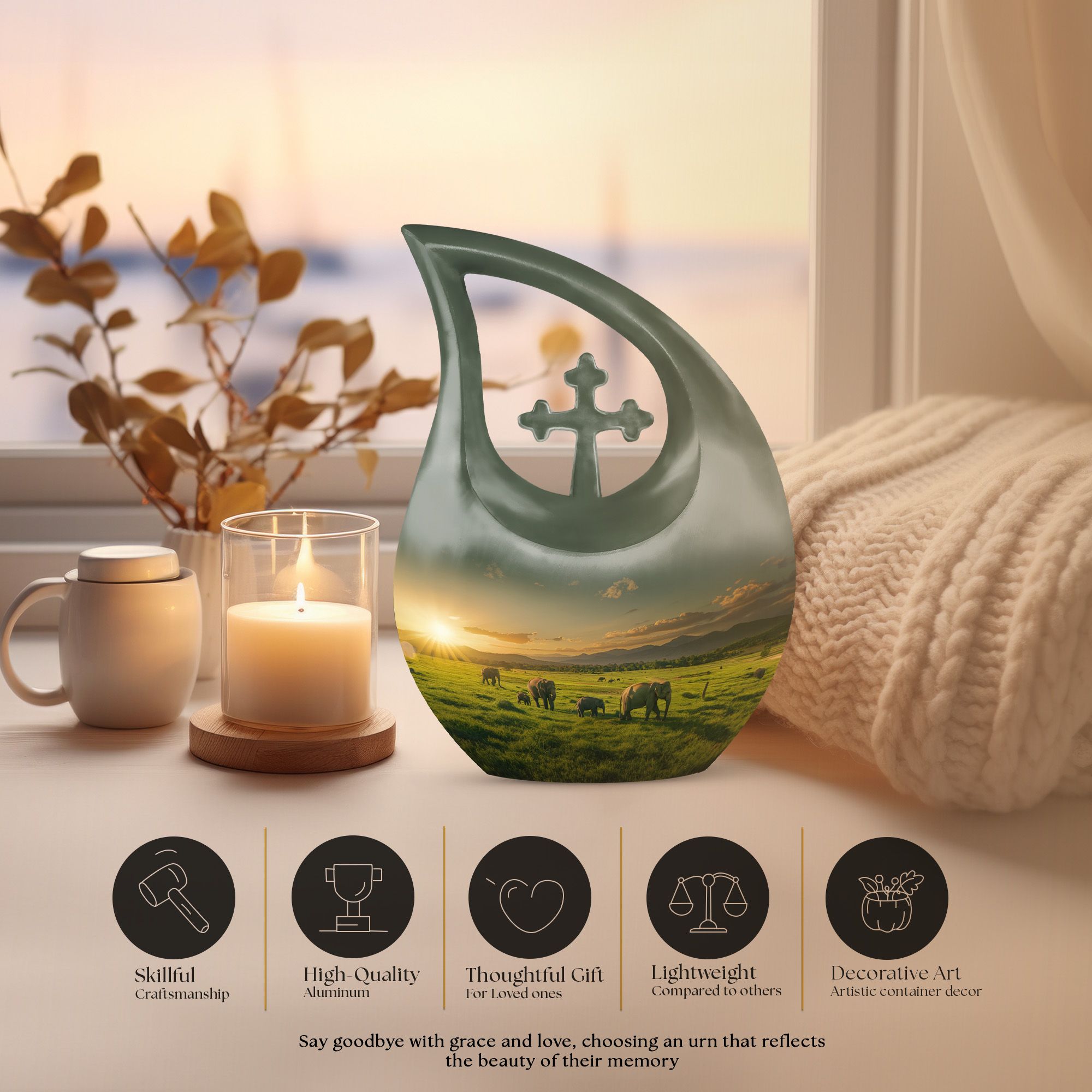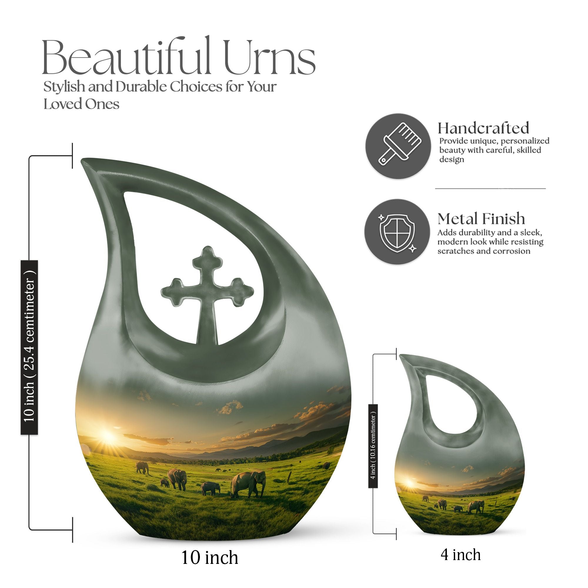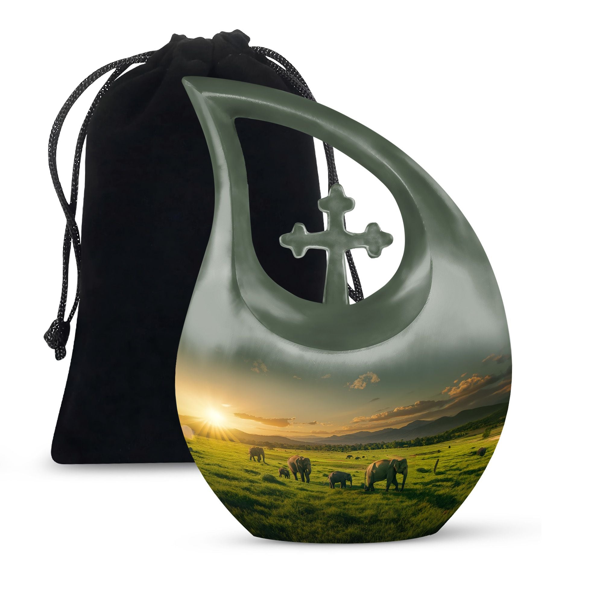 The Elephant Family Cremation Urn honors the unbreakable bonds of love, unity, and protection. With its warm sunset design and symbolic elephant family artwork, this handcrafted memorial is ideal for families seeking burial urns for ground, cremation urns for burial, or a meaningful tribute for a loved one. Its comforting presence provides peace during moments of remembrance.
