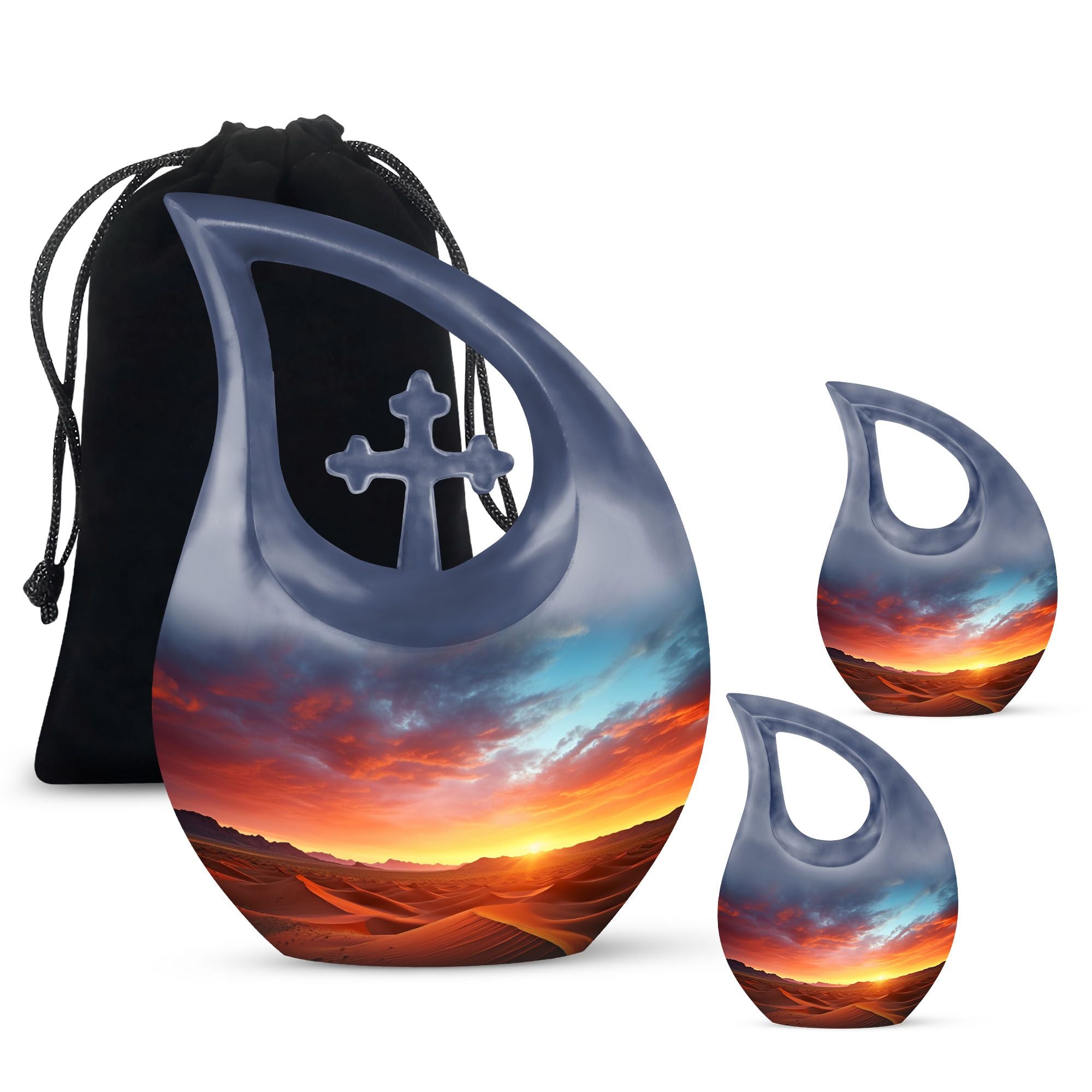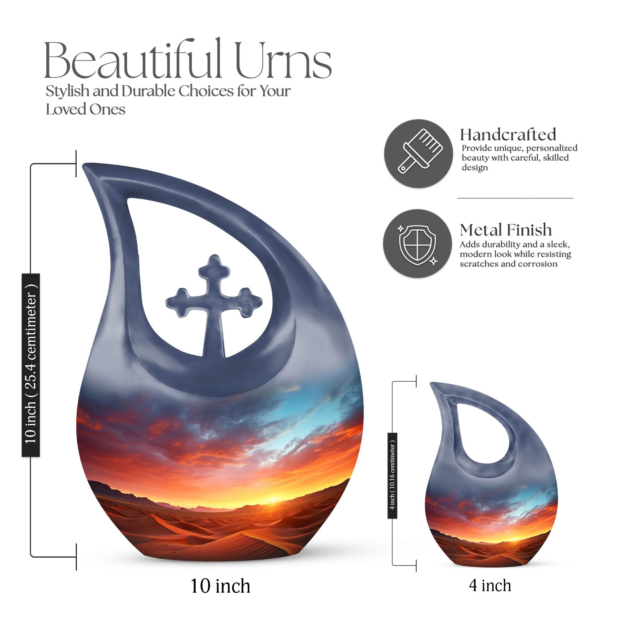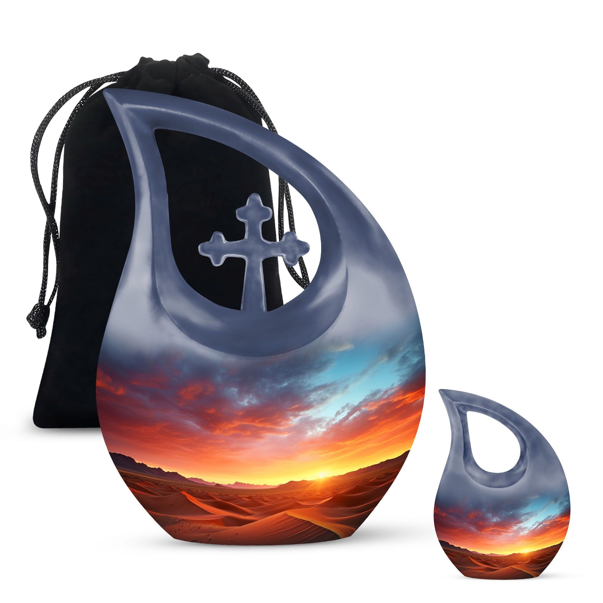 Available in a large and small urn combo, this set offers families the option to share ashes among loved ones. The small urns for women human ashes pair beautifully with the main urn, allowing for intimate keepsakes to be cherished forever. Ideal for use as cremation urns for ashes for women or urns for adults men, it’s a touching reminder that love, like the desert sun, never truly fades.