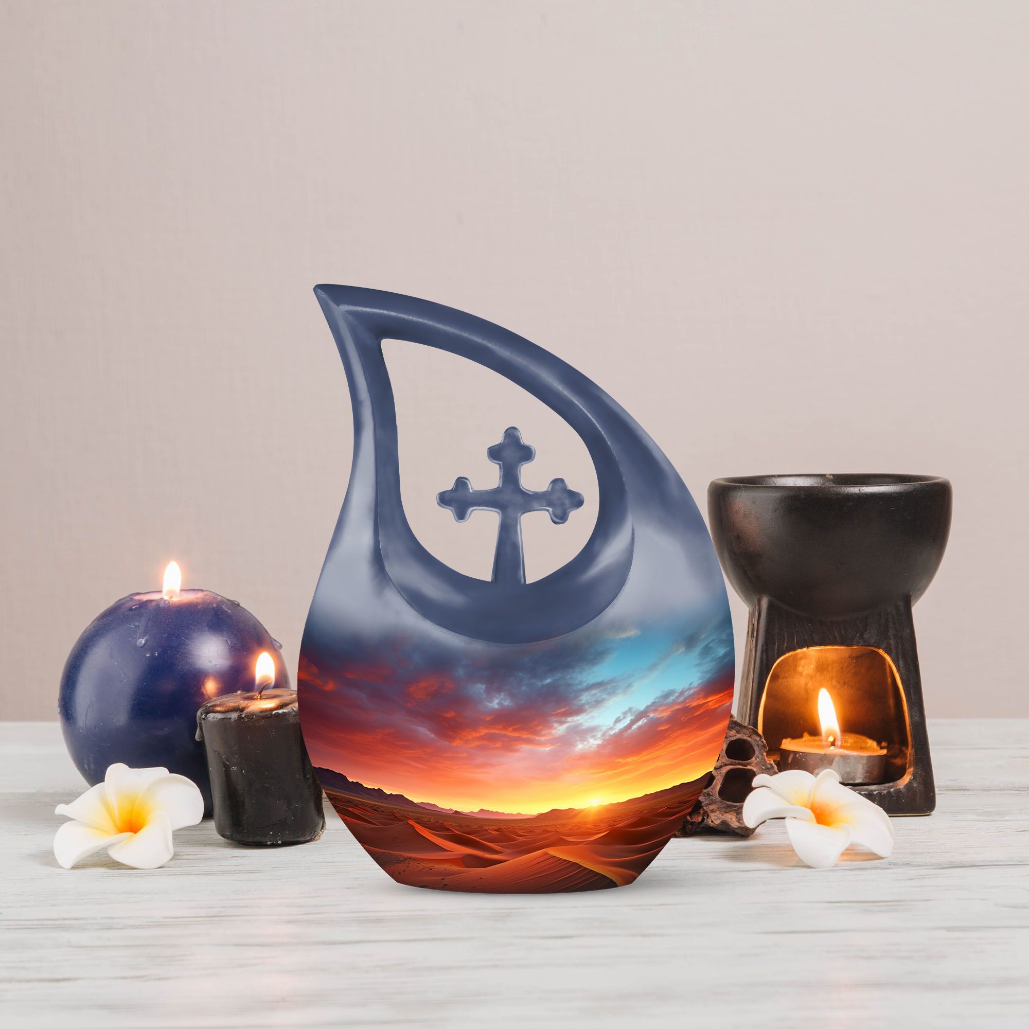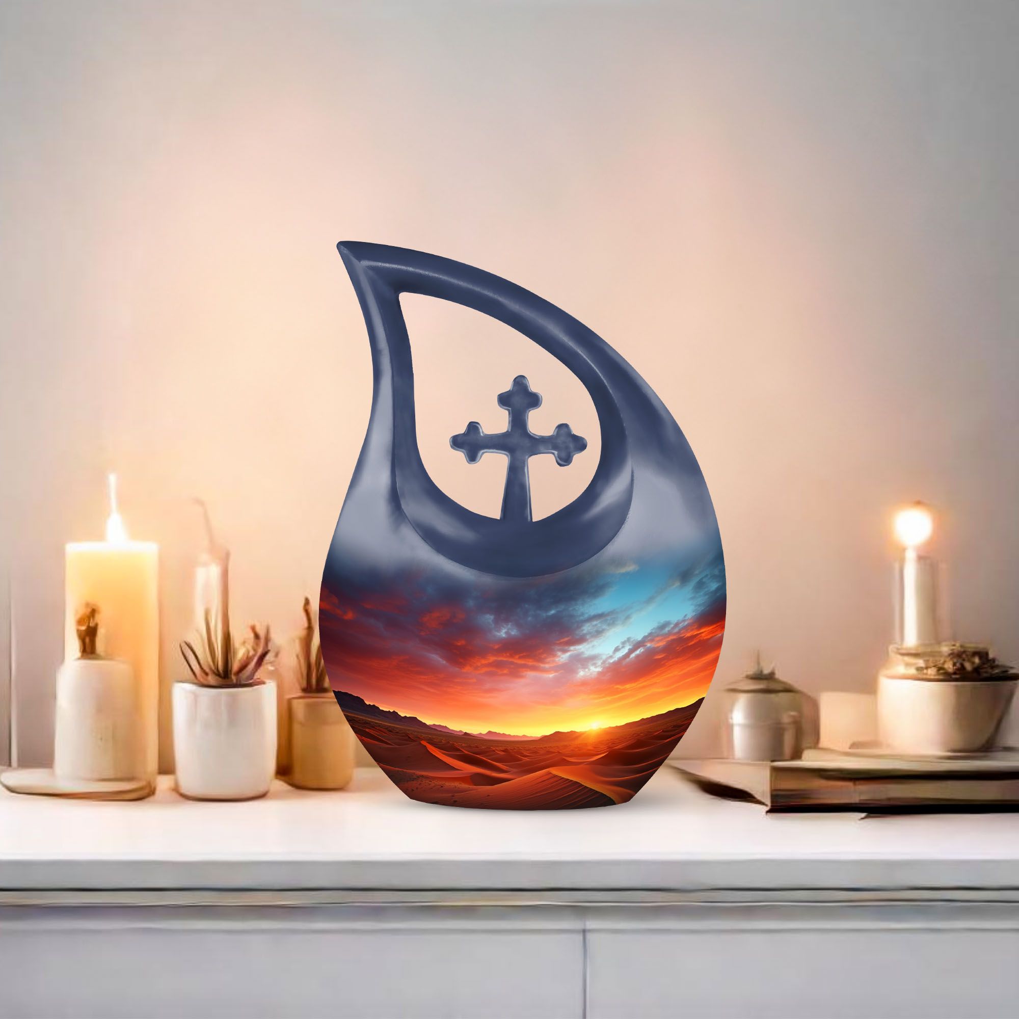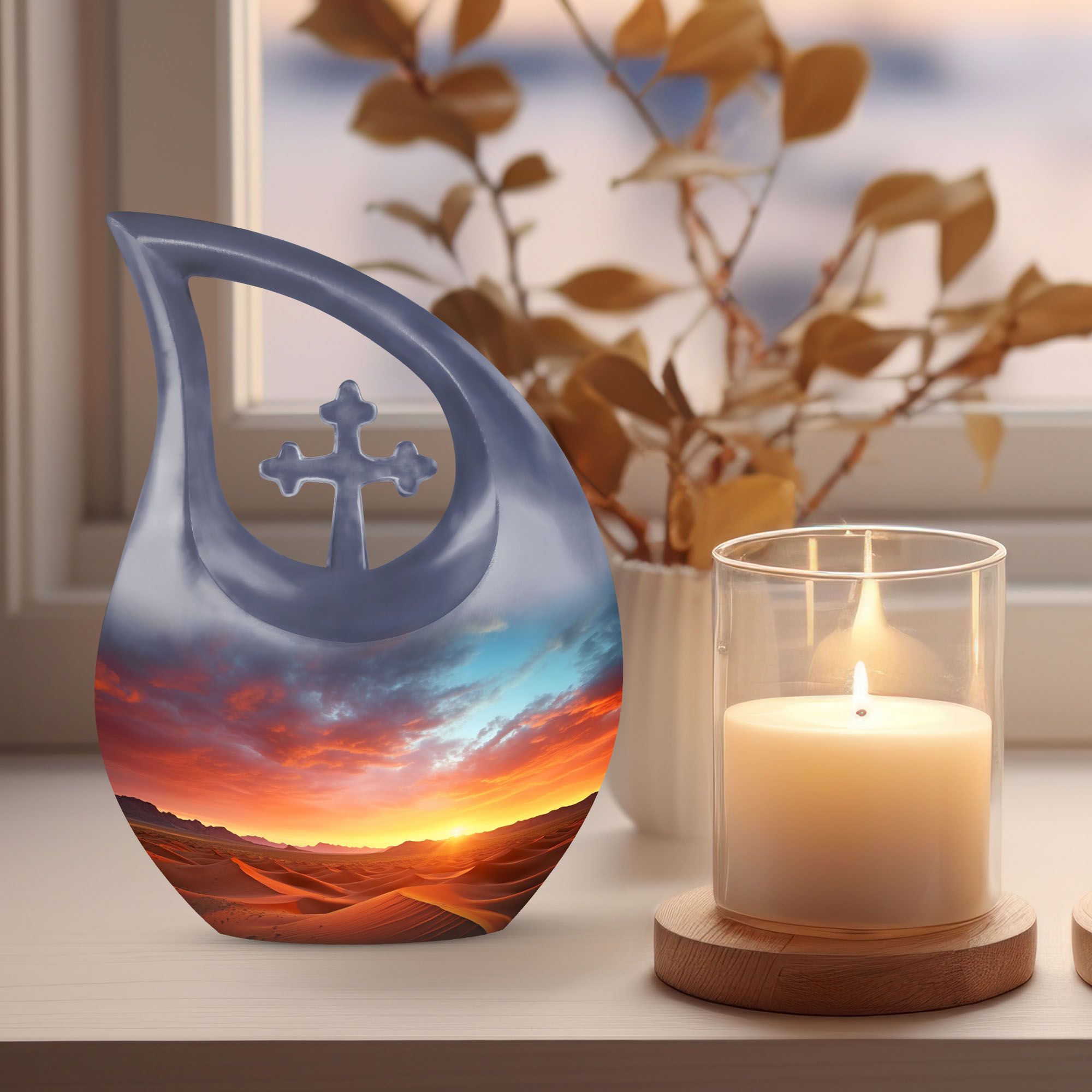 The Desert Cremation Urn for Ashes captures the peaceful beauty of a sunset over golden sands — a serene tribute that reflects tranquility, love, and eternal rest. Designed to celebrate a well-lived life, this urn provides comfort to families seeking a heartfelt way to preserve the ashes of their loved ones. Perfect as an urn for human ashes adult women or funeral urn for men, it symbolizes harmony and timeless beauty.