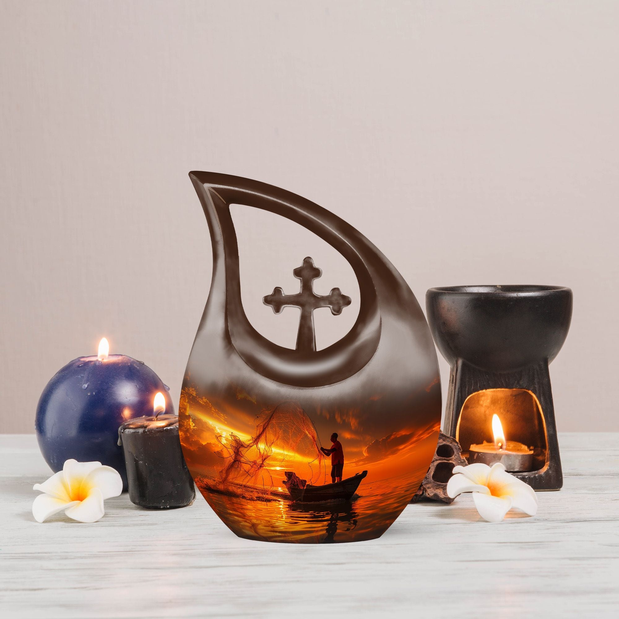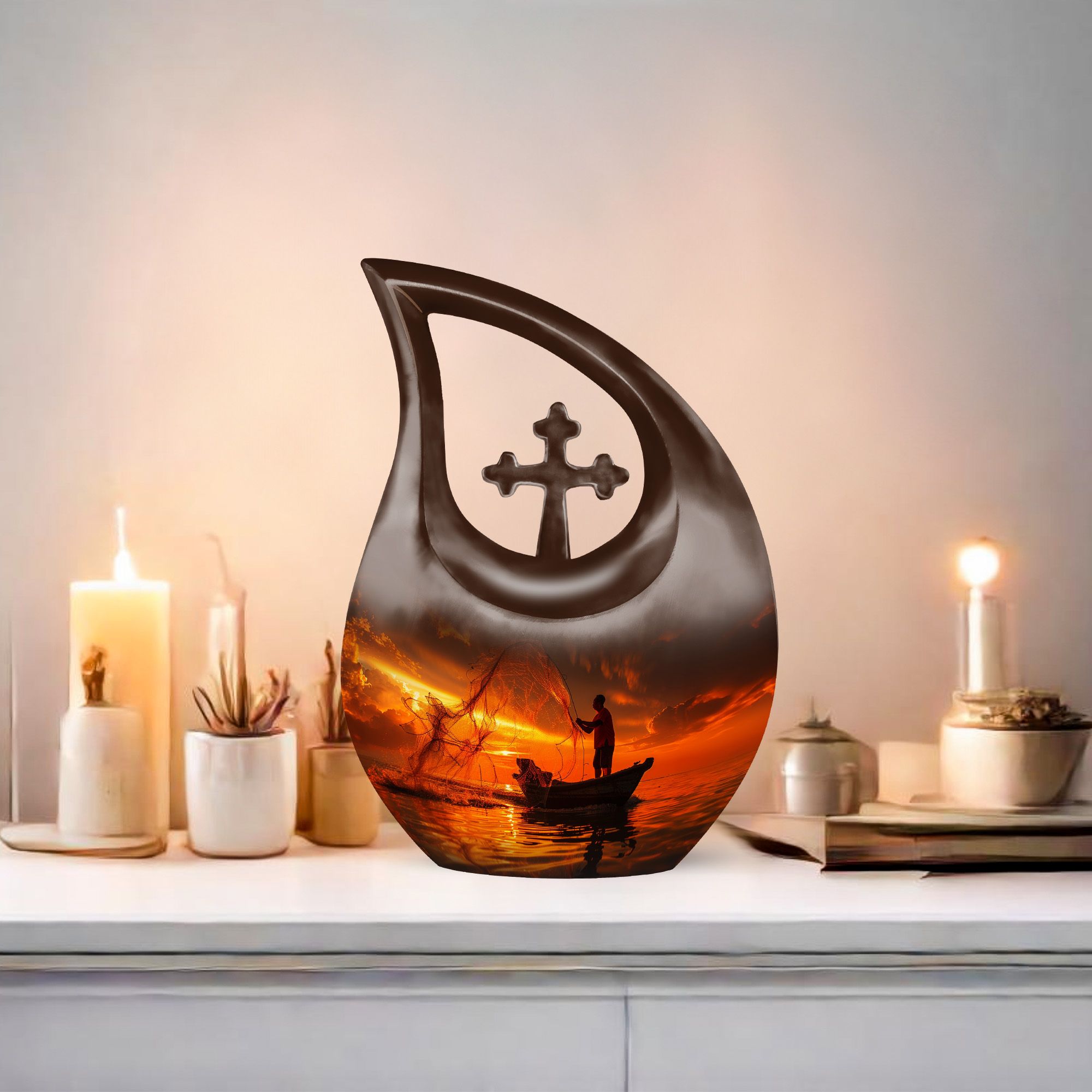 Honor cherished memories with this Fishing Cremation Urn, a beautifully crafted sunset memorial urn created to bring comfort and serenity. Designed for families seeking burial urns for human ashes or cremation urns for human ashes adult burial, it provides a peaceful and meaningful tribute for Mom, Dad, or any loved one who found solace in nature.