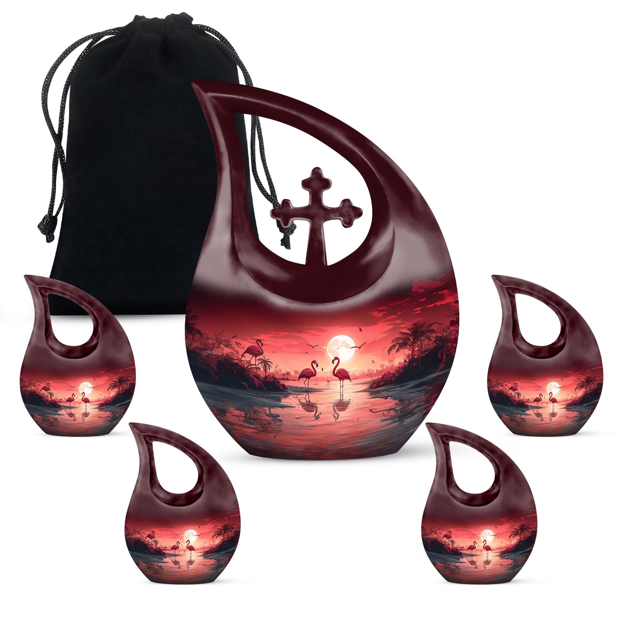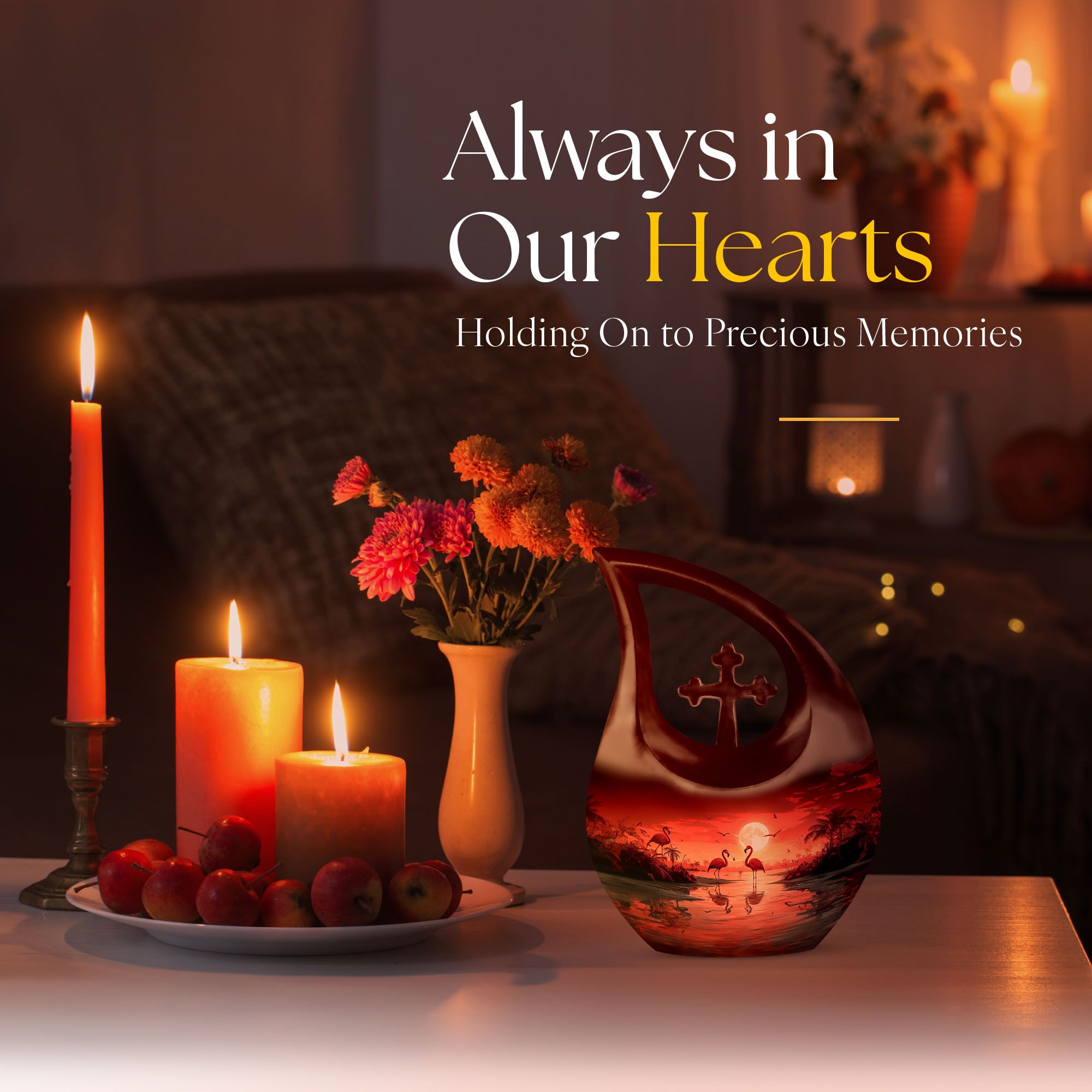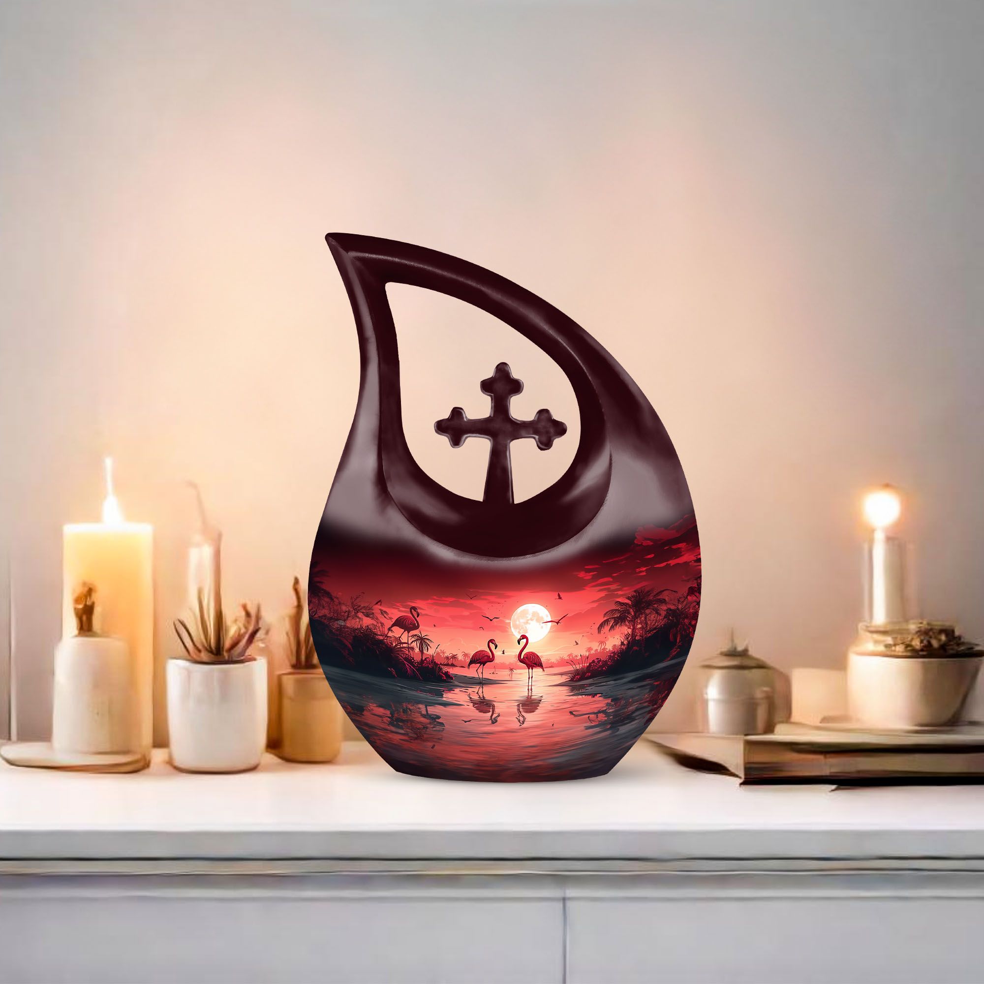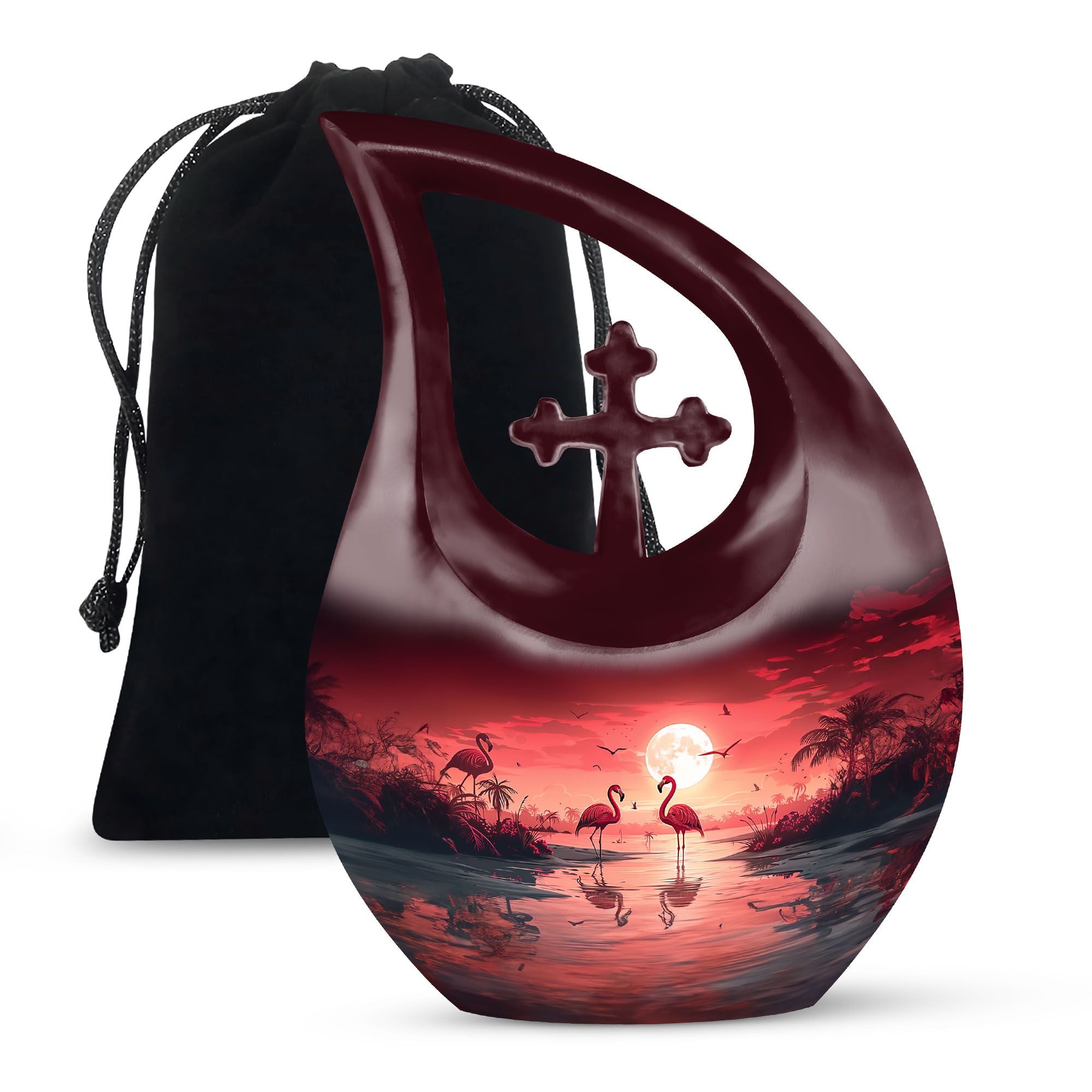 Honor a cherished life with this Flamingo Funeral Urn, a serene sunset-inspired memorial symbolizing peace, grace, and everlasting love. Its warm tones and elegant flamingo artwork make it a meaningful choice for families seeking a large cremation urn, a comforting large urn for adult ashes, or a heartfelt tribute for men, women, and loved ones of any age.