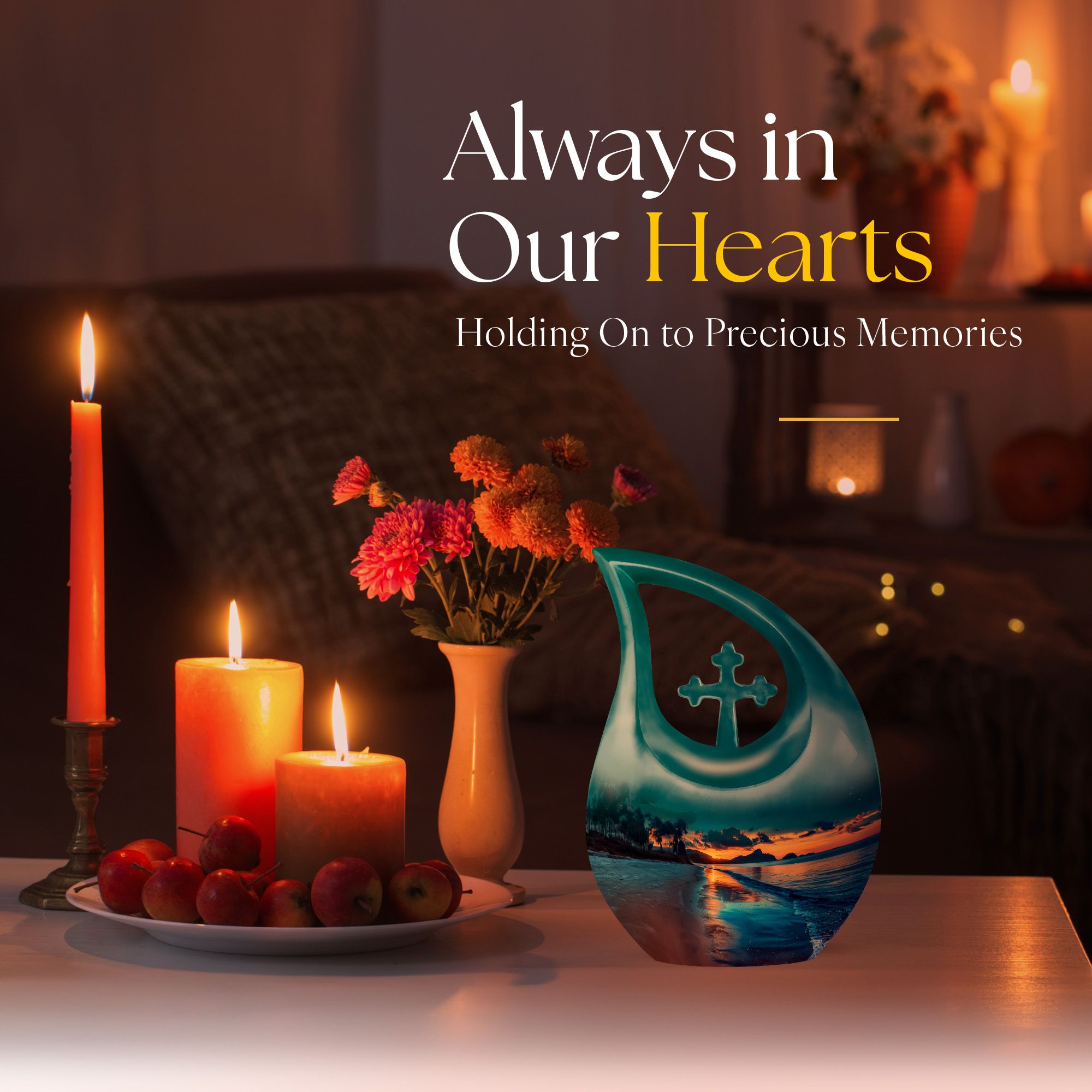 A sunset symbolizes peace, transition, and eternal love—qualities beautifully reflected in this Galaxy Memorial Urn. Designed to honor treasured memories, it offers comfort and dignity for families seeking Funeral Urns for Human Ashes Adult, Urns for Human Ashes Large, or a meaningful celestial tribute.