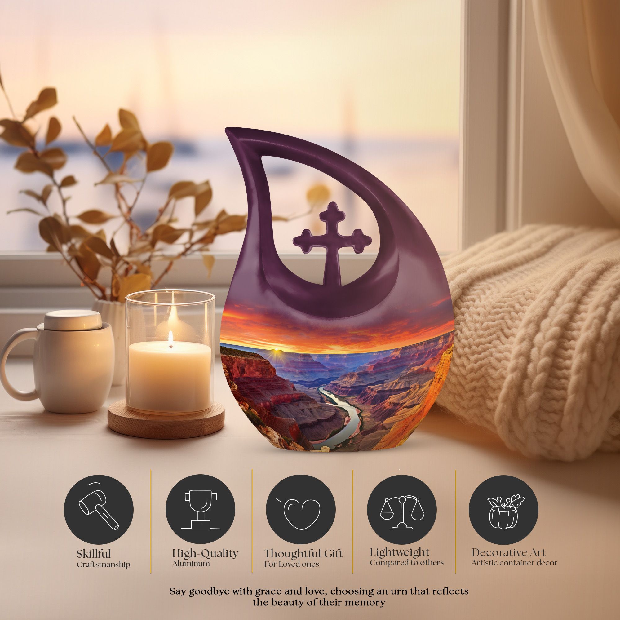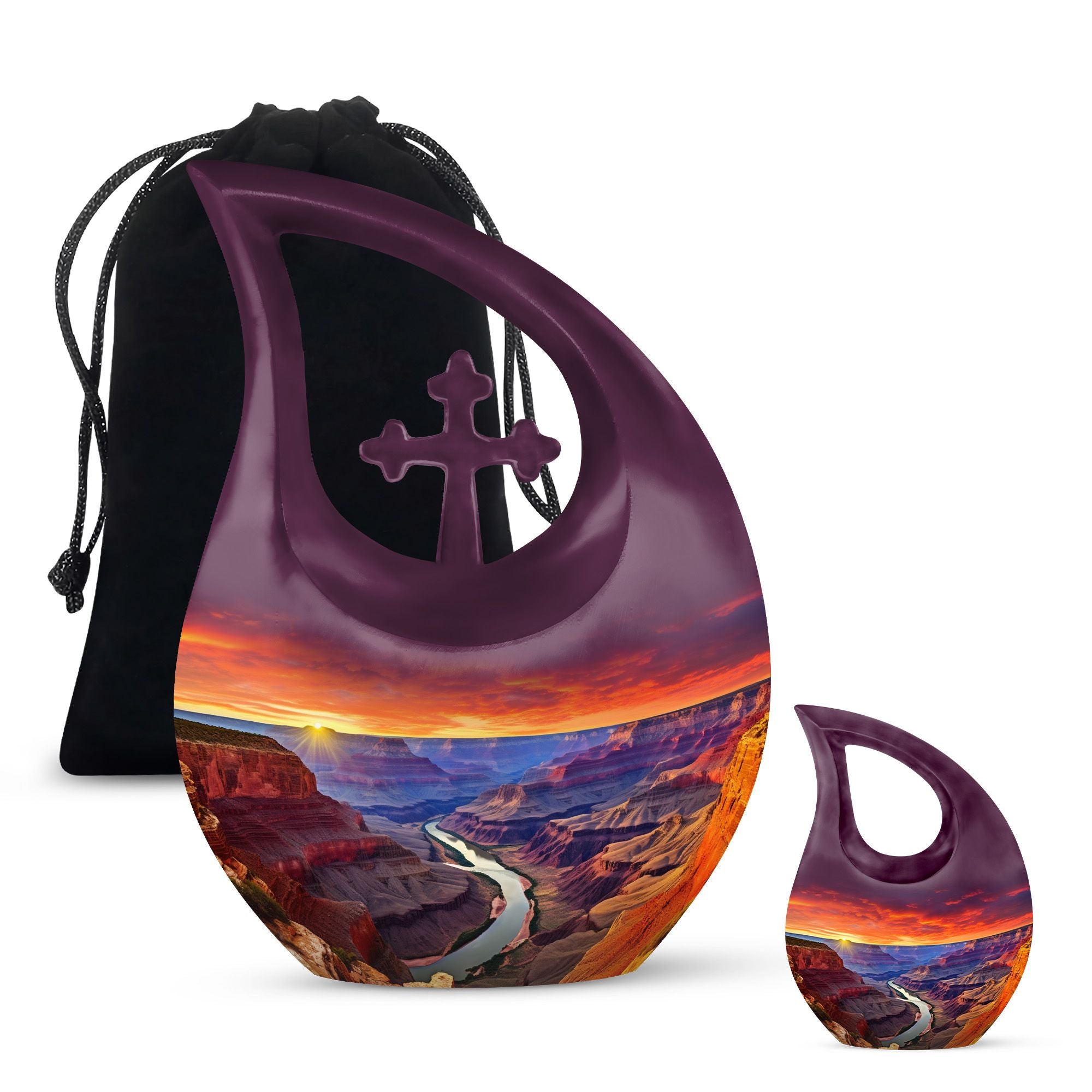 Made from high-quality aluminum, this women adult urn features soft purple hues that mirror the serene tones of a Grand Canyon sunset. The smooth finish and gentle gradient add a sense of tranquility to any setting. A secure screw-top lid ensures ashes are safely kept, while the delicate design offers timeless beauty and strength. Perfectly suited as a small urn for women, it can be used for display, burial, or as a cherished keepsake.