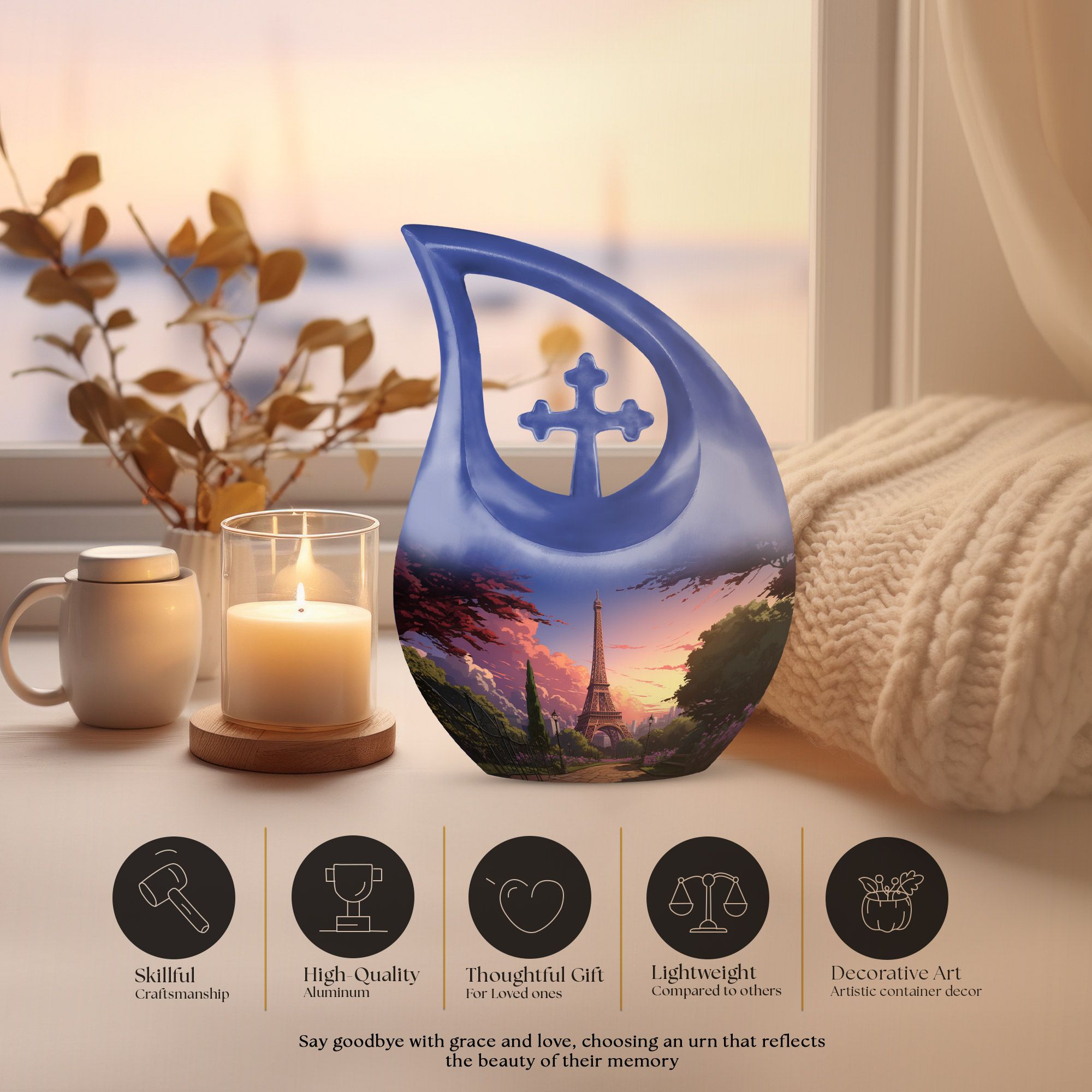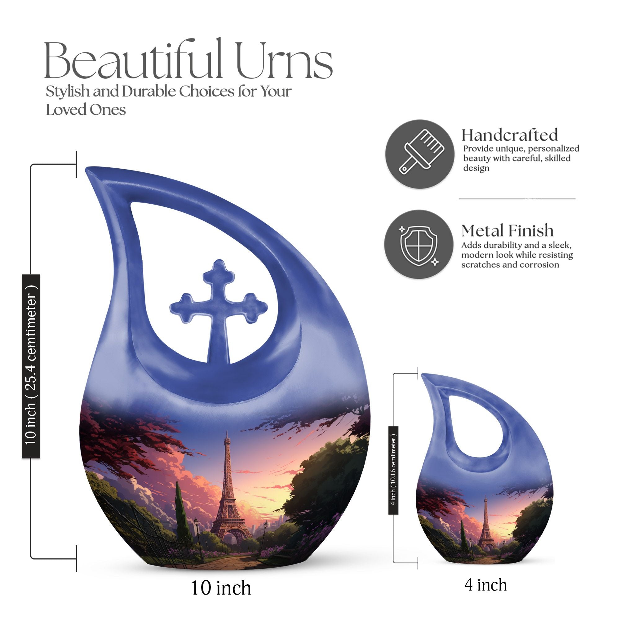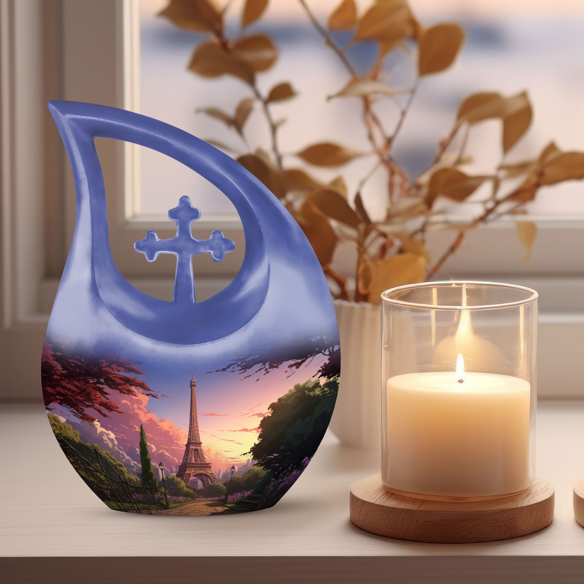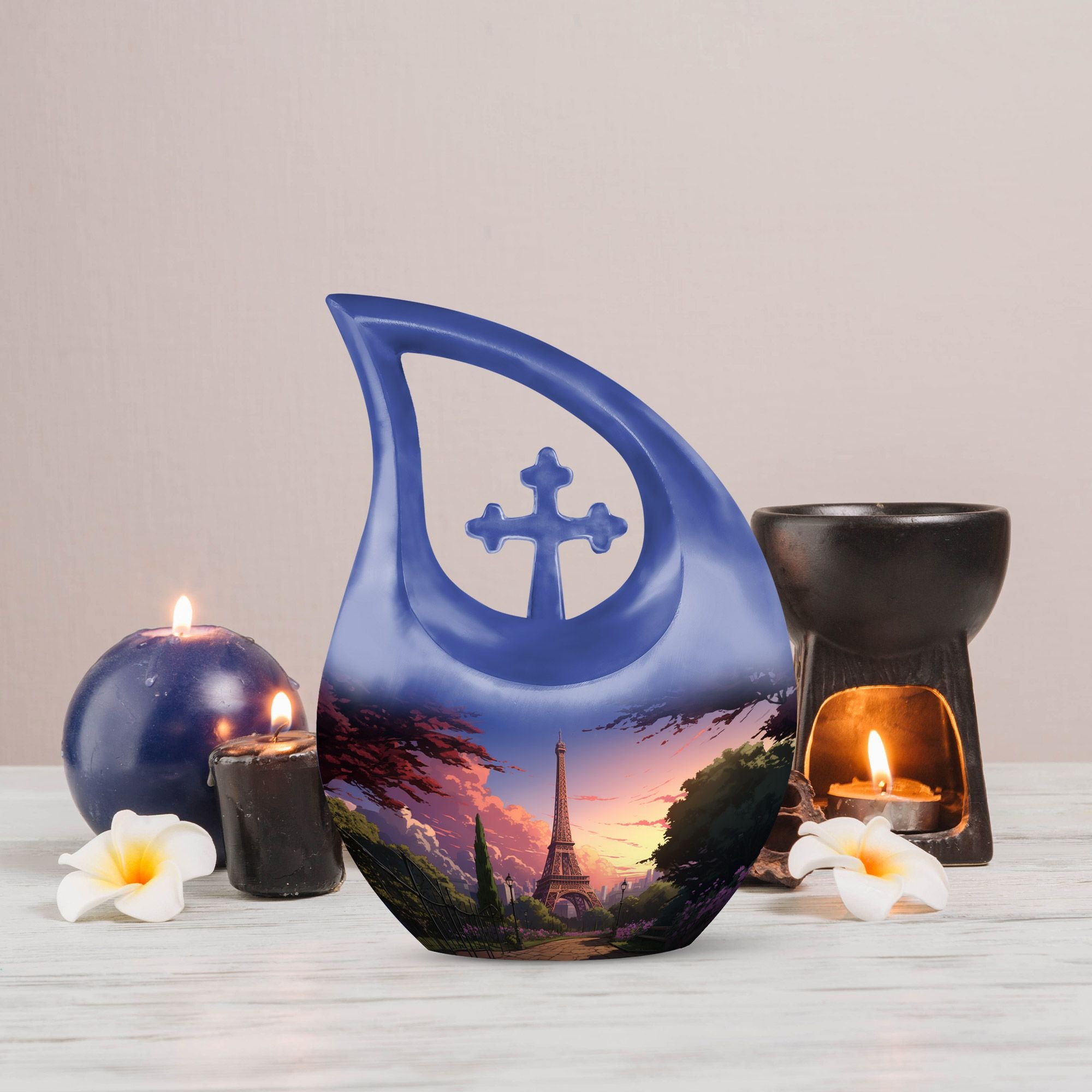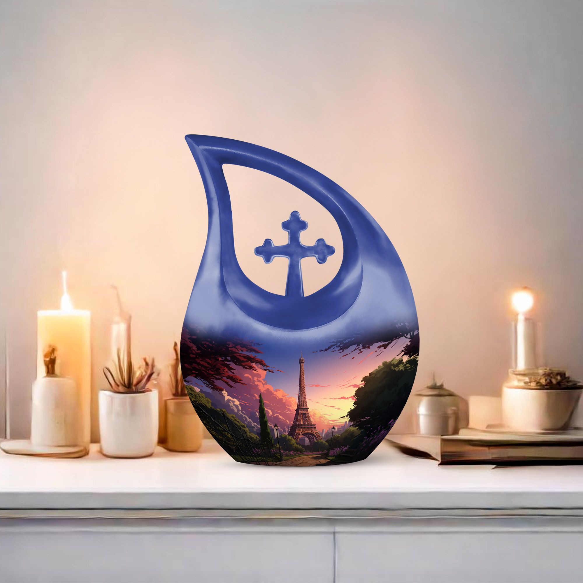 Capture timeless love and cherished memories with our Eiffel Tower Cremation Urn, a stunning tribute inspired by the romance and beauty of Paris. This blue memorial urn with Paris sunset art represents peace, elegance, and everlasting devotion — an ideal choice among beautiful urns women and men urns for human ashes. Designed for both women and men, it’s a symbol of love that transcends distance and time.