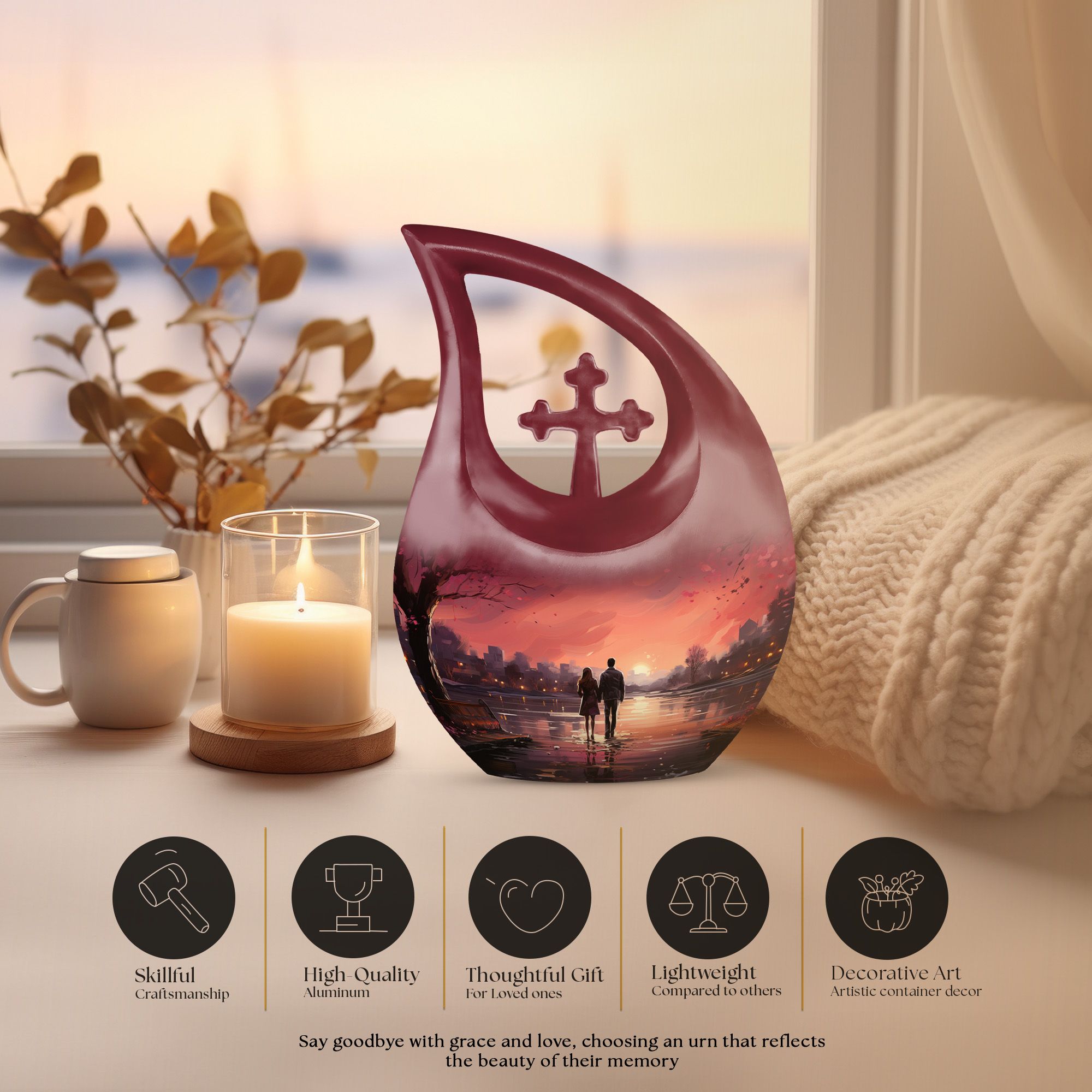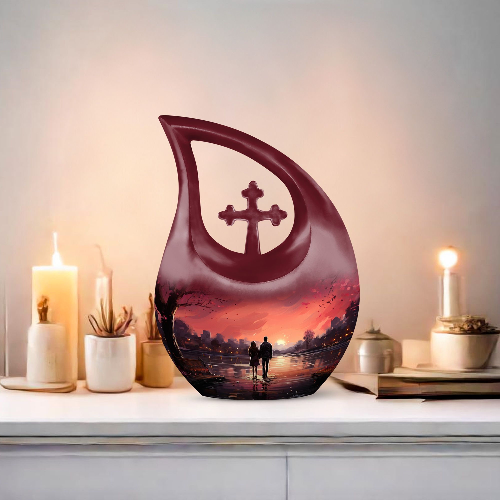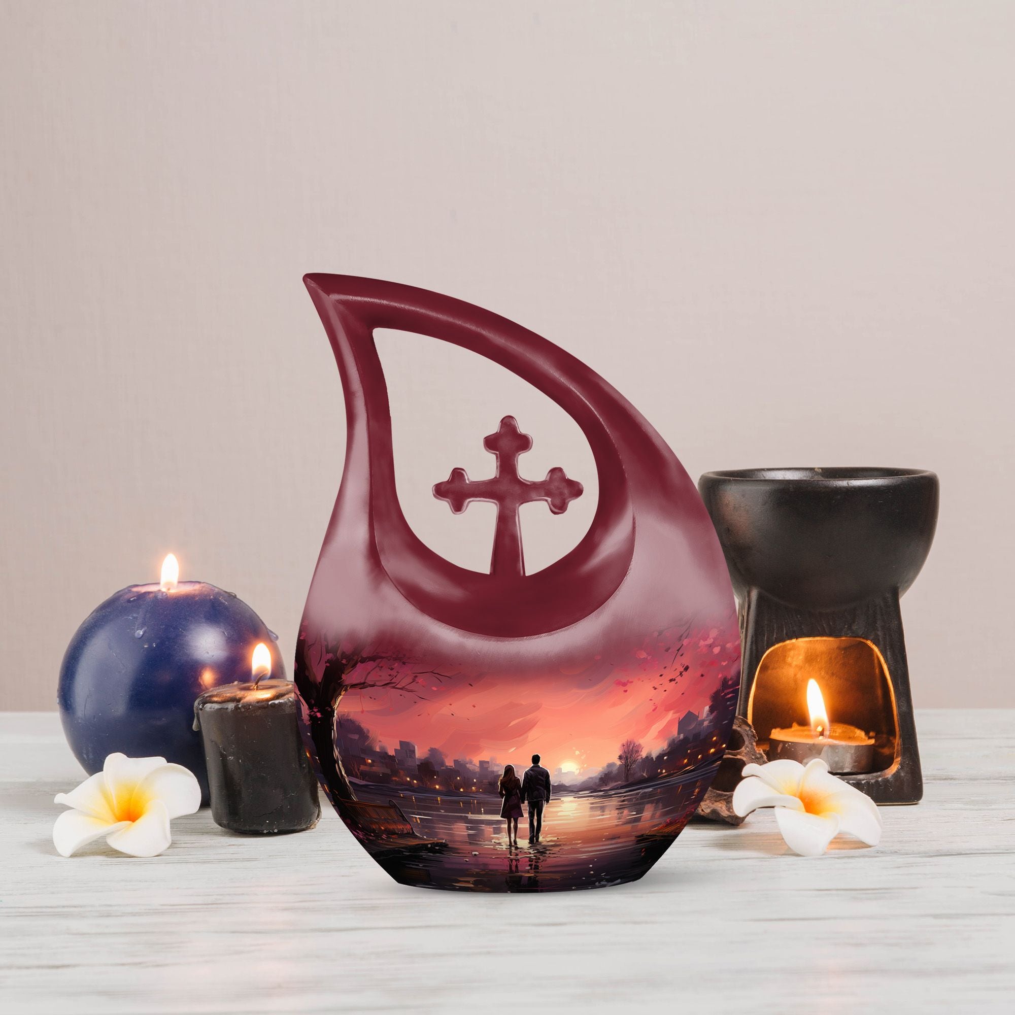 The Sunset Memorial Urn for Lovers serves as a symbol of eternal connection, preserving the memories of two hearts forever linked. Its gentle glow brings comfort, peace, and lasting remembrance.