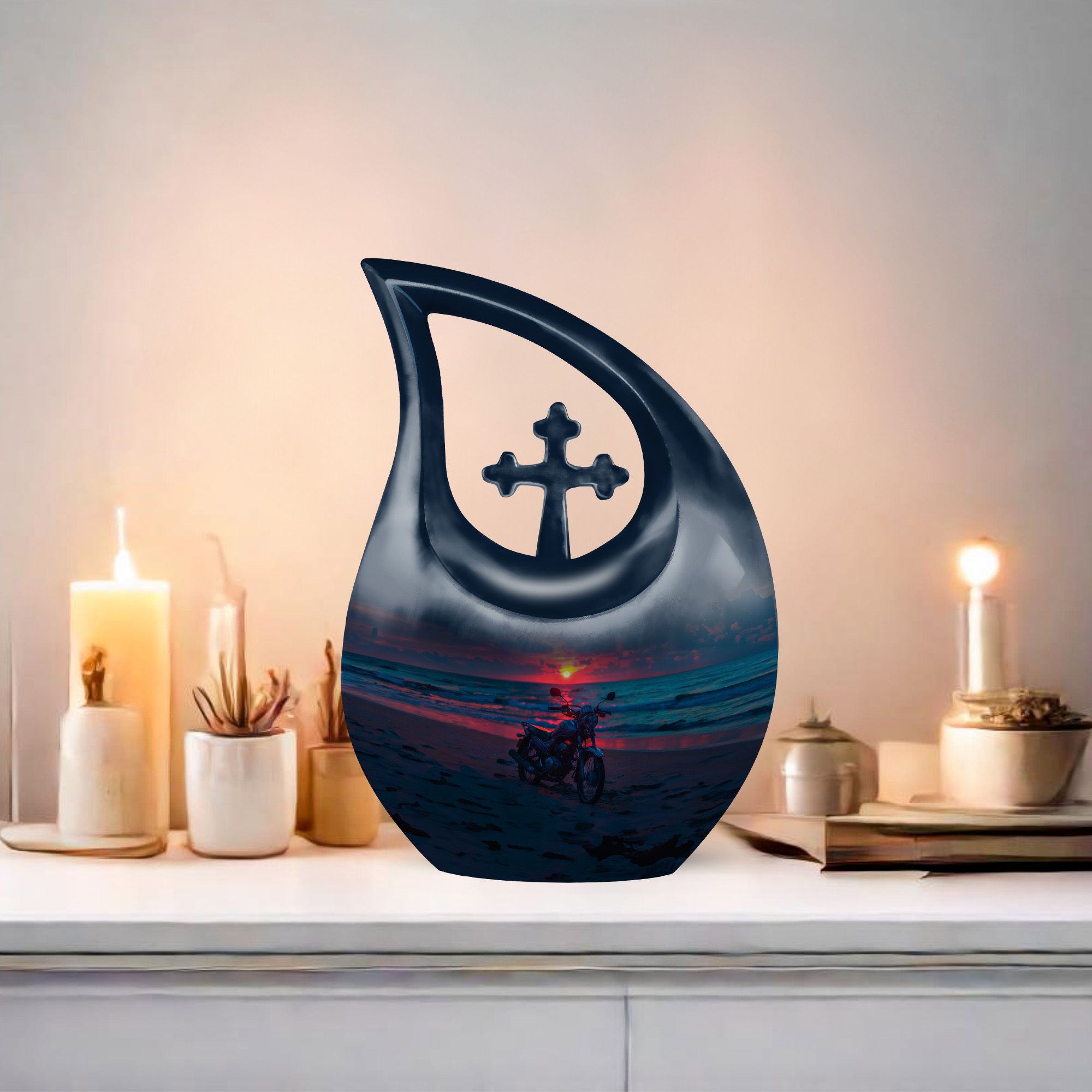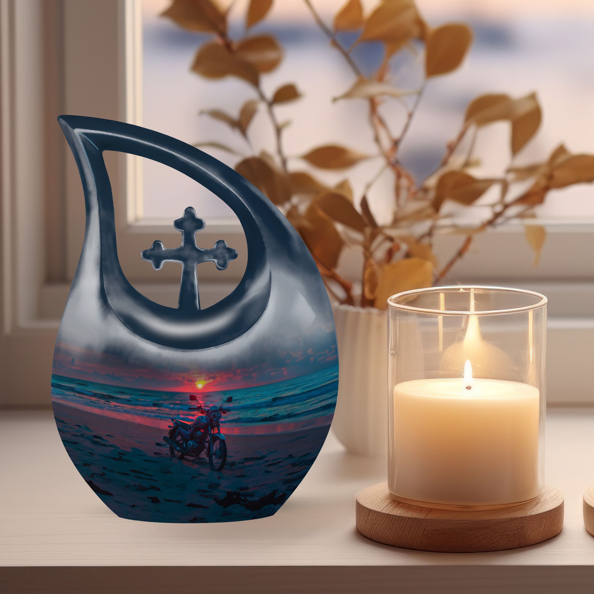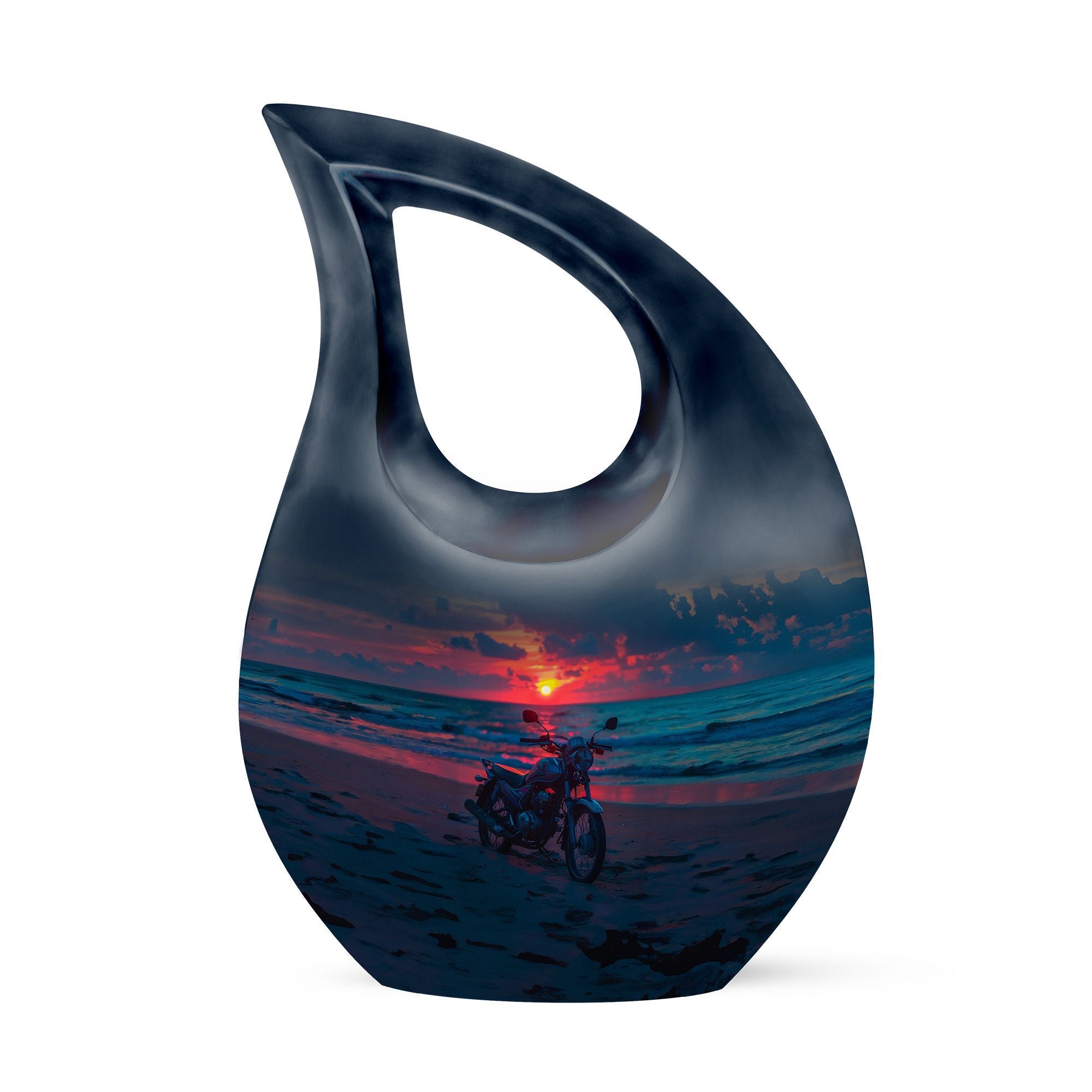 Choosing a final resting place is an emotional and loving act, and this Motorcycle Beach Sunset Cremation Urn offers a peaceful tribute to a spirit that rode freely and embraced life’s open horizons. Perfect for families seeking a cremation urn for adults, cremation urns adult, or cremation urns for adult ashes, it brings comfort through its serene coastal design.