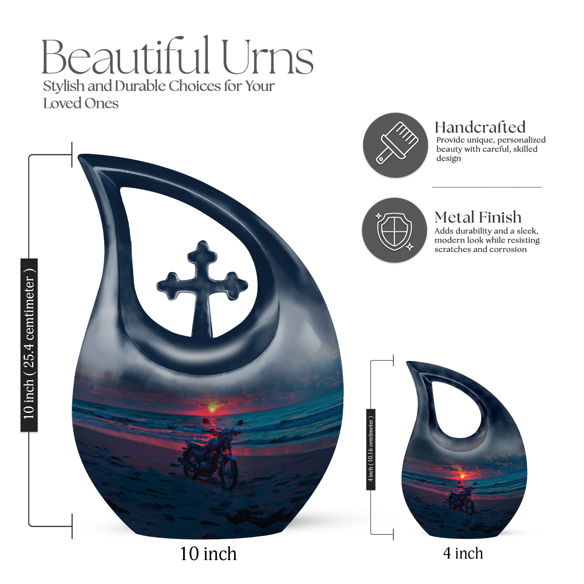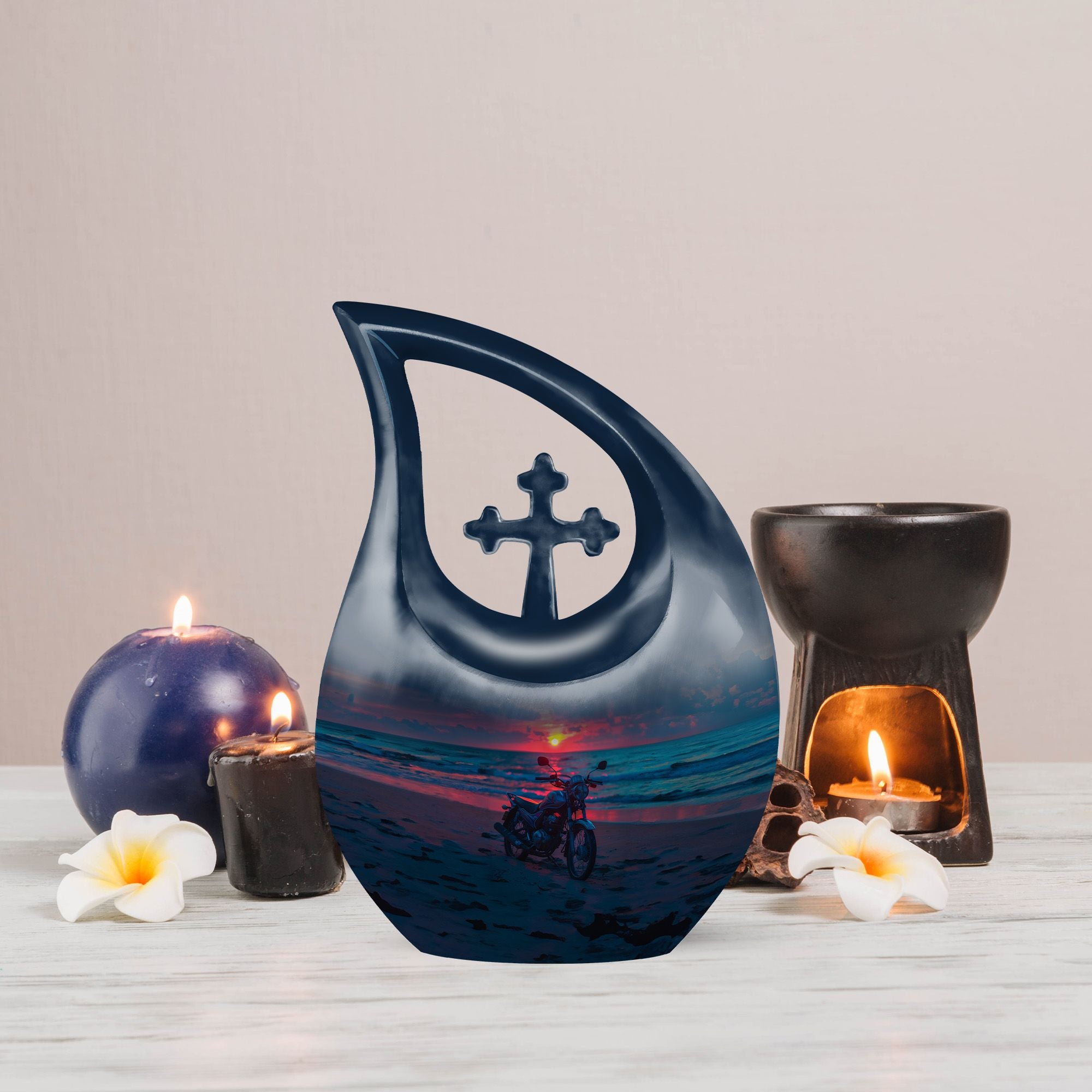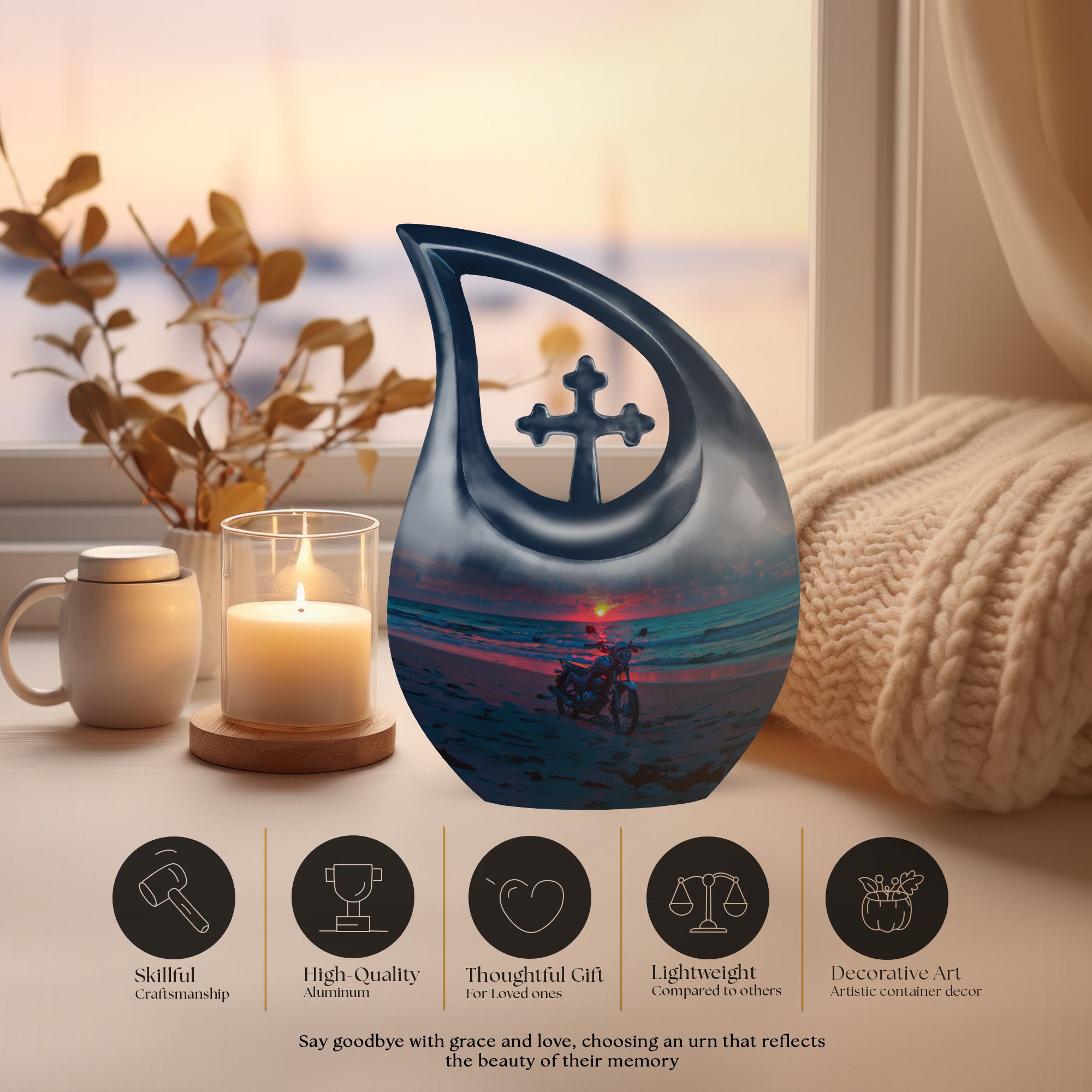 Choosing a final resting place is an emotional and loving act, and this Motorcycle Beach Sunset Cremation Urn offers a peaceful tribute to a spirit that rode freely and embraced life’s open horizons. Perfect for families seeking a cremation urn for adults, cremation urns adult, or cremation urns for adult ashes, it brings comfort through its serene coastal design.