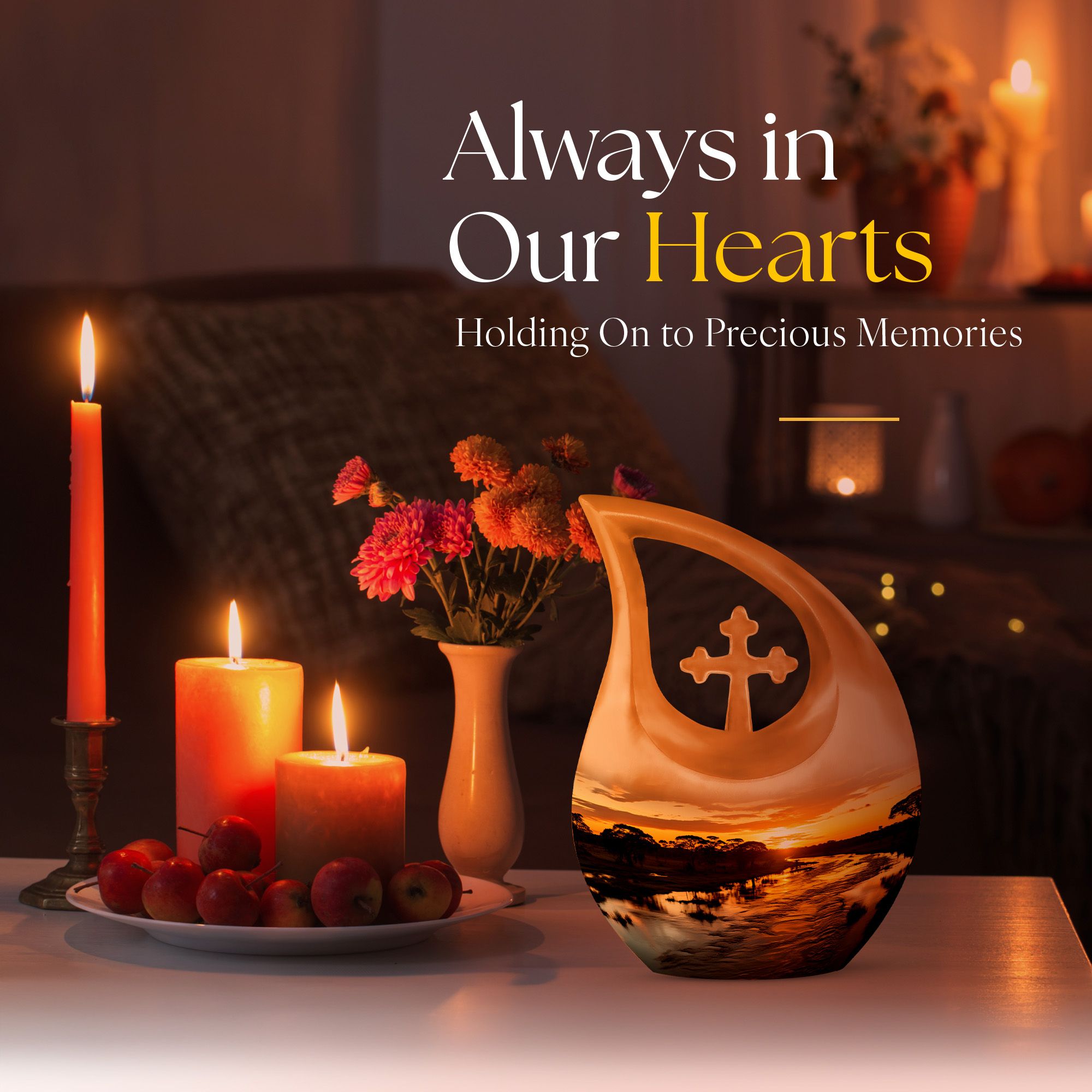 This memorial is an excellent choice for those seeking large urns human ashes or urn mom ashes large, offering both beauty and strength. Its sunset theme brings comfort, serenity, and a sense of lasting connection to the memories shared.