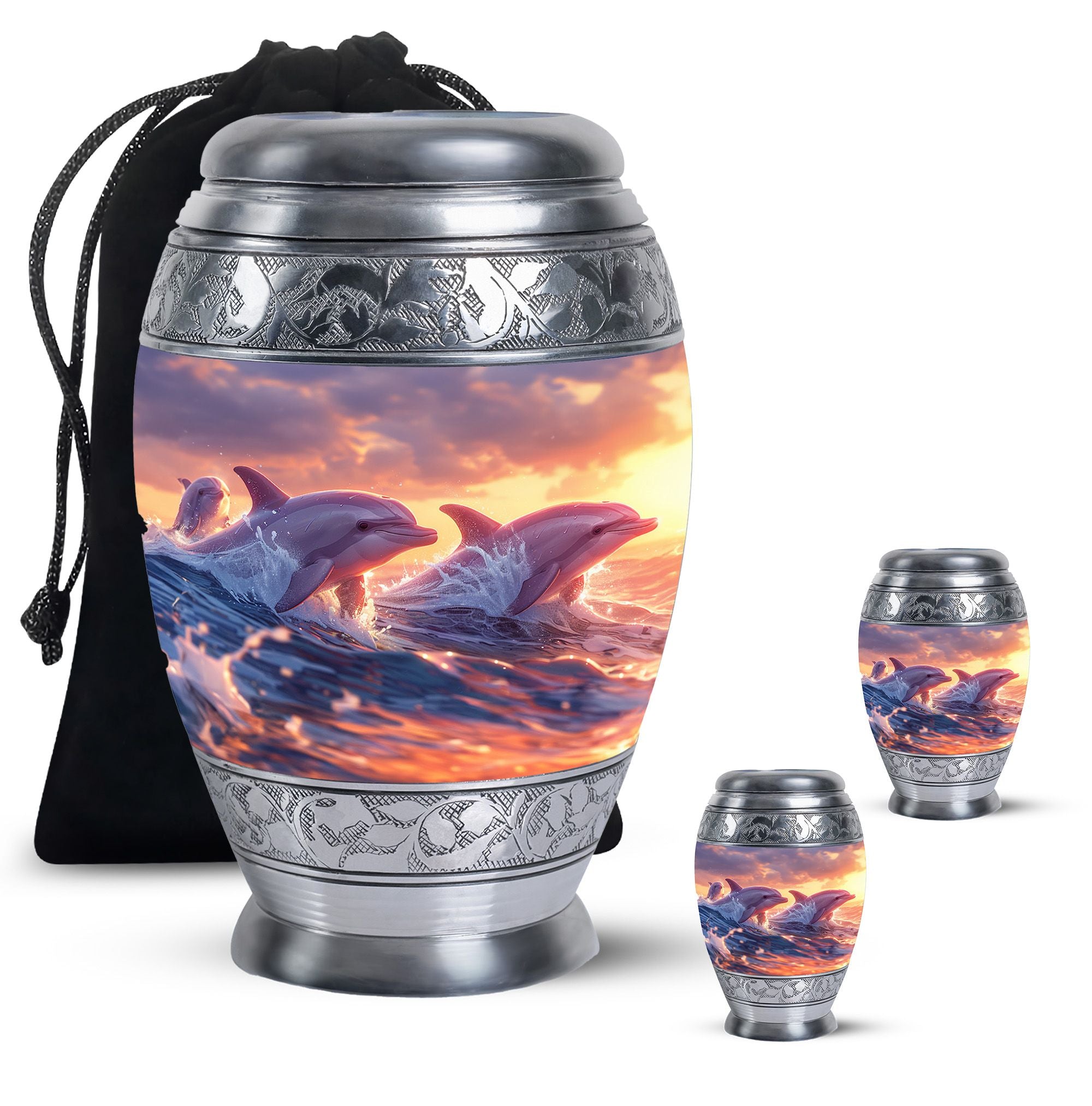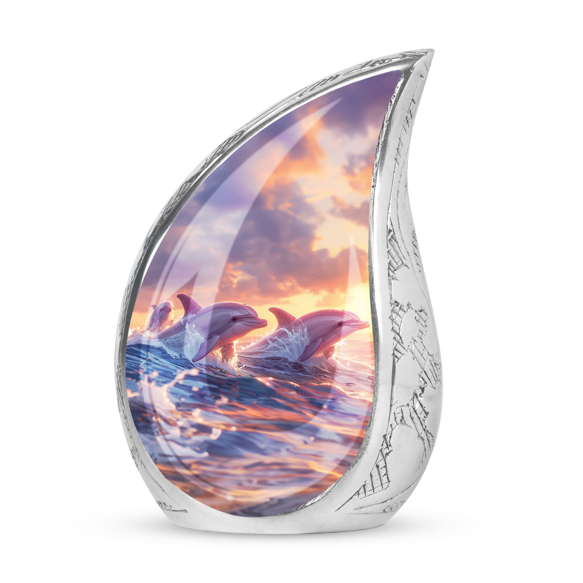The Sunset Dolphin Memorial Urn captures the serene beauty of the ocean and the graceful spirit of dolphins, symbolizing peace, strength, and everlasting love. Designed with compassion, it is a meaningful choice as an urn ashes for women, urn for adult male & female, or women adult urn, offering dignity and comfort to families during remembrance.