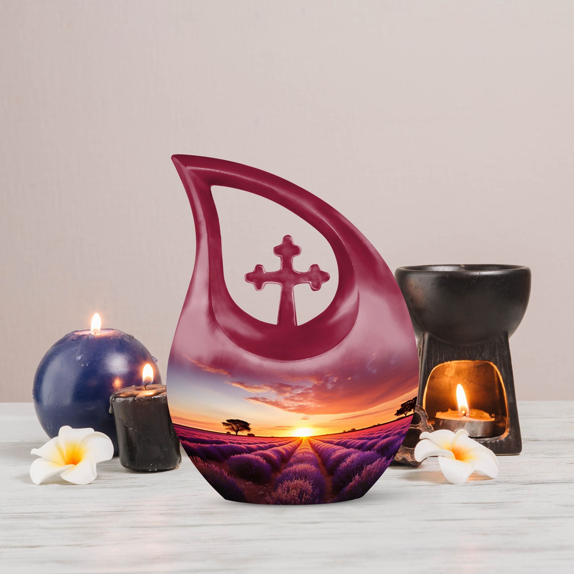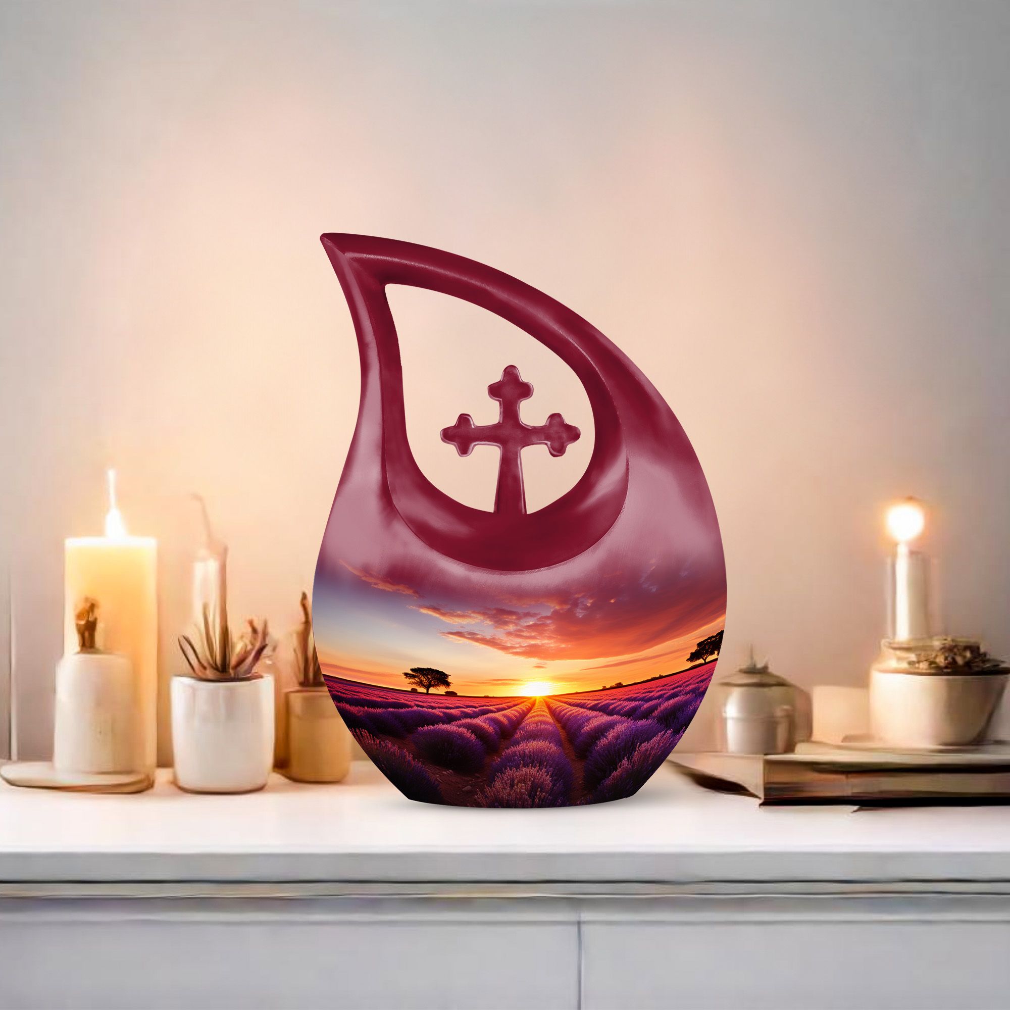 Crafted from durable aluminum, this full-size urn blends rustic artistry with dependable protection. The countryside sunset artwork brings comfort and tranquility, suitable for home display or memorial ceremonies. Designed as an urn combo set for men, it pairs beautifully with complementary small urns for women human ashes, or selections for families needing cremation urns for adult ashes women, urn for human ashes adult women, or coordinated sets for adult urns for men & women. The secure screw-top lid ensures ashes remain safe and protected for years to come.