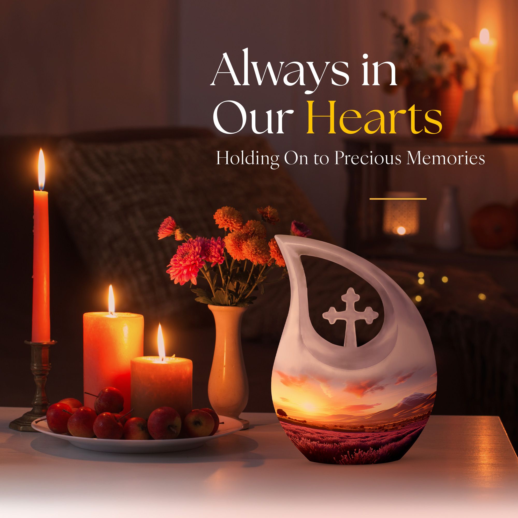 Suitable for both cremation urn men and cremation urns women, this memorial piece also complements selections for families needing a burial urn men option. Its calming sunset tones create a sense of peace, making it a comforting tribute for any loved one.