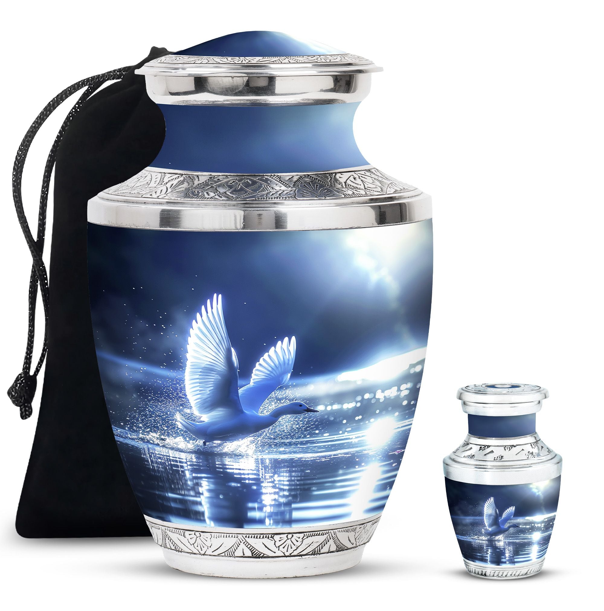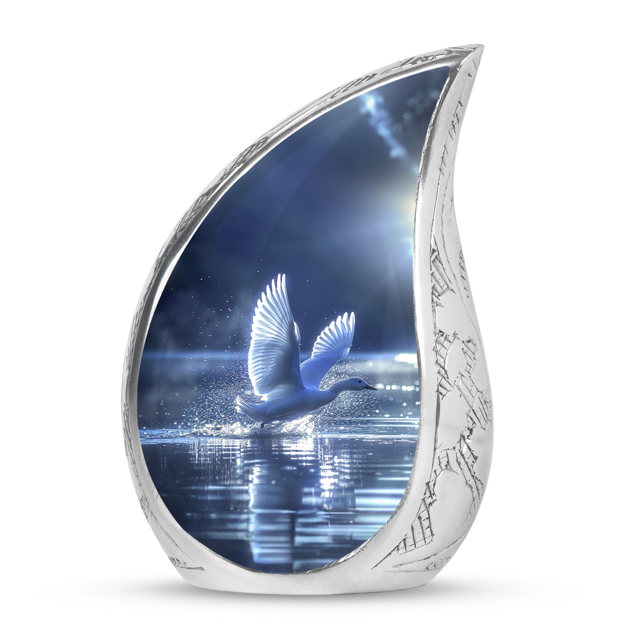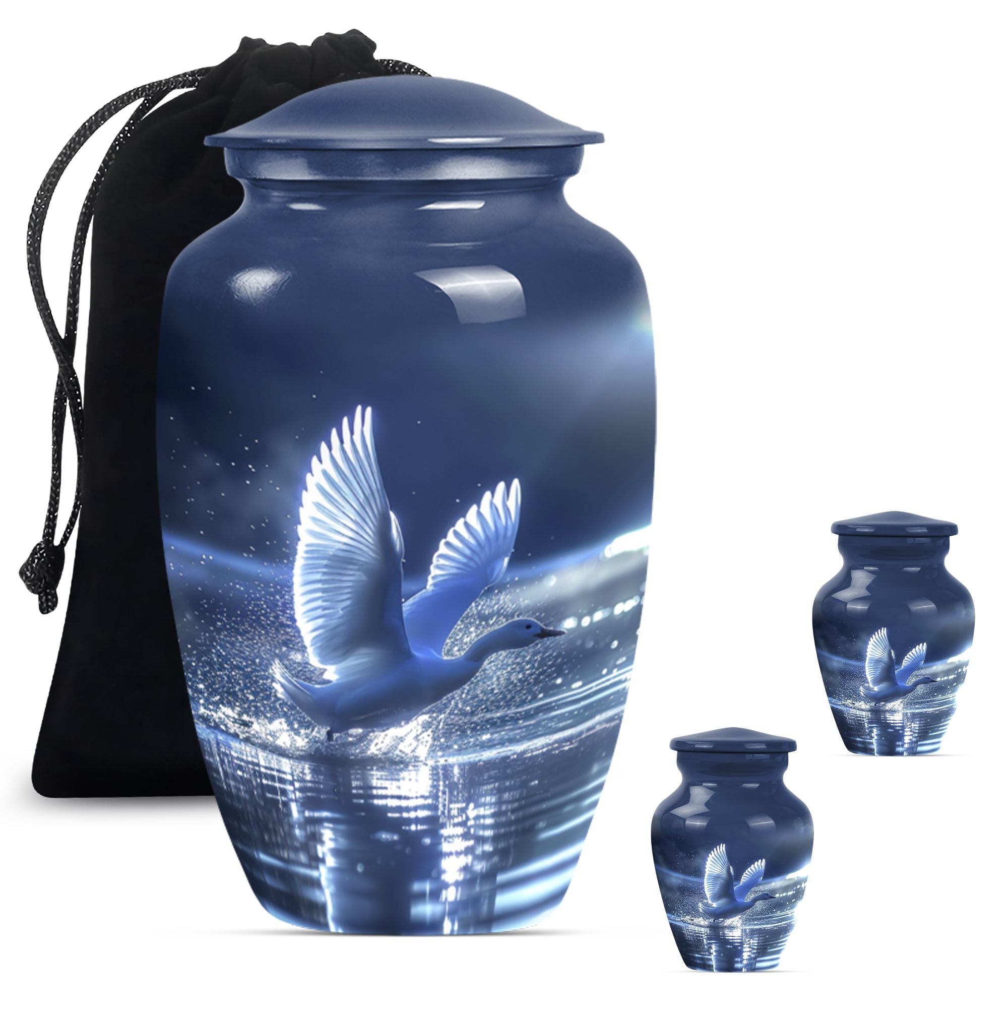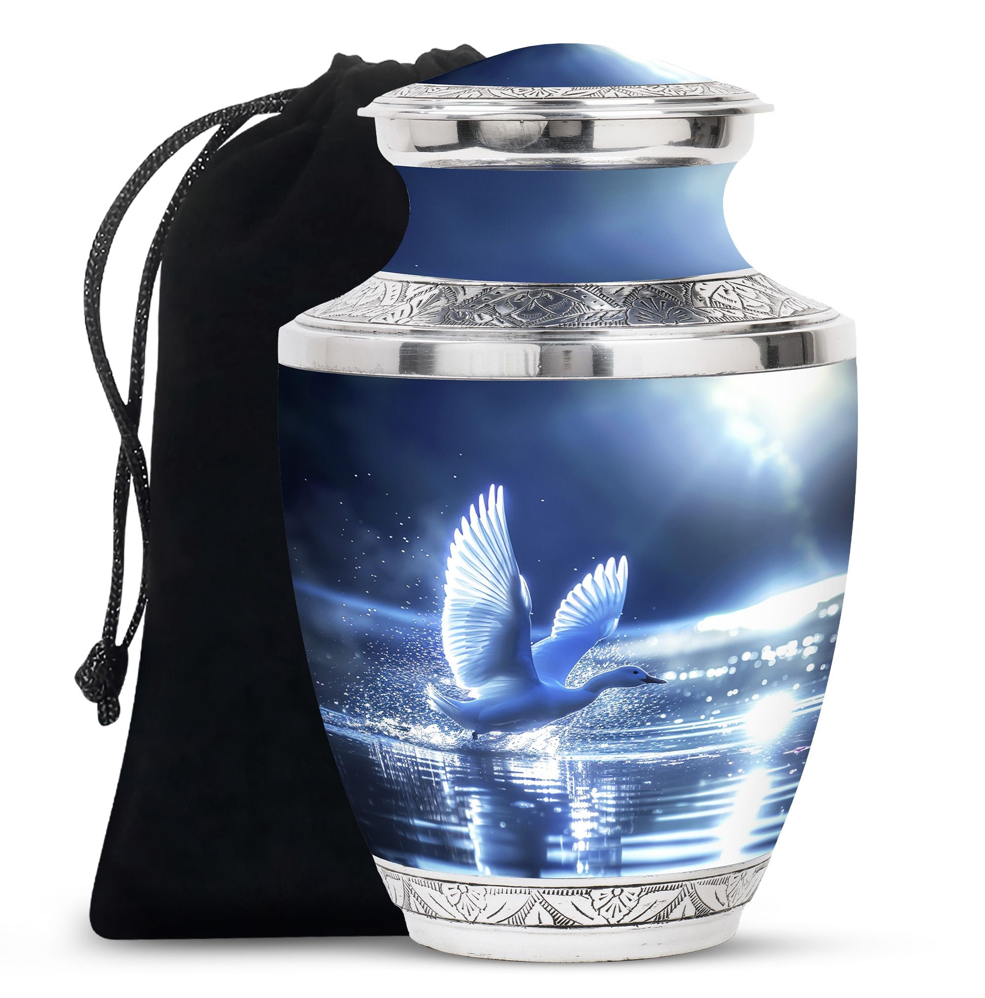 The Swan Cremation Urn for Ashes Adult is a graceful and meaningful tribute to honor your loved one. Designed in a soothing blue finish, this cremation urn for adult reflects peace, strength, and eternal love.