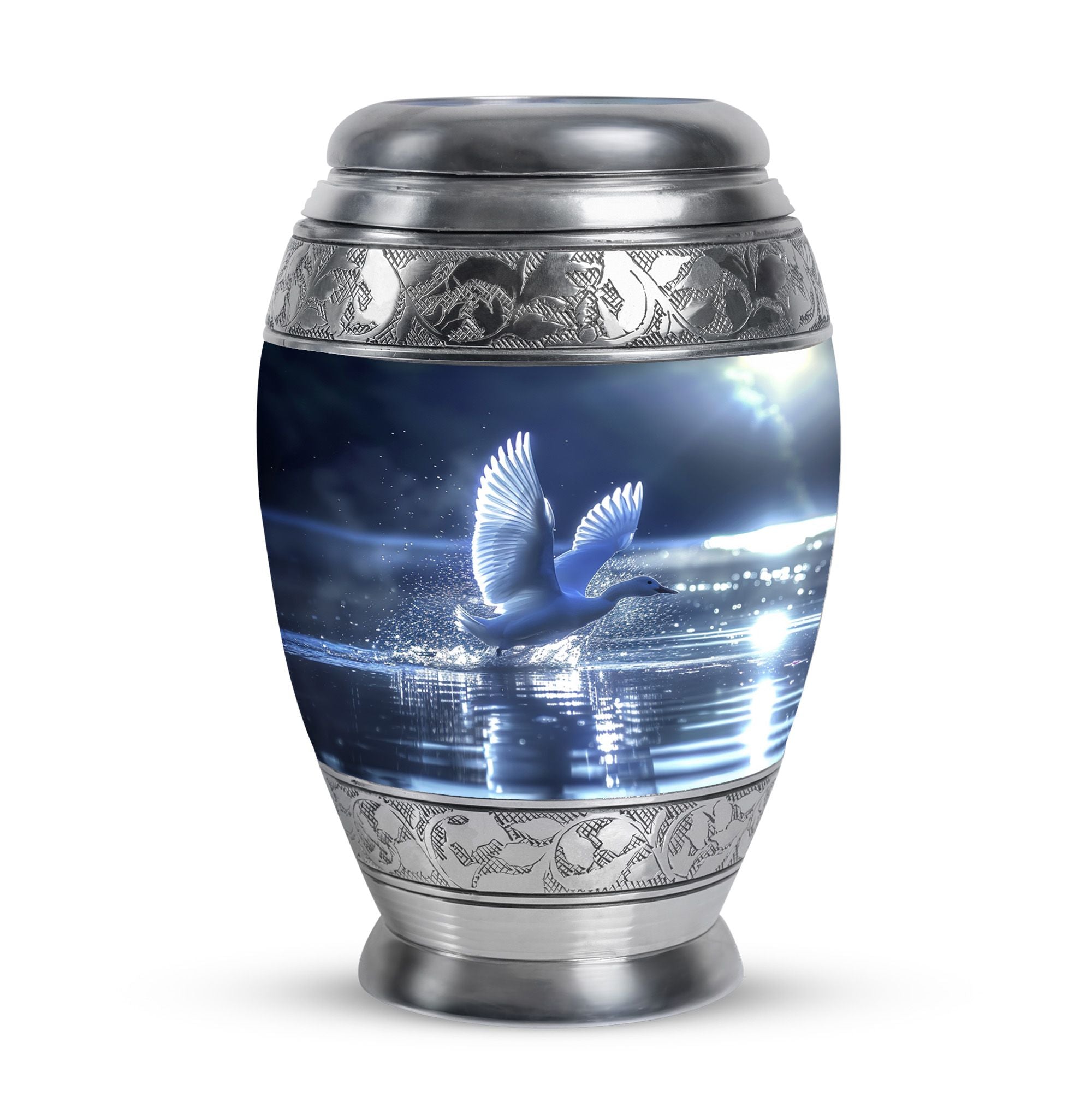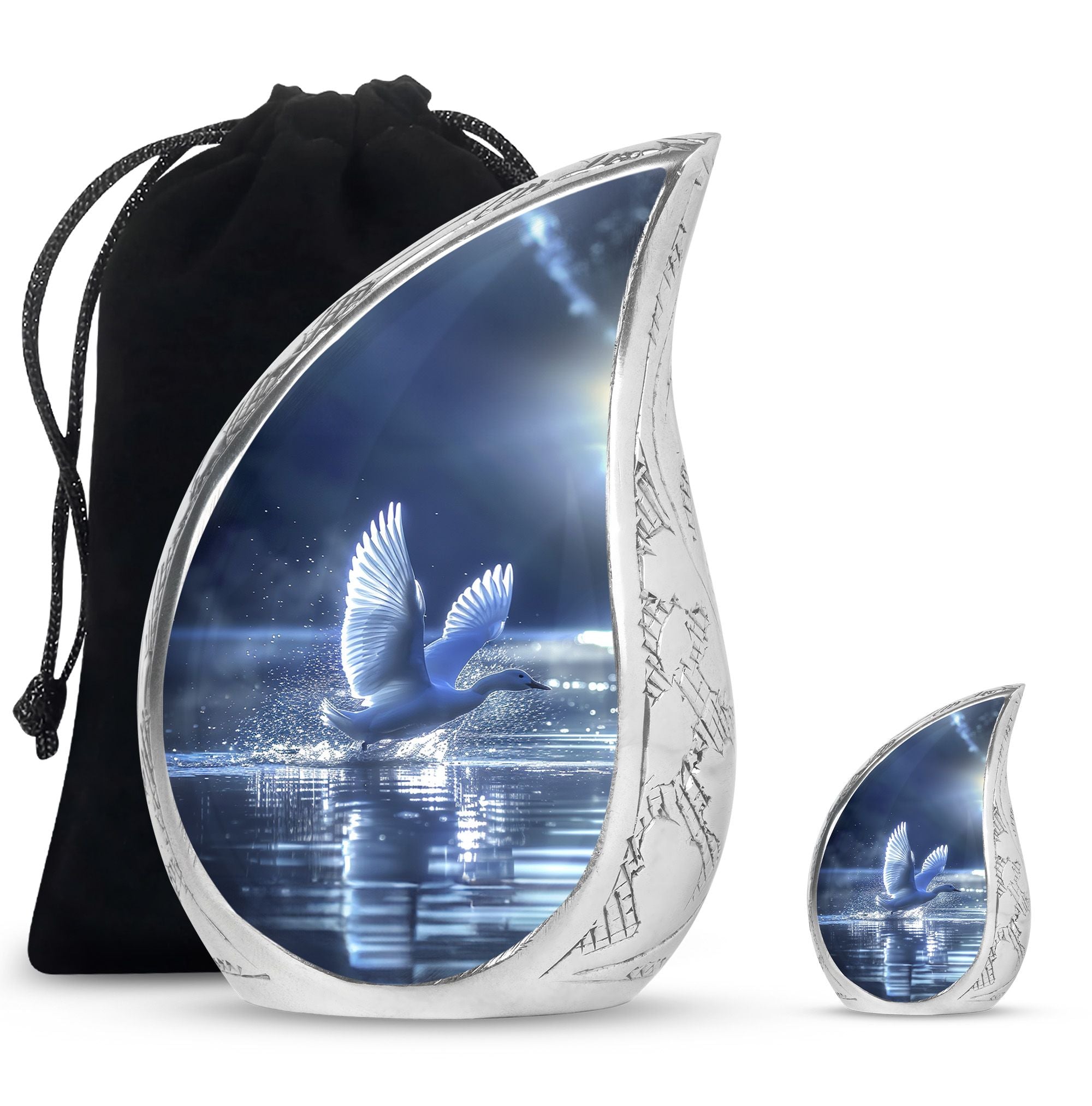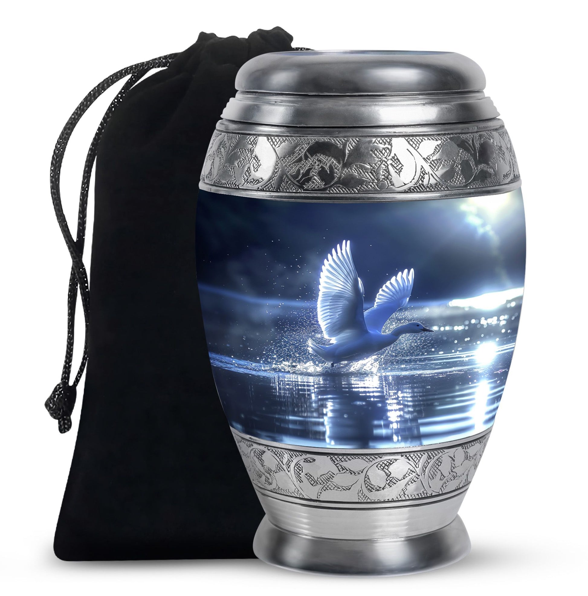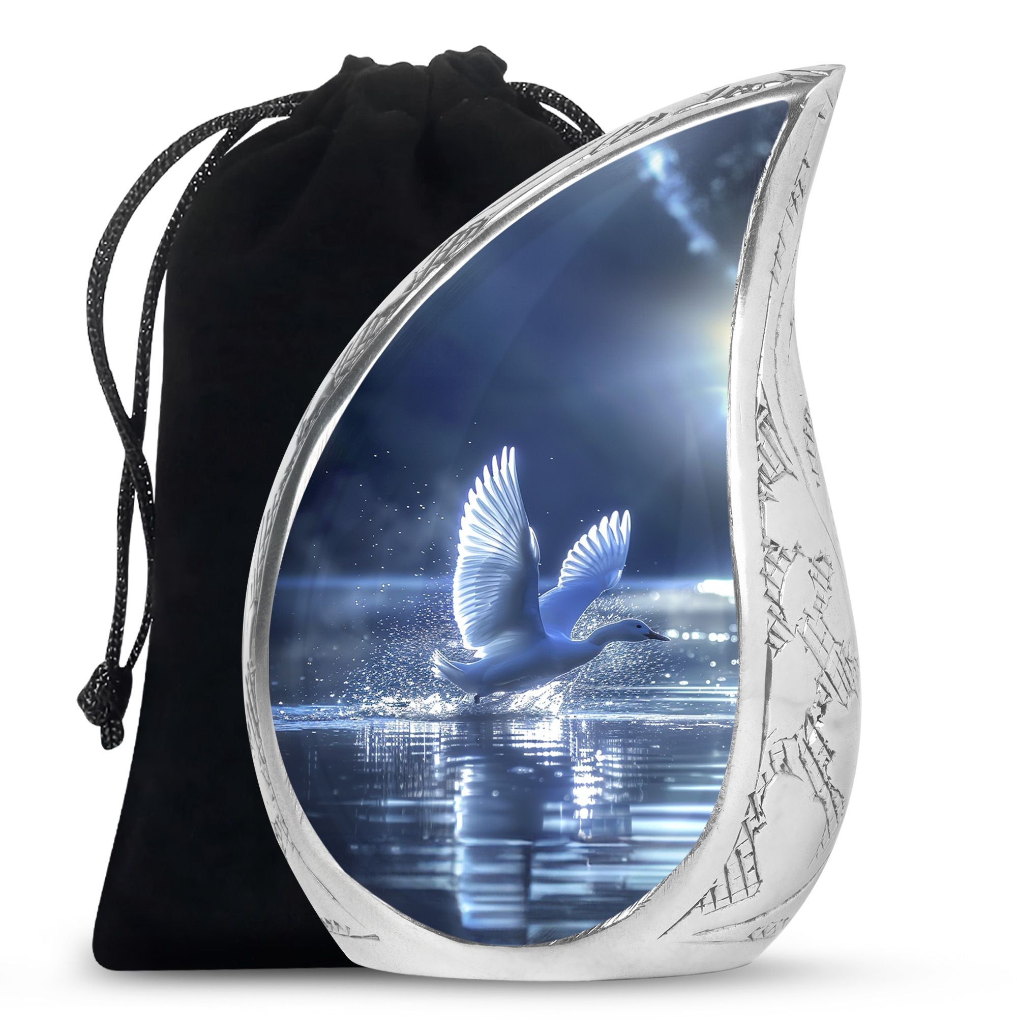 The Swan Cremation Urn for Ashes Adult is a graceful and meaningful tribute to honor your loved one. Designed in a soothing blue finish, this cremation urn for adult reflects peace, strength, and eternal love.