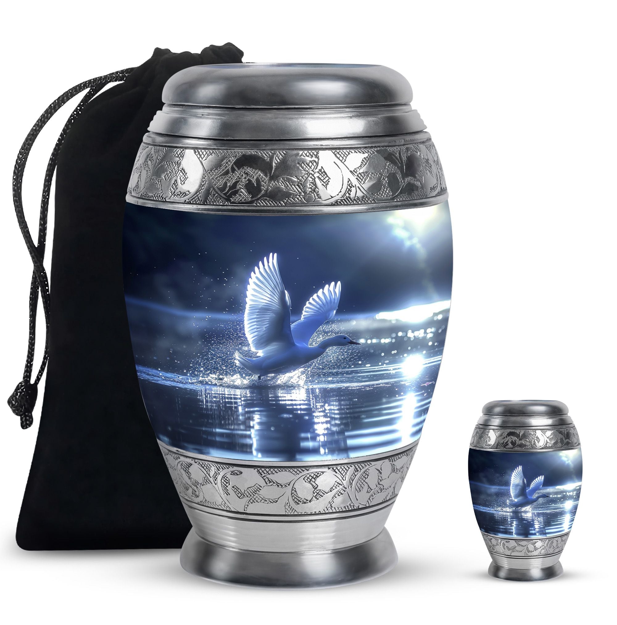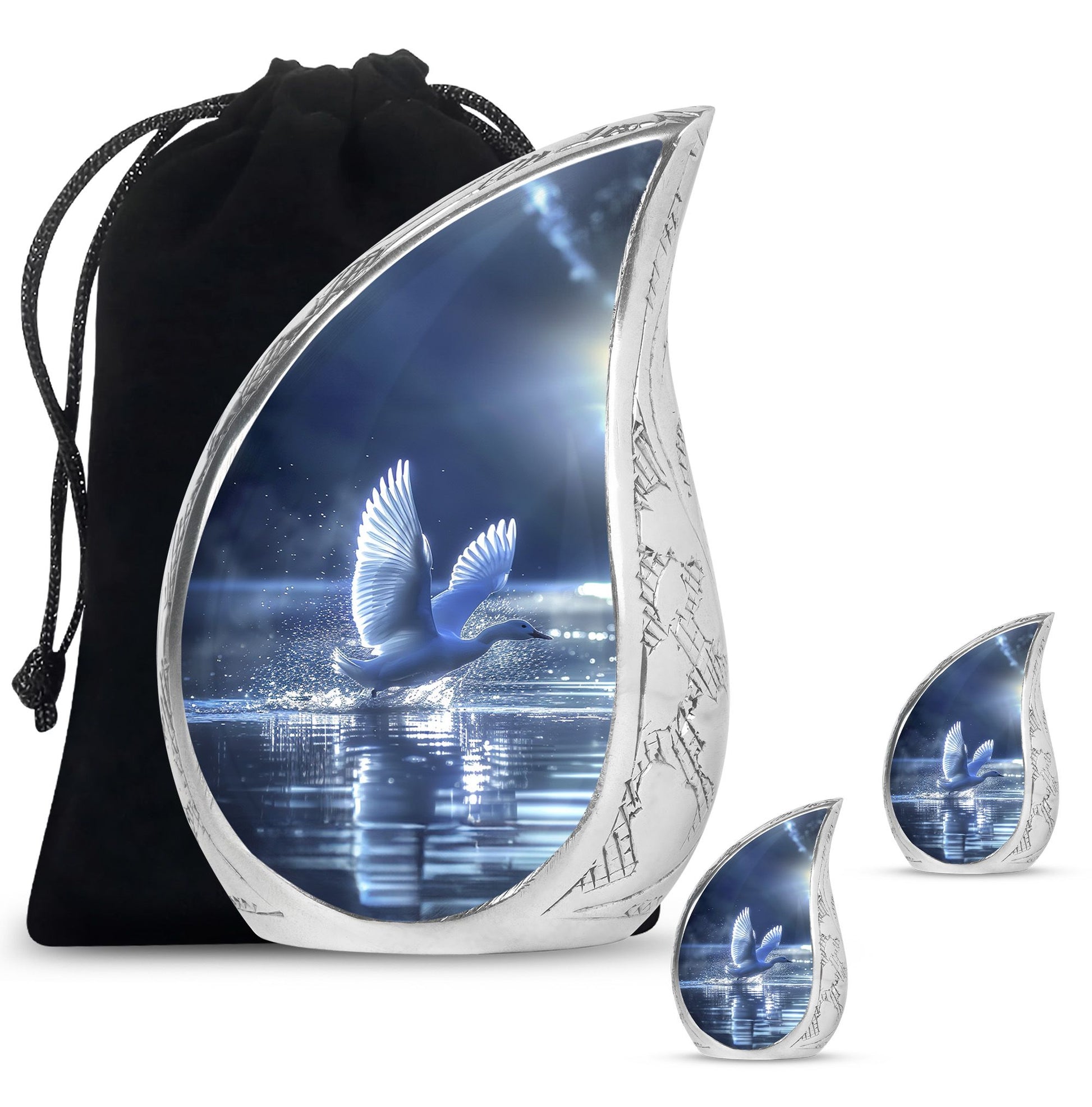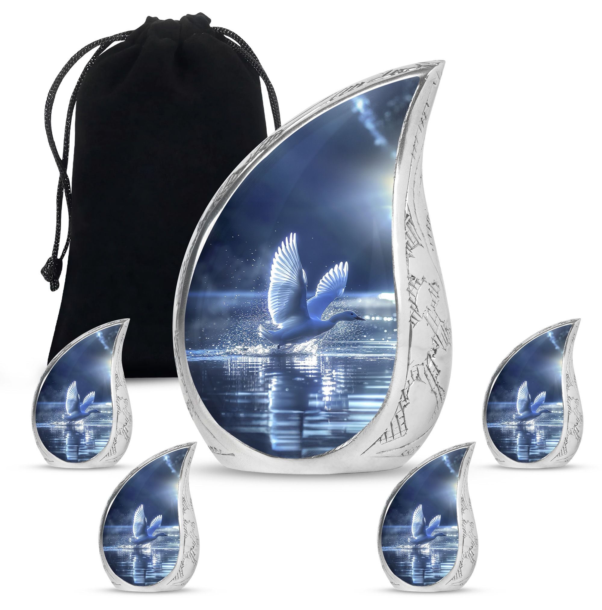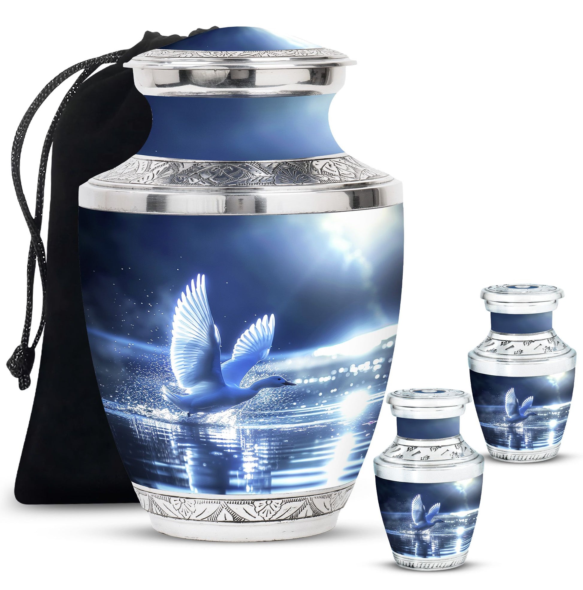 The Swan Cremation Urn for Ashes Adult is a graceful and meaningful tribute to honor your loved one. Designed in a soothing blue finish, this cremation urn for adult reflects peace, strength, and eternal love.