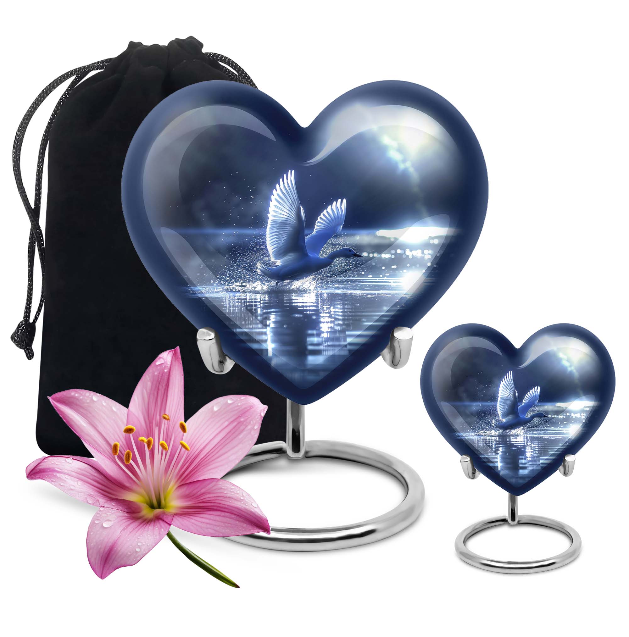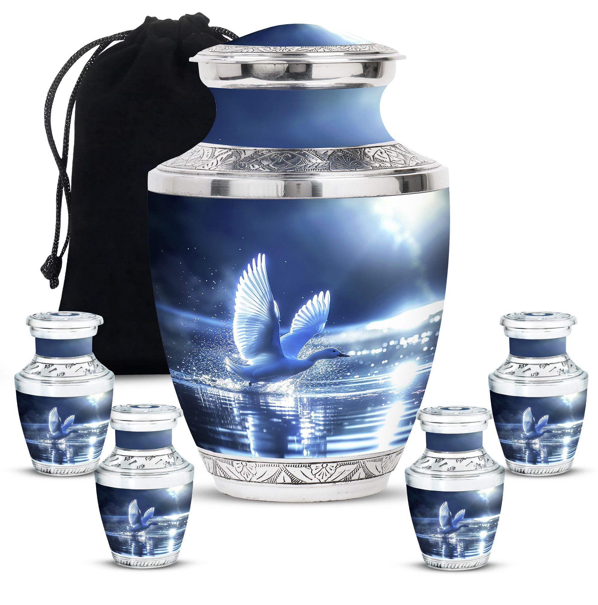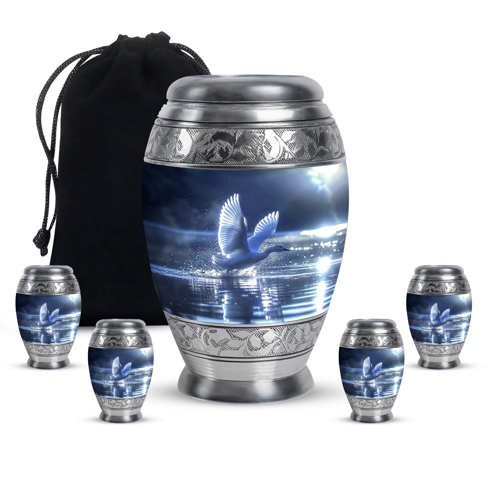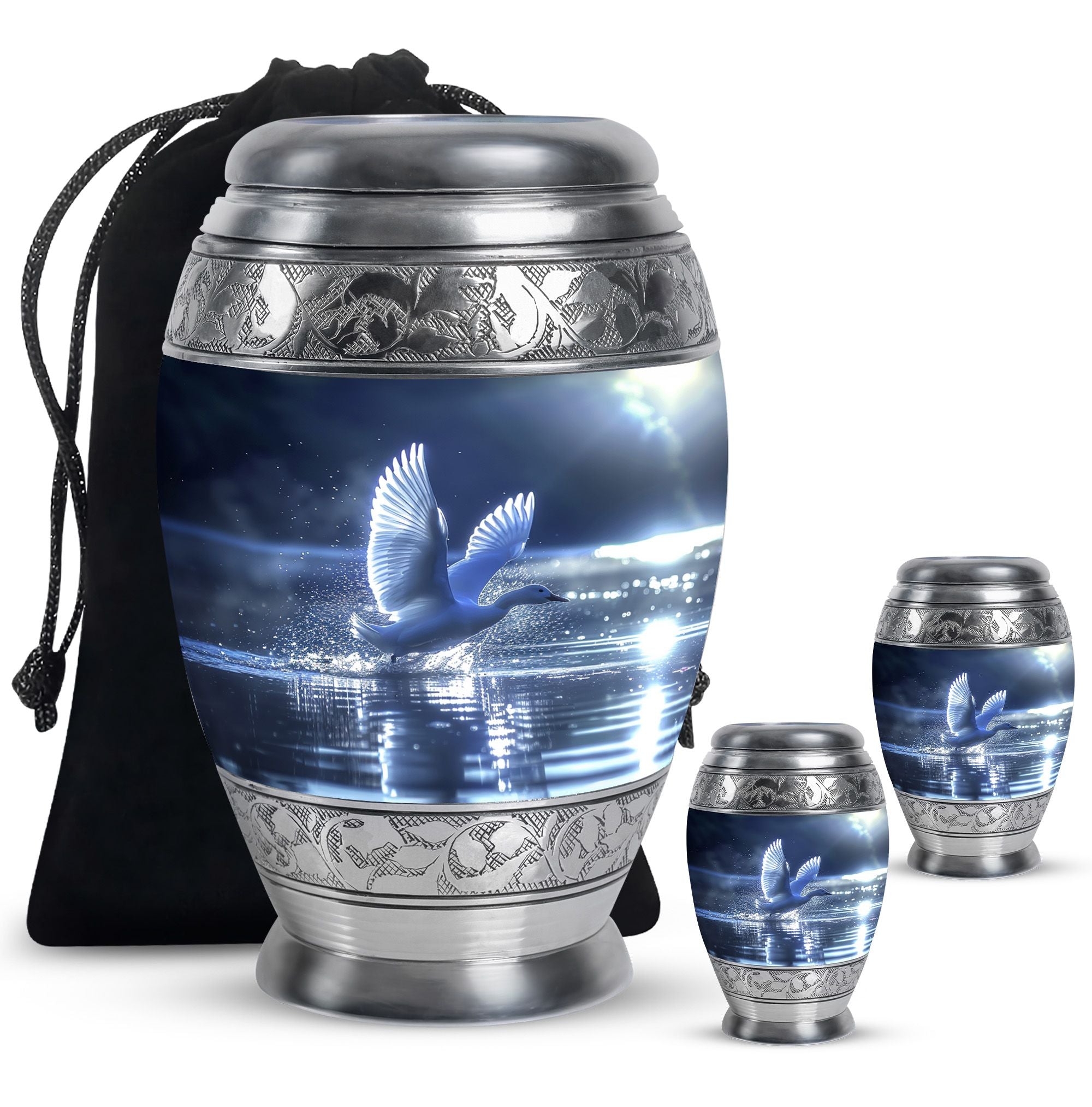 The Swan Cremation Urn for Ashes Adult is a graceful and meaningful tribute to honor your loved one. Designed in a soothing blue finish, this cremation urn for adult reflects peace, strength, and eternal love.
