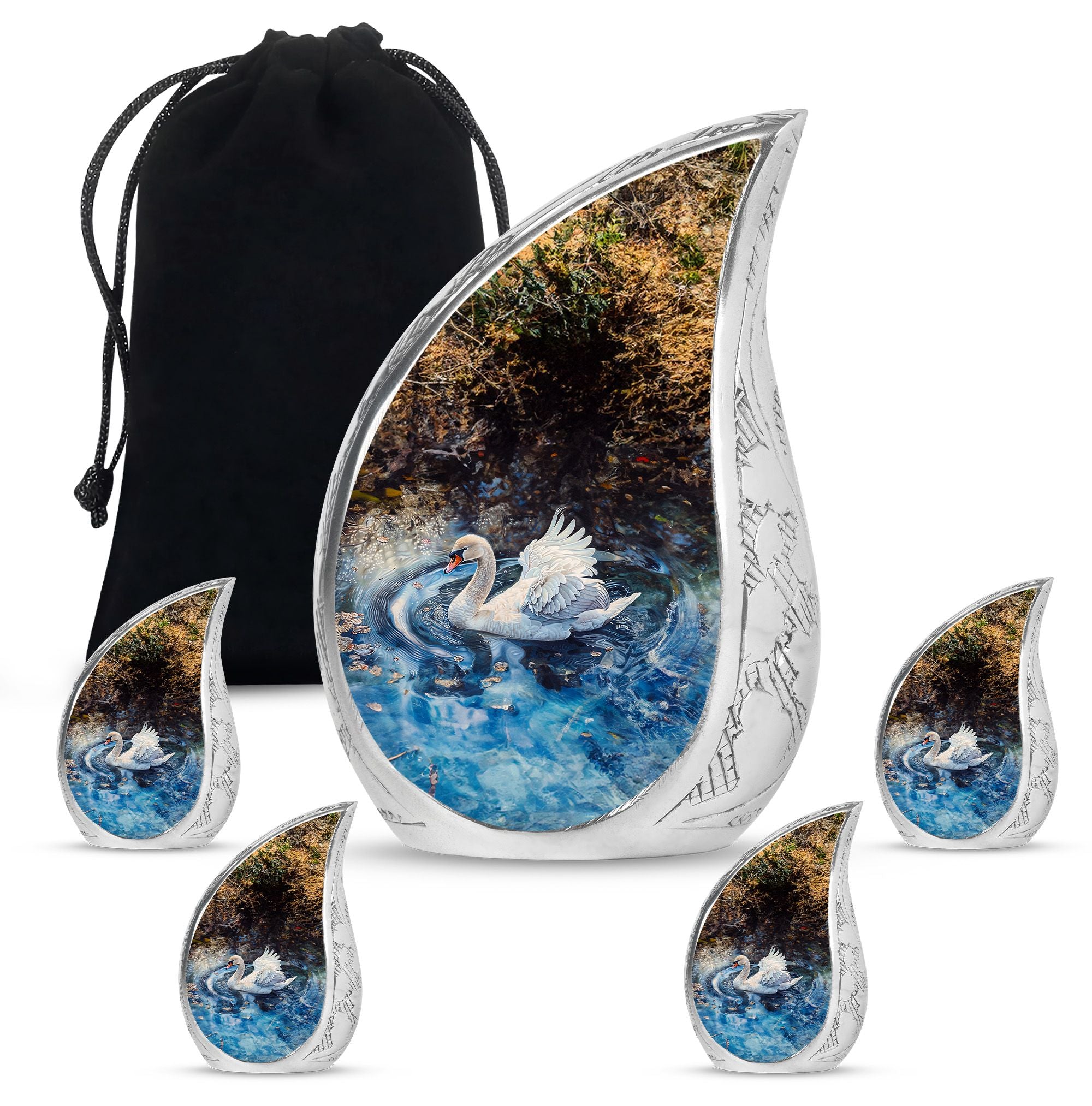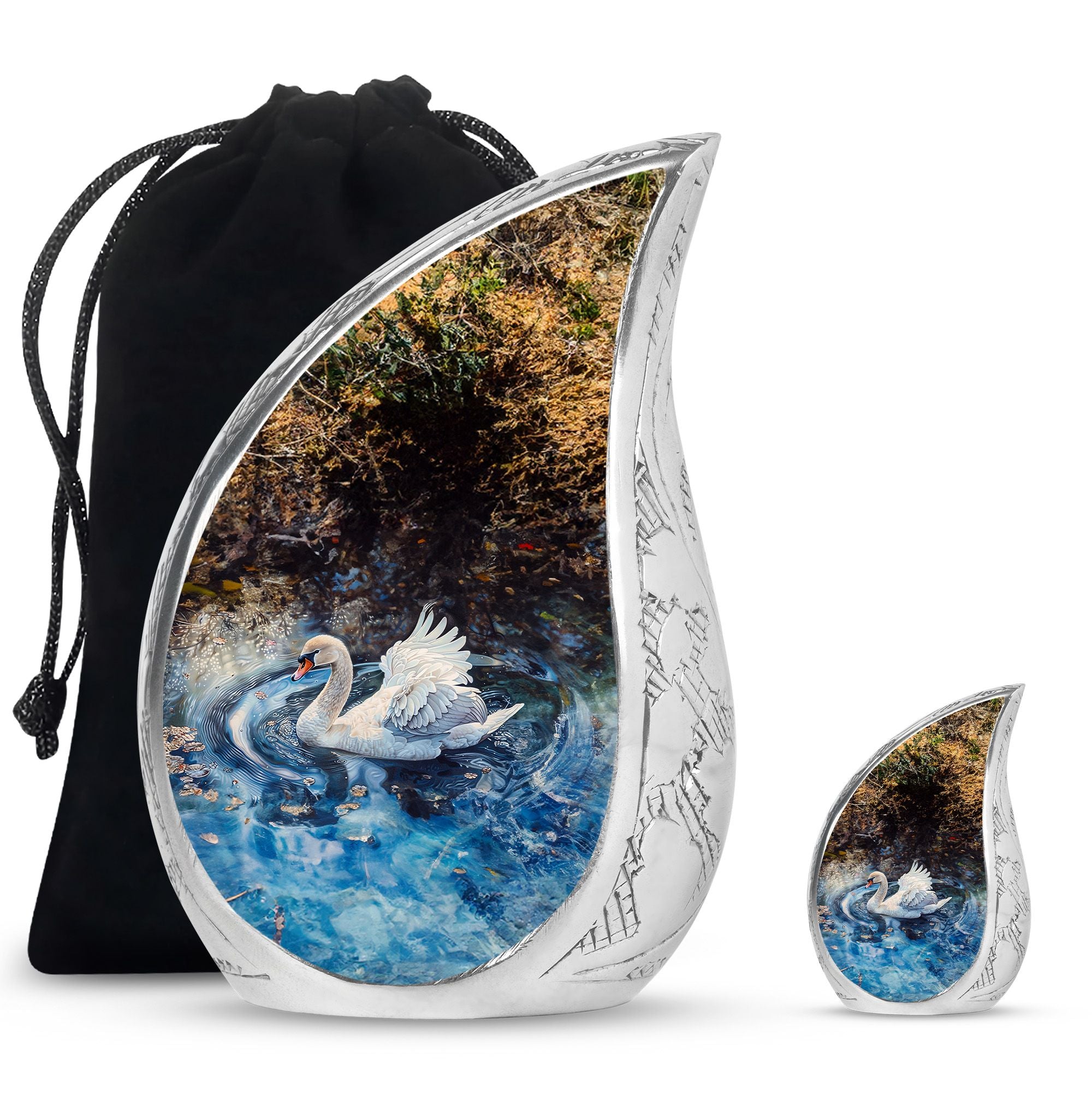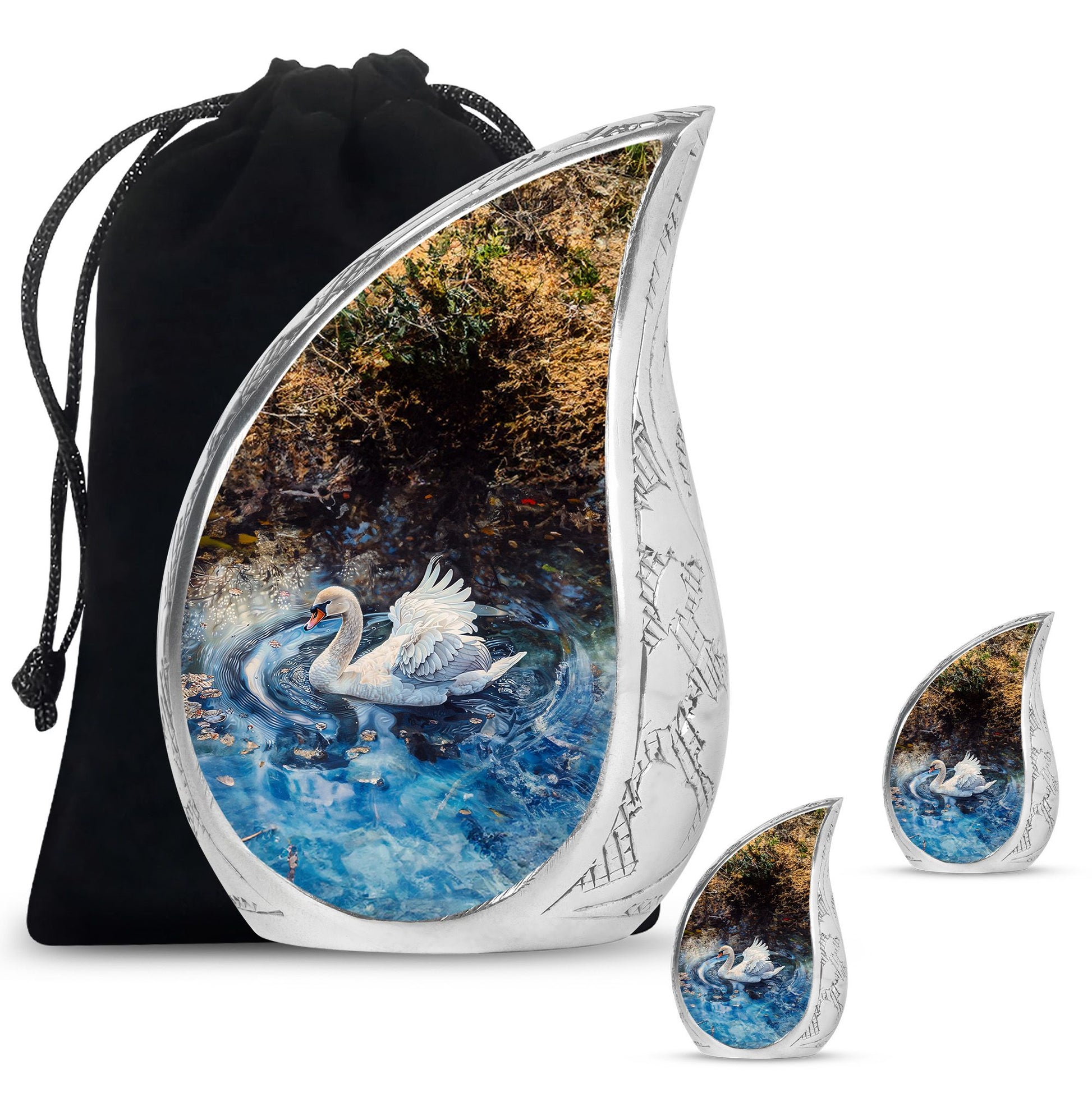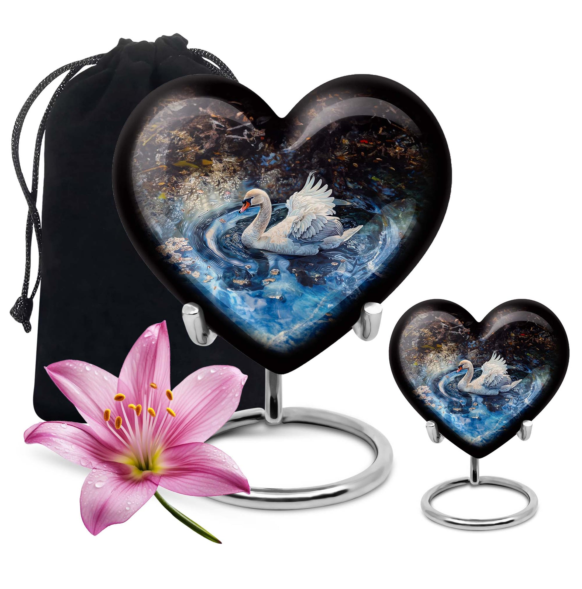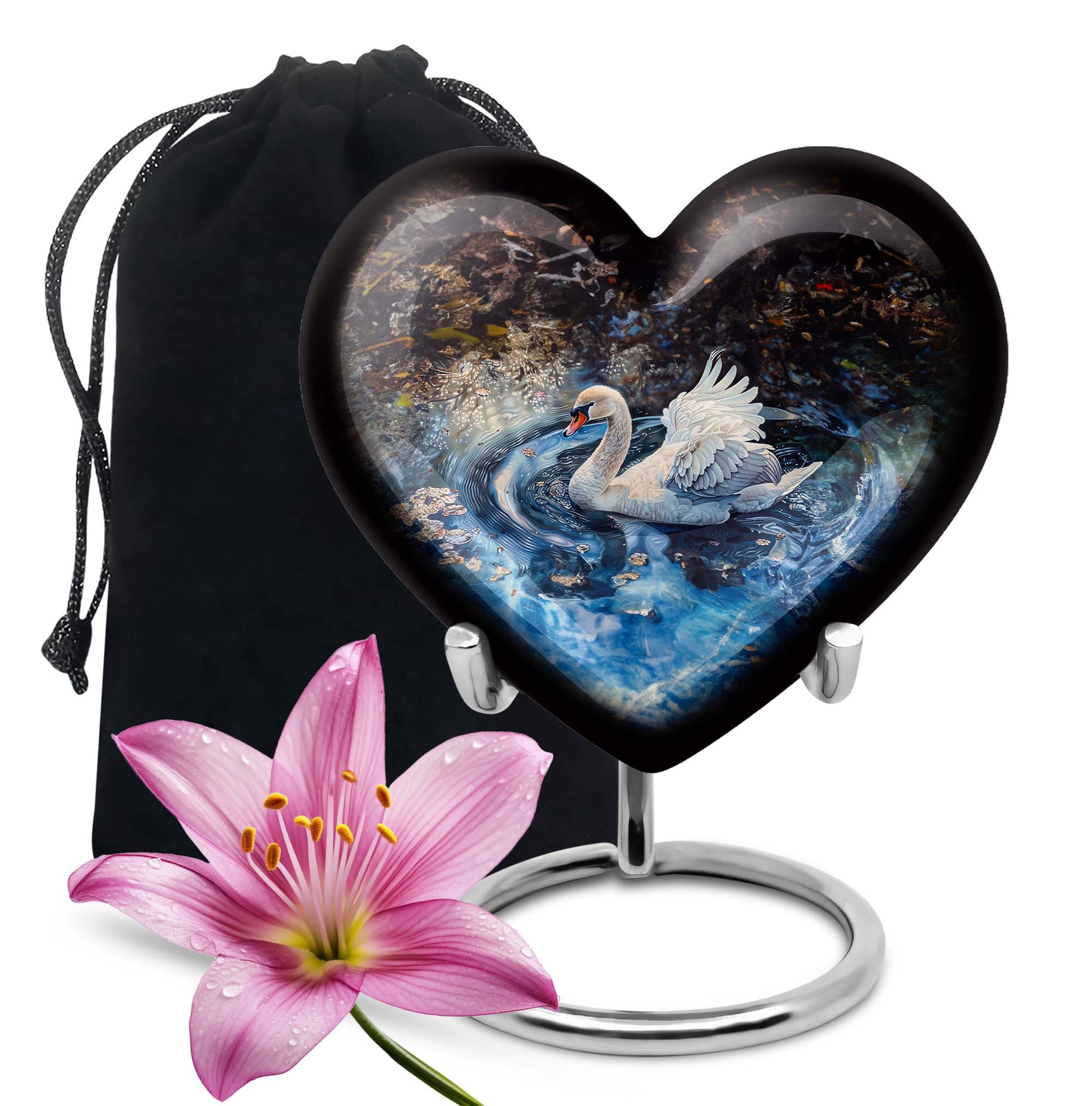 Whether chosen as a centerpiece urn for cremations, a small keepsake urn for human ashes, or part of a keepsake urns for human ashes collection, this swan urn brings dignity and beauty to your memorial tribute.