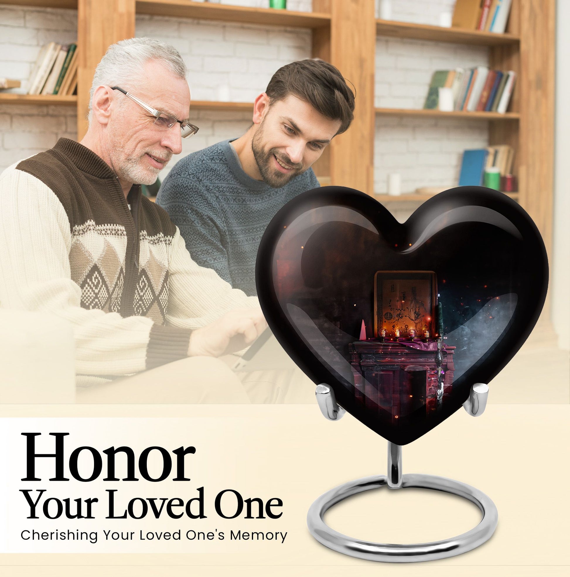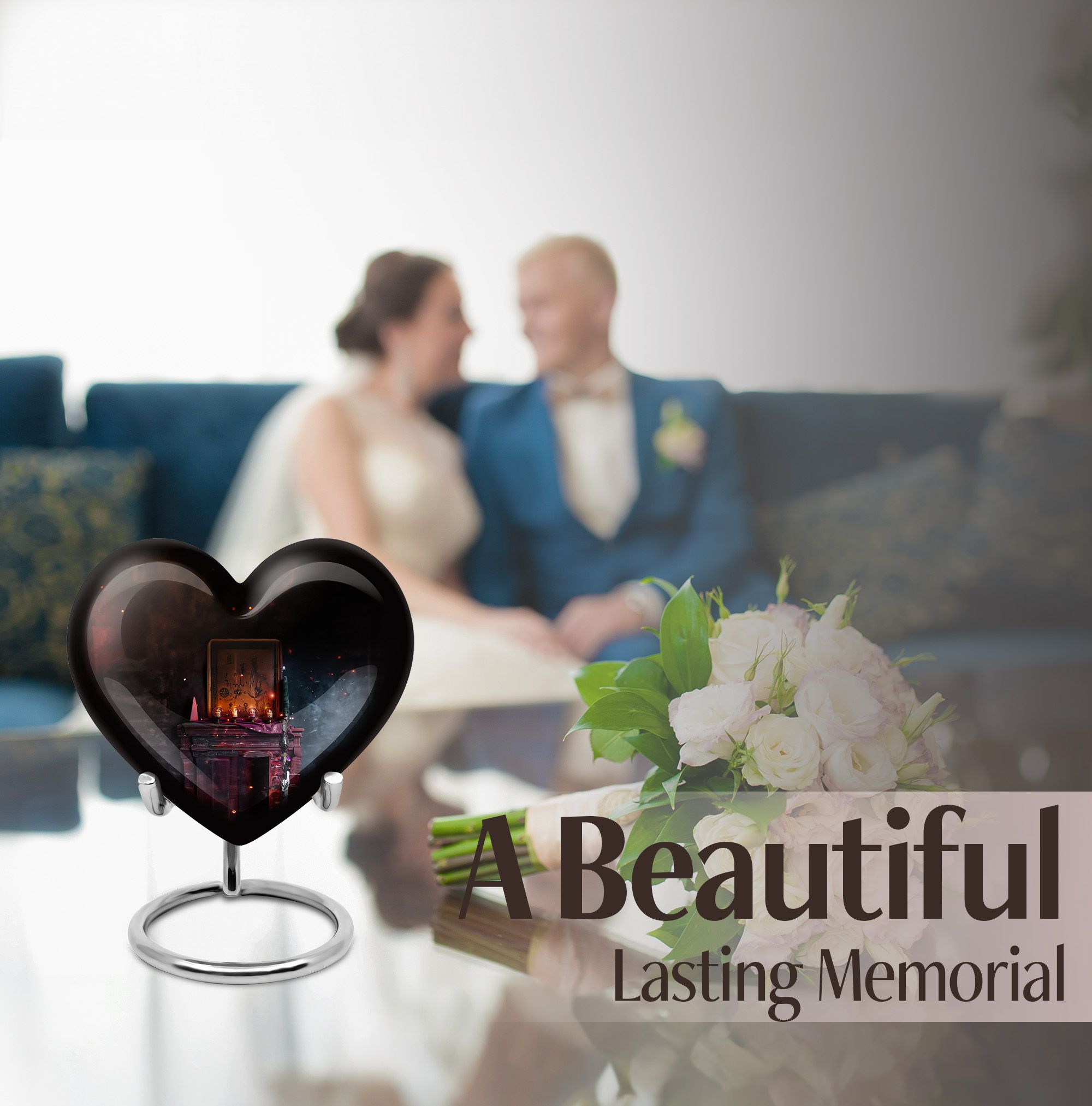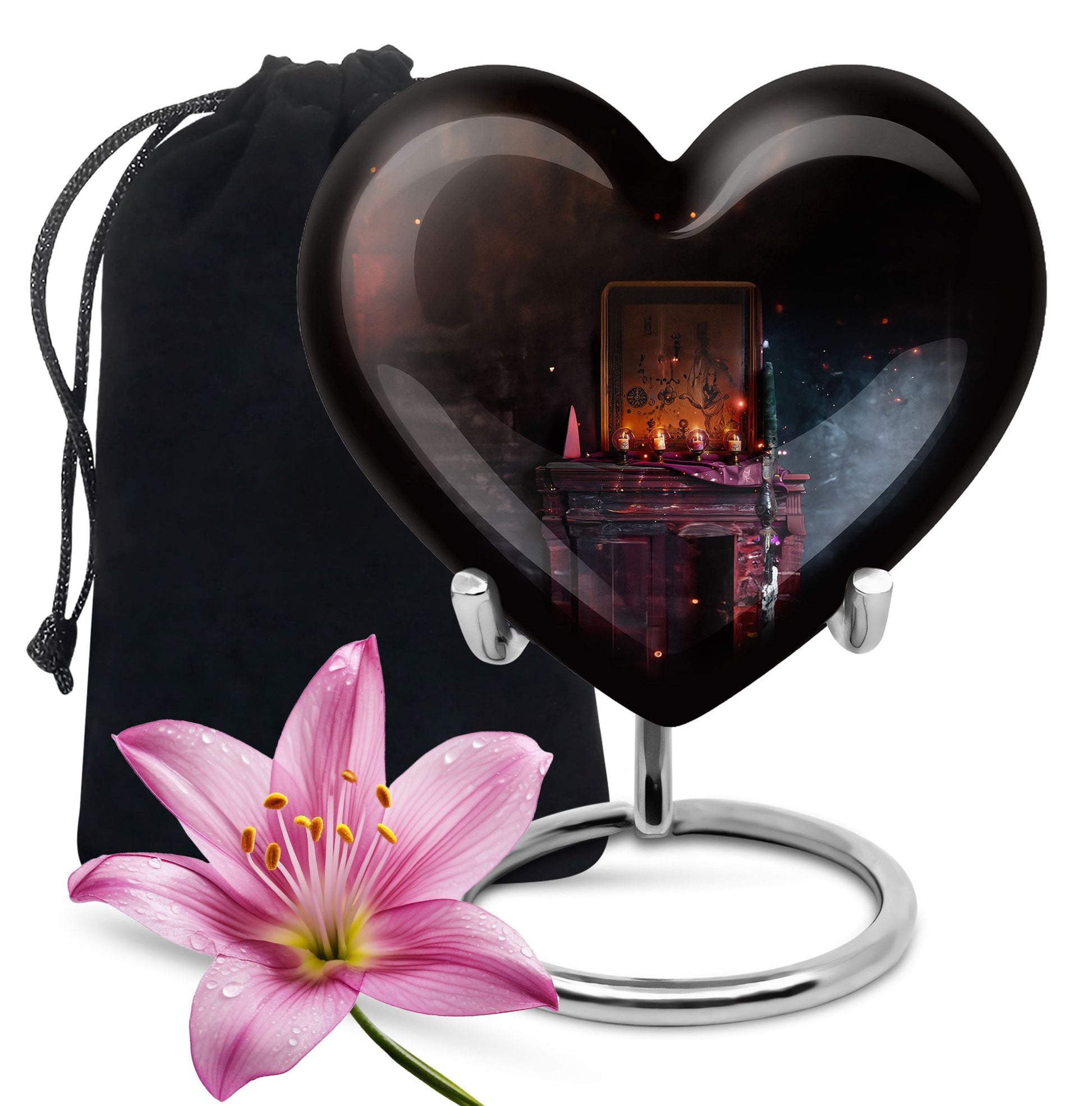 Discover the embodiment of serene reverence with our Abstract Tarot Urn, a meticulously crafted tribute to your dearly departed. This cremation dad urn, forged from a sturdy aluminium, showcases intriguing heart designs, exuding a blend of tenderness and resilience that resonates with your sentiments. Standing at a grand 10 inches, this large urn can generously accommodate up to 200 cubic inches of ash. Weighing 3.3 pounds, its robust structure is designed to withstand the test of time. For a touch of personal sentiment, avail our customization feature to engrave names and make this token truly your own. We also provide a plush velvet pouch, ensuring a dignified containment for the ashes. This urn perfectly suits those seeking a balance of affordability and quality. Whether you're in need of burial urns for adult men ashes or general human urns, our Abstract Tarot Urn emerges as a superior choice in your hour of remembrance.