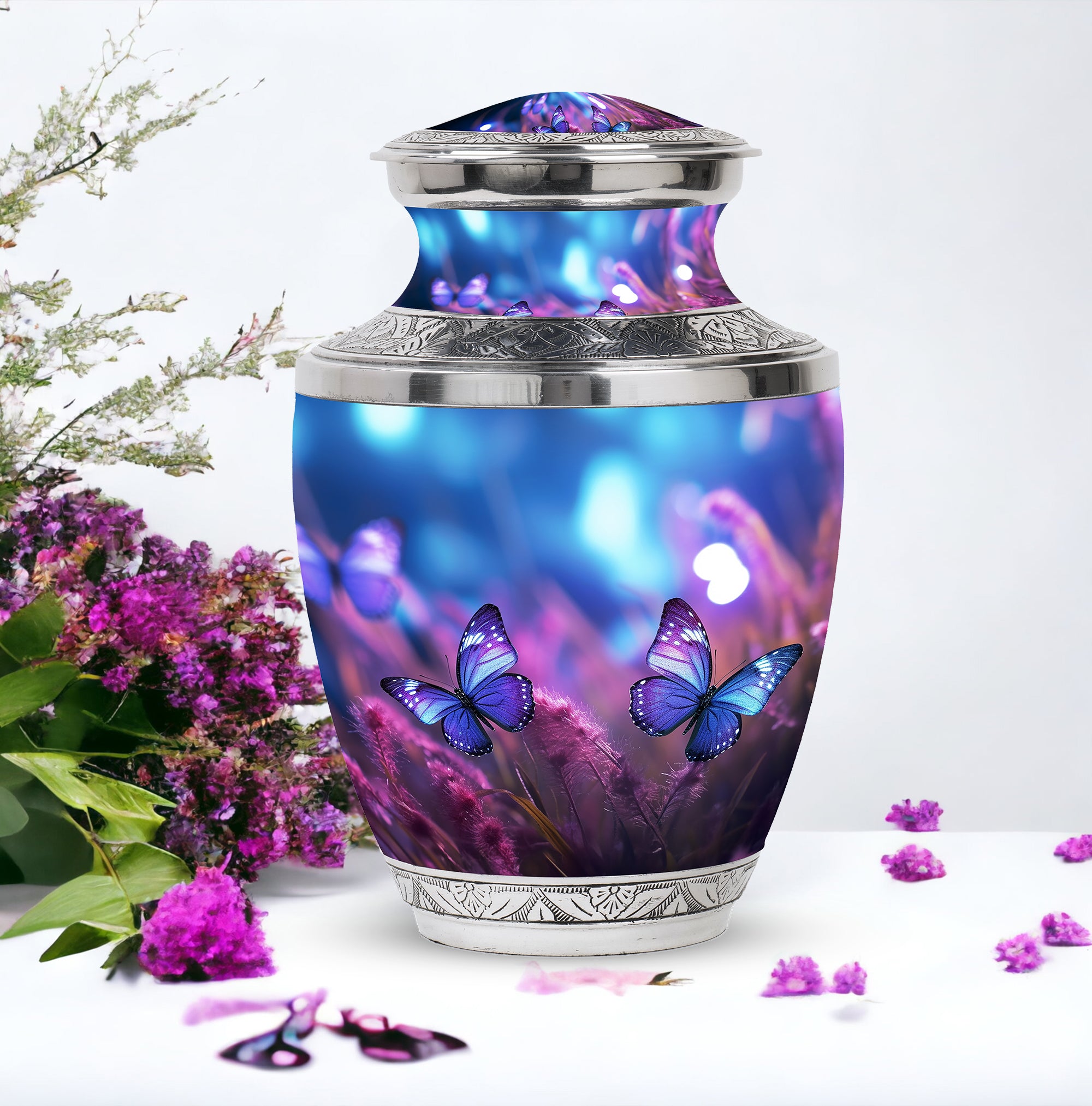 Purple Butterflies Flying Cremation Urn For Ashes - Blue Memorial Urn Tribute