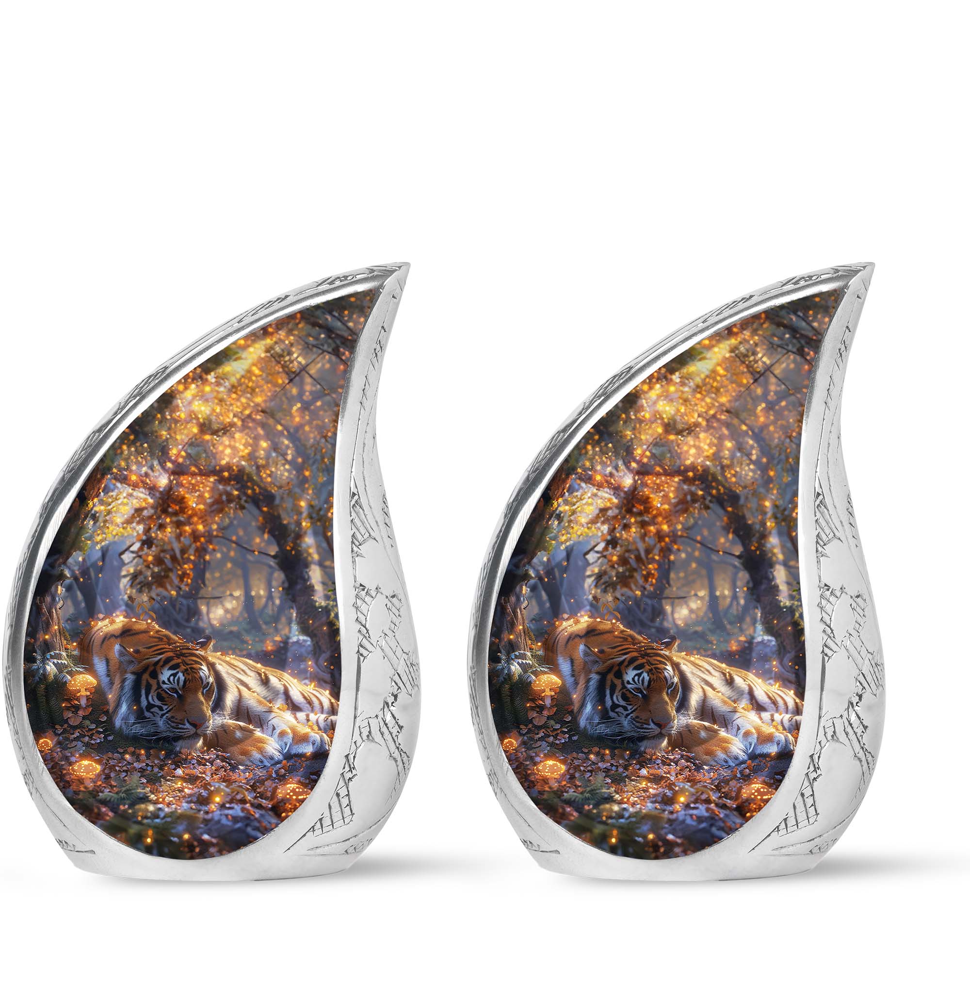 Expertly crafted from durable aluminium, this urn combines elegance and functionality. Its striking tiger design symbolizes strength and serenity, making it perfect as funeral urns men, cremation urn men, burial urn men, or cremation urn women. Compact yet substantial, it is suitable for both men’s urns for human ashes and keepsake urns for men ashes, providing a beautiful addition to any memorial space.