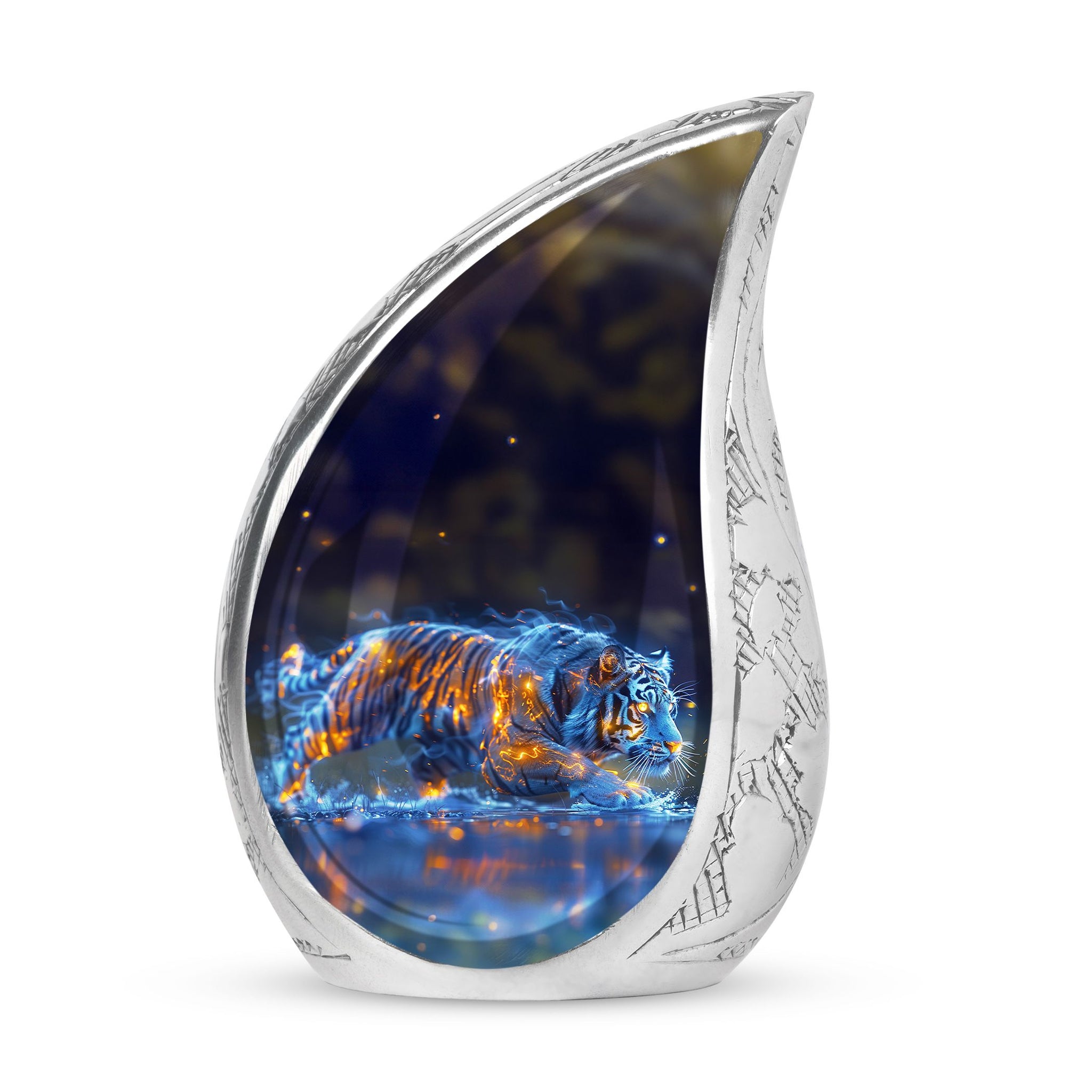 Celebrate lasting memories with the Blue Tiger Design Cremation Urn, a dignified choice that embodies love, legacy, and tribute for your cherished adult male Dad or adult female Mom.