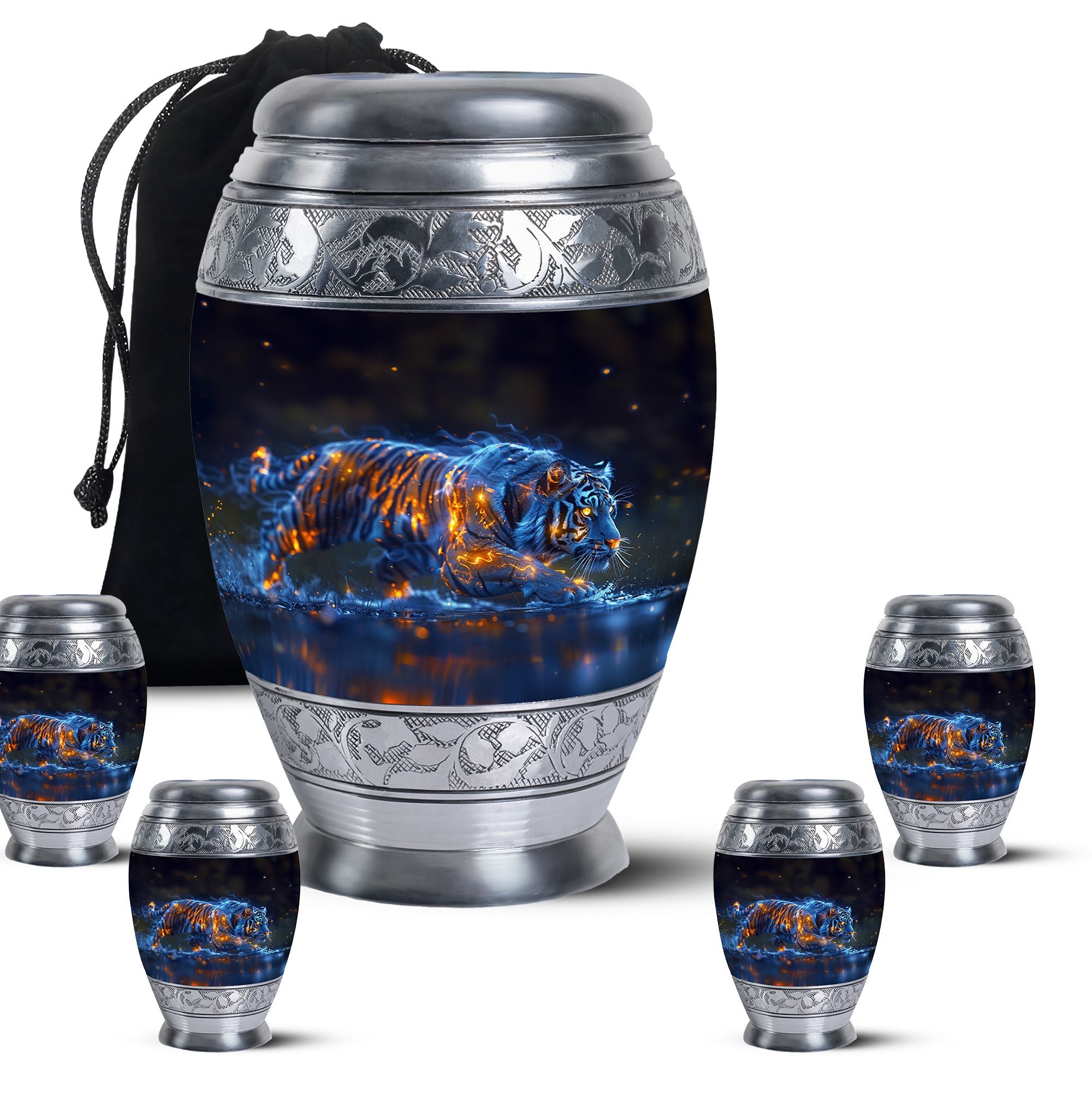 Cherish and honor the memory of your loved ones with the Blue Tiger Design Cremation Urn, thoughtfully crafted for both adult male and female ashes. This elegant urn serves as a meaningful tribute, making it a heartfelt choice among urns for human ashes adult male Dad or urns for human ashes adult female Mom.