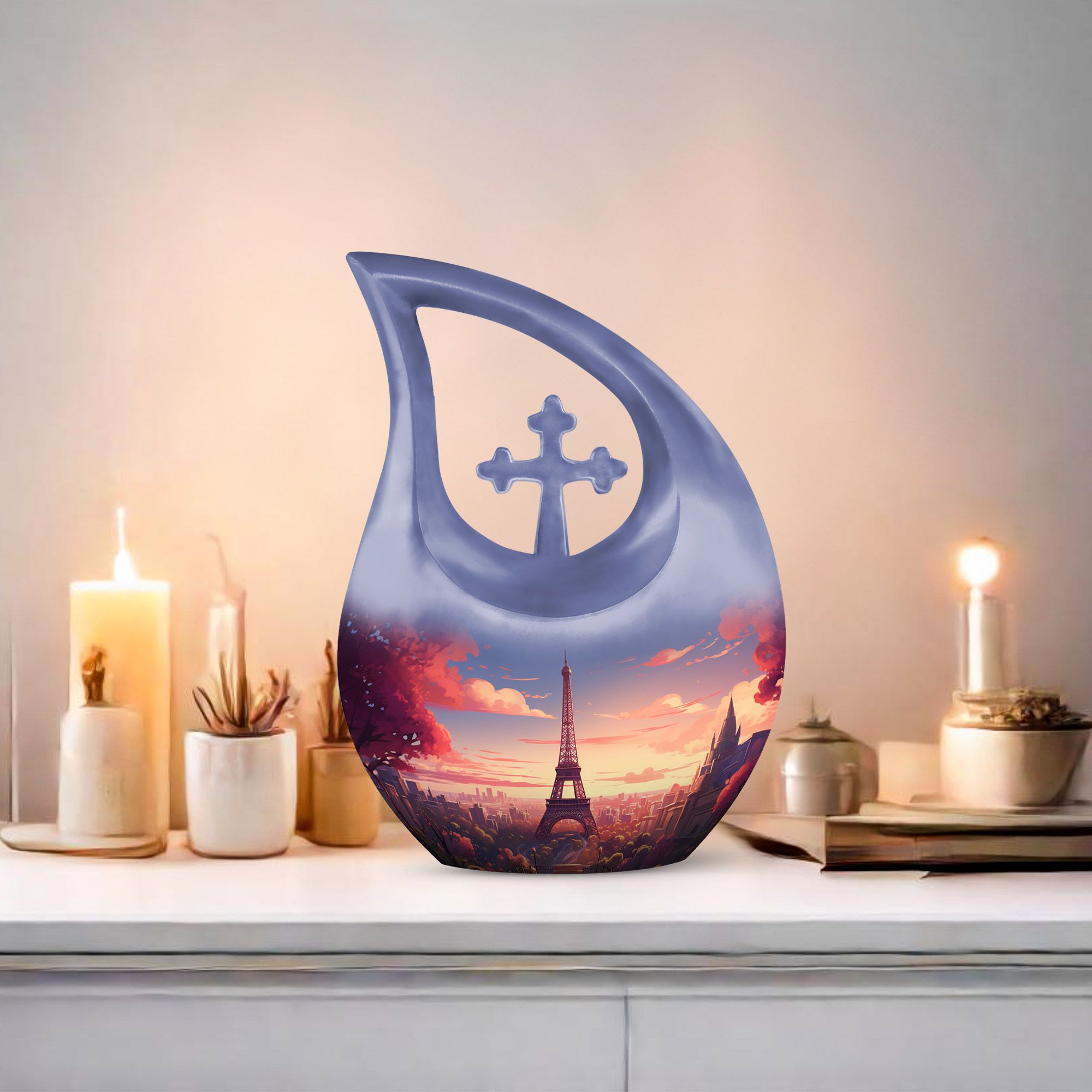 Preserve your loved one’s story with the Beautiful Eiffel Tower With Blossom Tree Scenic Urn—a piece that beautifully blends art, love, and memory, keeping their presence close forever.