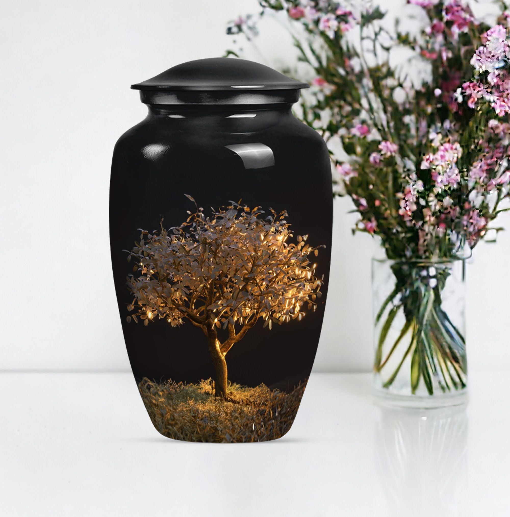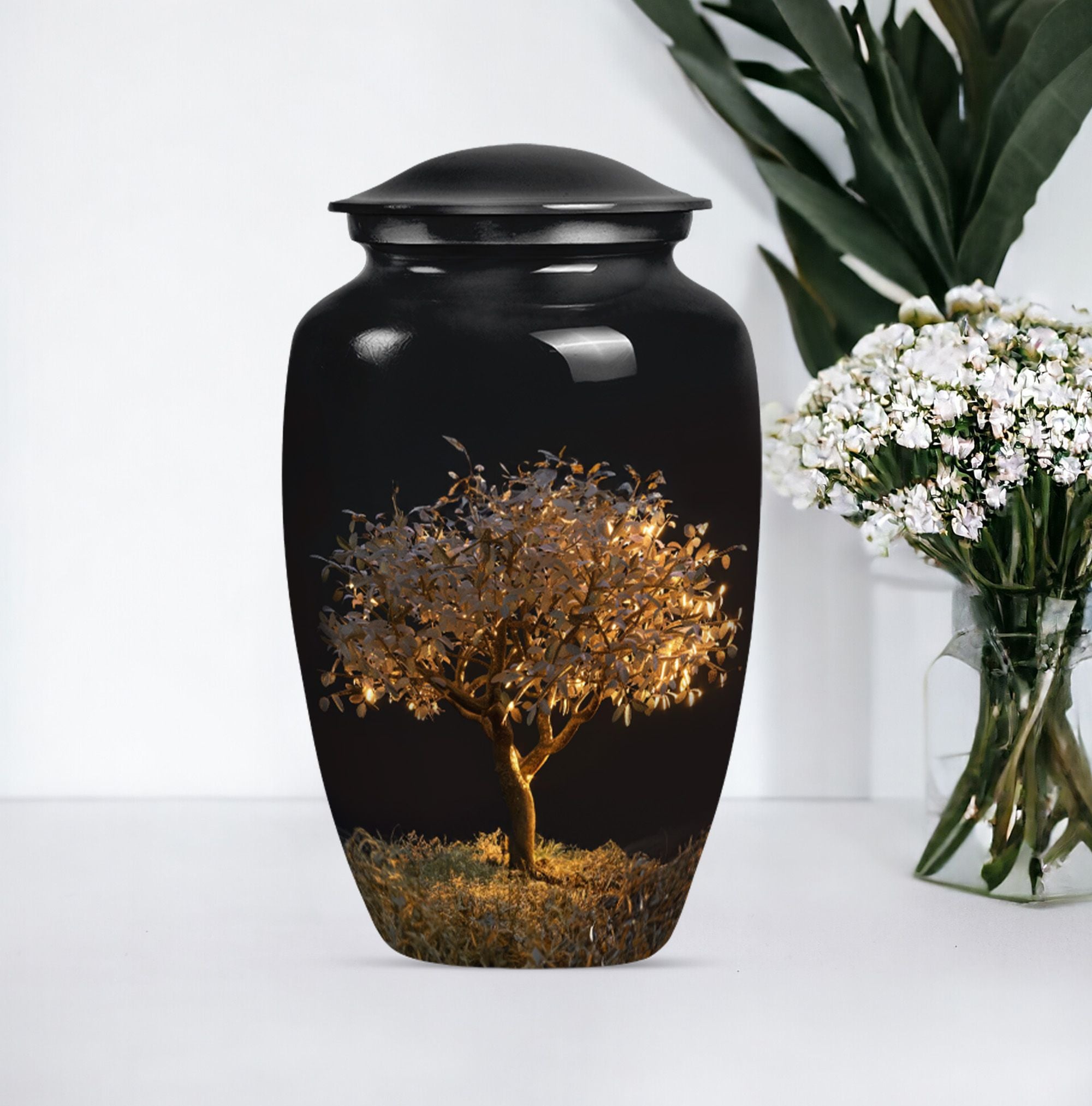 Celebrate the life and memories of your loved one with the Black Tree of Life Cremation Urn, a heartfelt tribute to those who have passed. This beautifully crafted piece serves as a dignified resting place, thoughtfully designed as a large urn for human ashes, perfect for women. With its symbolic Tree of Life motif, it honors legacy, love, and remembrance.