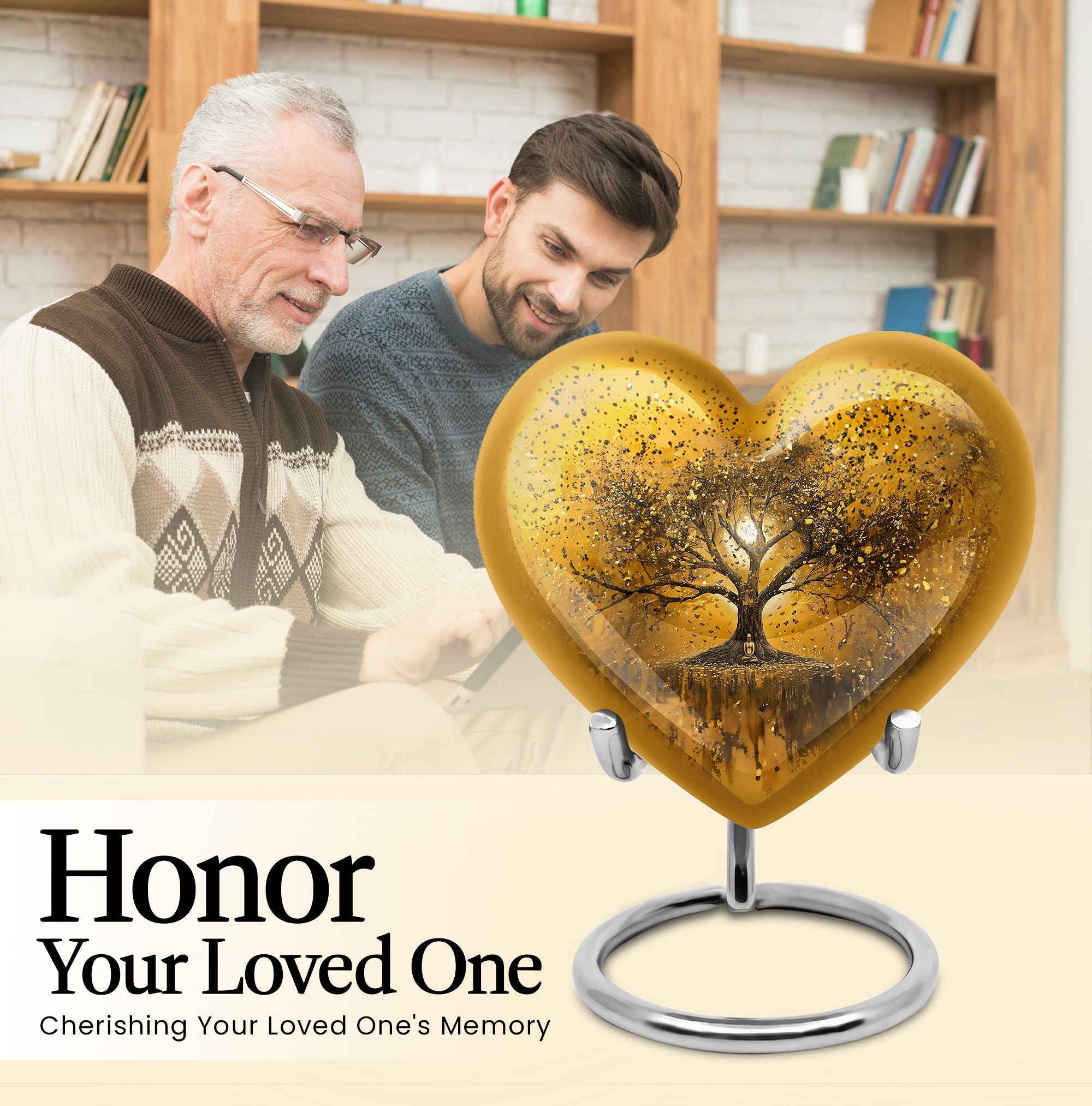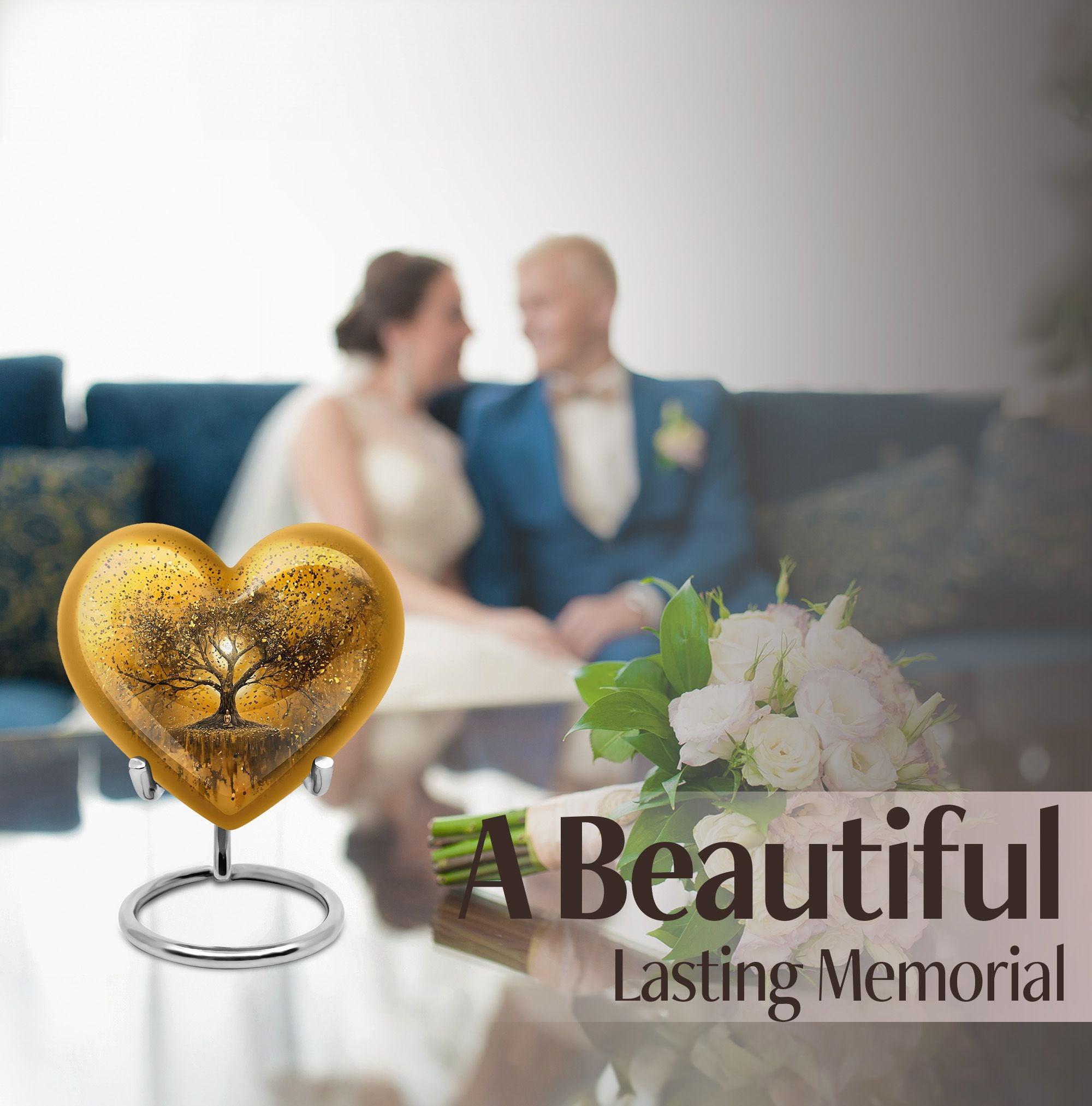 Honoring a loved one's memories can provide solace and give meaning to their life. Revere the life of someone dear to you with this 'Tree of Life' Urn – an exquisite artwork dedicated to adults and seniors. Handcrafted from quality Aluminium, this mesmerizing 10-inch 'Heart' urn weighing 3.3 pounds showcases a distinctive blend of traditional and modern aesthetics. Its 200 cubic inches capacity not only contains the ashes but also encapsulates a myriad of memories. The urn comes with a velvet pouch, ensuring the containment of ashes in a graceful and respectful manner. Personalize this large urn with engraved names to add an intimate touch. Beyond its visual appeal, this 'abstract'-themed urn serves as a enduring tribute to a life well-lived. Perfectly suited for memorial ceremonies, this urn is quintessential for those searching for 'cremation urns', 'memorial urns for ashes adult female', 'cremation medium urns for human ashes', 'human ash adult', or 'funeral cremation urns'. Remember, this isn't just a container; it's a heartful homage to a cherished soul.