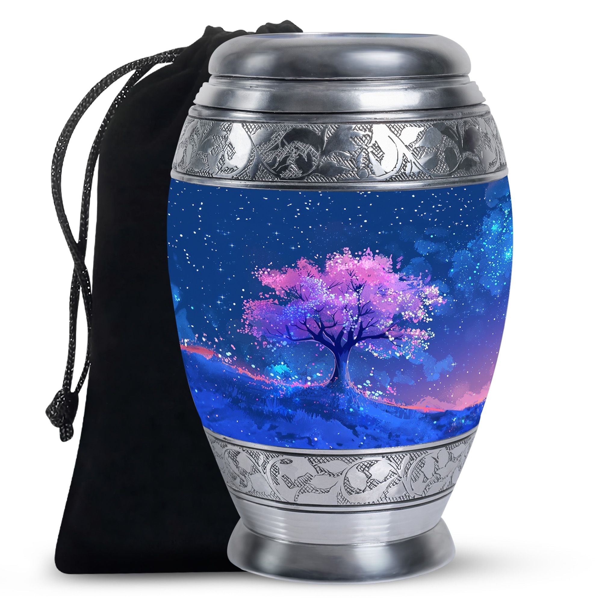 This large human ashes urn offers both style and sentiment, suitable for home memorials, burial, or as part of a peaceful remembrance display. Its comforting colors and symbolic tree design make it one of the most beautiful cremation urns large adult families can choose.