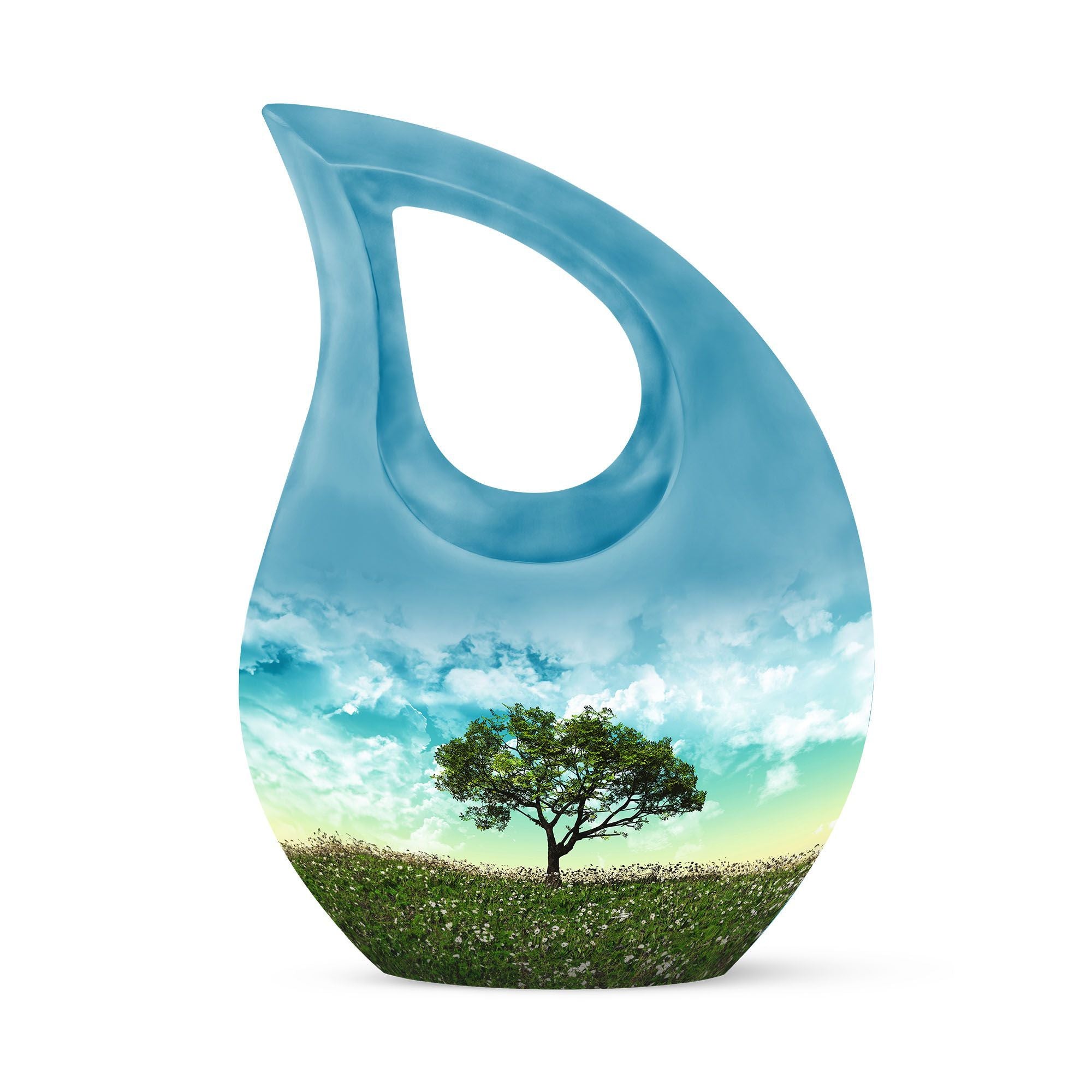 The Tree in a Garden Memorial Urn for Funeral embodies serenity, remembrance, and the circle of life. With its tranquil tree design set against a soft, natural backdrop, this large urn for ashes for women or men represents harmony between life and eternity. Perfect for honoring a loved one’s spirit, it offers a peaceful and elegant final resting place.