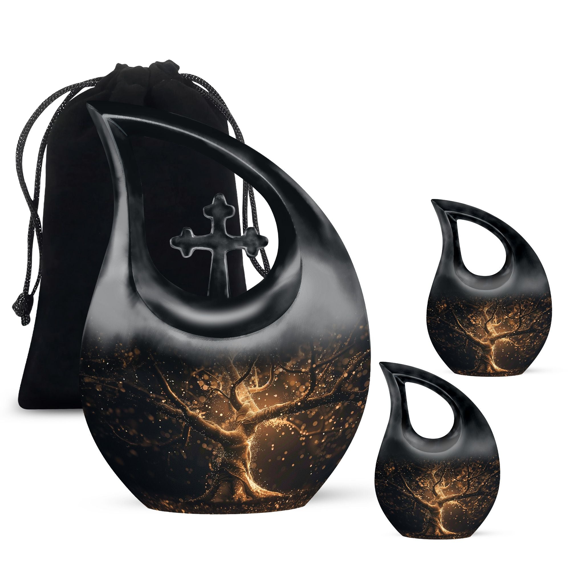Draw solace during your grieving with our Tree Of Life urn, the ideal tribute to your loved one. Crafted with a Cross Drop etched detailing, this 10-inch Aluminum-made urn showcases an intricately displayed Tree Of Life theme, capturing the eternal concept beautifully. The lightweight urn with dimensions of 10 inches and a weight of 3.3 pounds, can accommodate up to 200 cubic inches of ashes. Easy customization; personalize with engraved names to further make it special. This large urn type provides a velvet pouch for containment and secure storage of ashes, considering the meaningful value it holds. Besides, this personalized urn is a profound, yet inexpensive alternative to other memorial urns. Don't just remember your past one; celebrate their life with our quality urn. Ideal key terms to find this product are 'Garden Urns For Ashes, Affordable Urns, Cremation Boxes, and Medium Urn'.