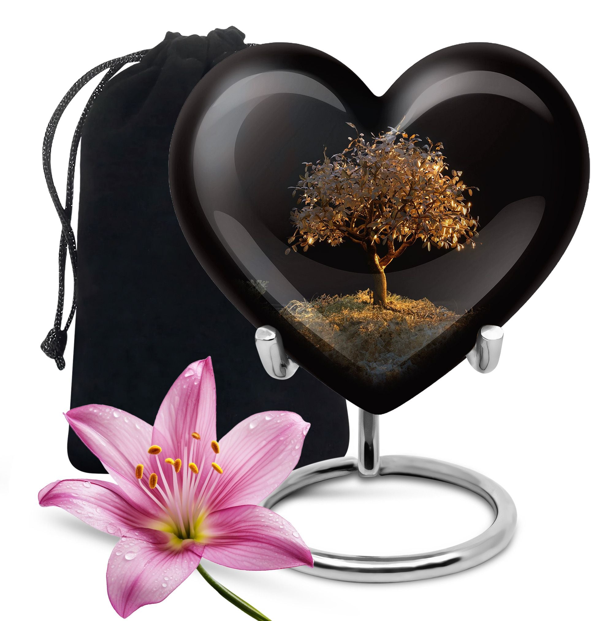 Heartfelt and serene, this large-sized 'Tree of Life Urn' is a luminous memorial urn designed to hold up to 200 cubic inches of ashes. Specially crafted for both men and women, this 10-inch cremation urn is constructed from high-quality aluminium, ensuring solid weight (3.3 pounds) and long-lasting use. Conveying an abstract theme, this item is a part of our memorial ceremony supplies meant to honor the memory of your loved ones. Through personalization option, the urn can be further enhanced with engraved names, adding a unique touch to it. Along with the urn, a velvet pouch is provided for safe containment of the ashes. This cremation urn stands apart for aesthetics, longevity, and ease of use. Consider this cremation urn as an elegant tribute to your loved one's memory. Please note, this product caters mainly towards adult and senior audiences.