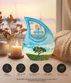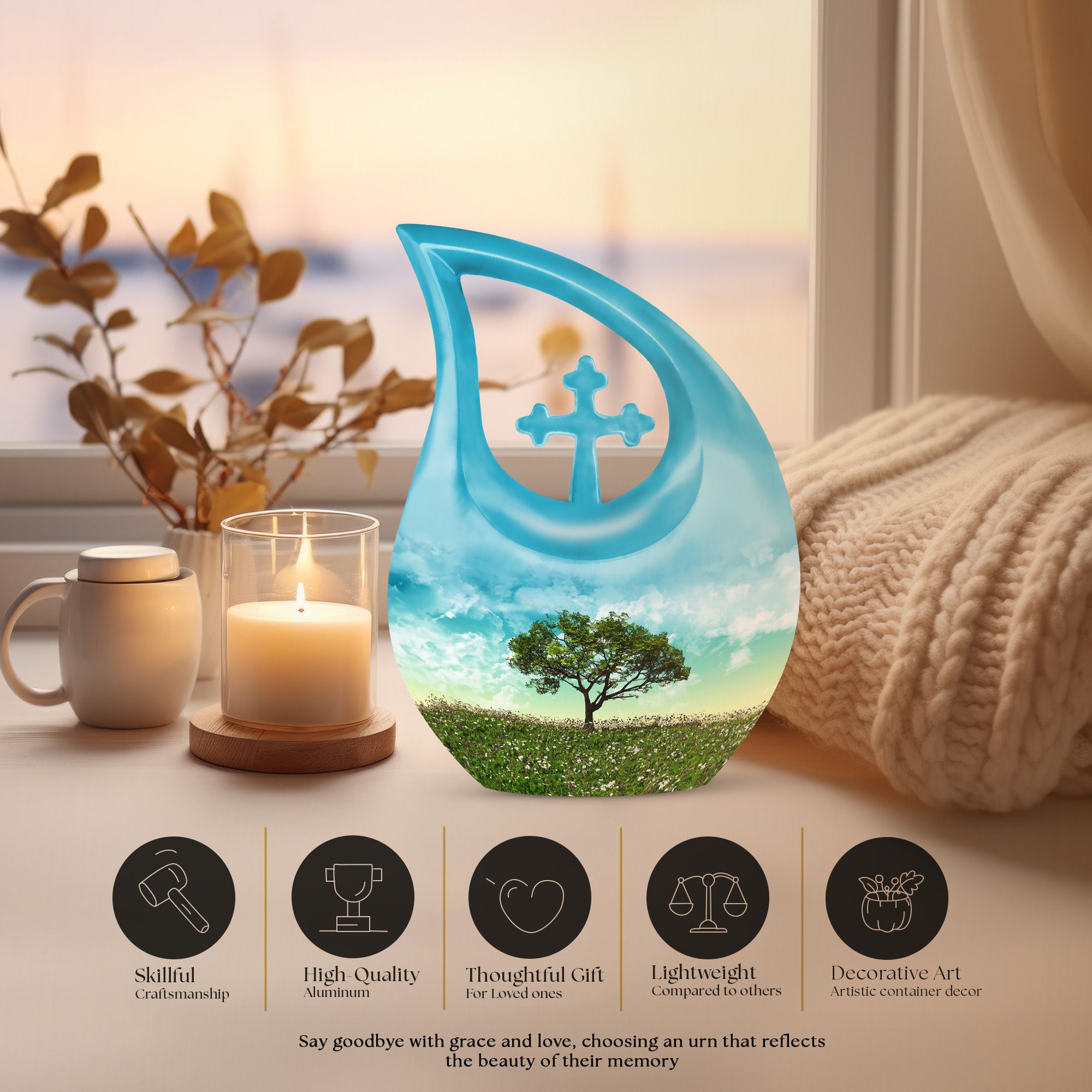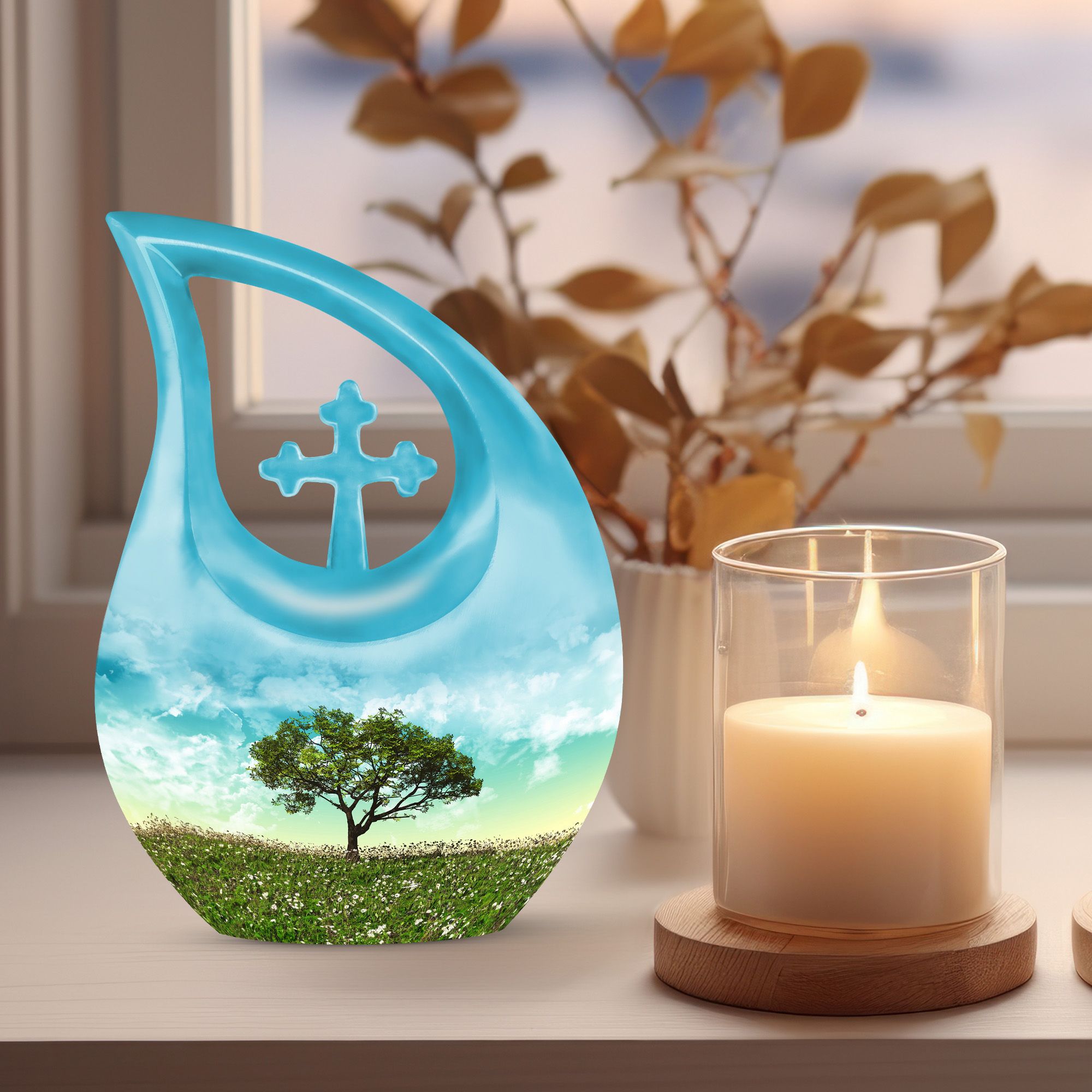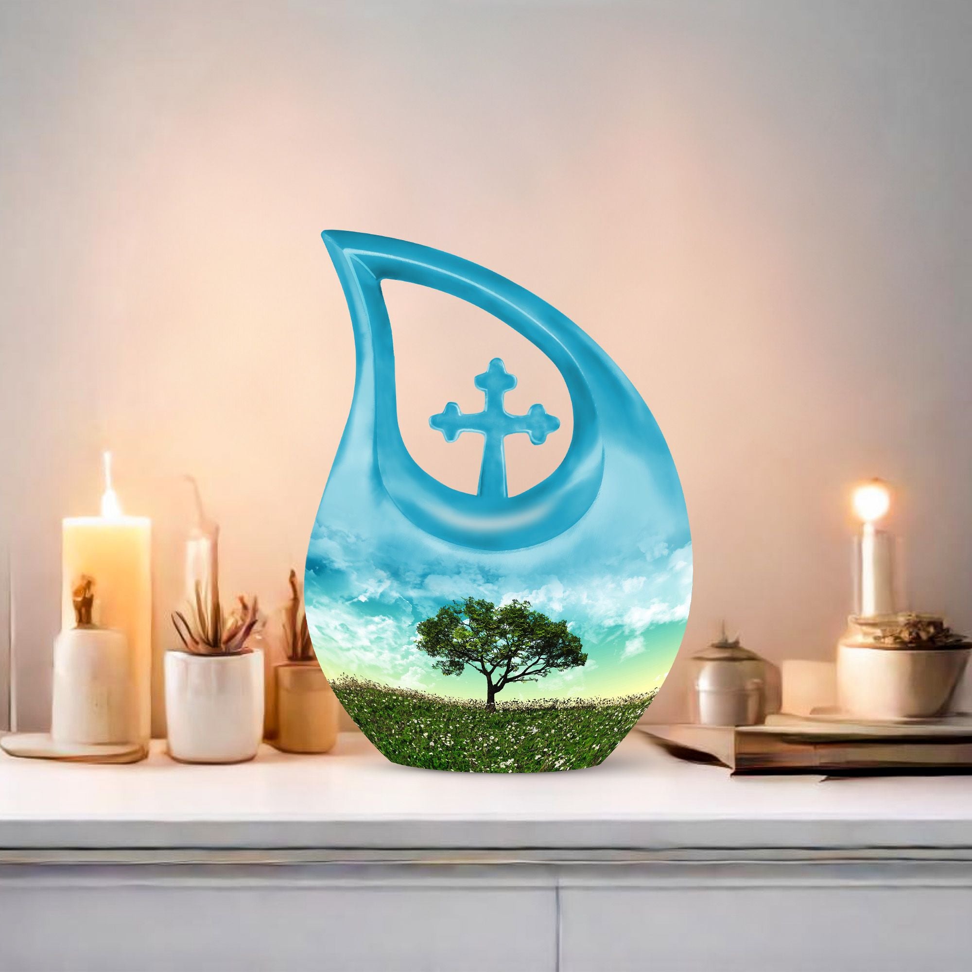 This tree urn for cremation ashes offers a peaceful and symbolic tribute, blending the calming beauty of a blue sky with the strength and grounding of nature. Designed for both men and women, it brings comfort to families seeking cremation urns for burial, burial urns for ashes, or a dignified memorial that reflects serenity, growth, and remembrance.