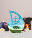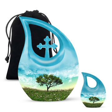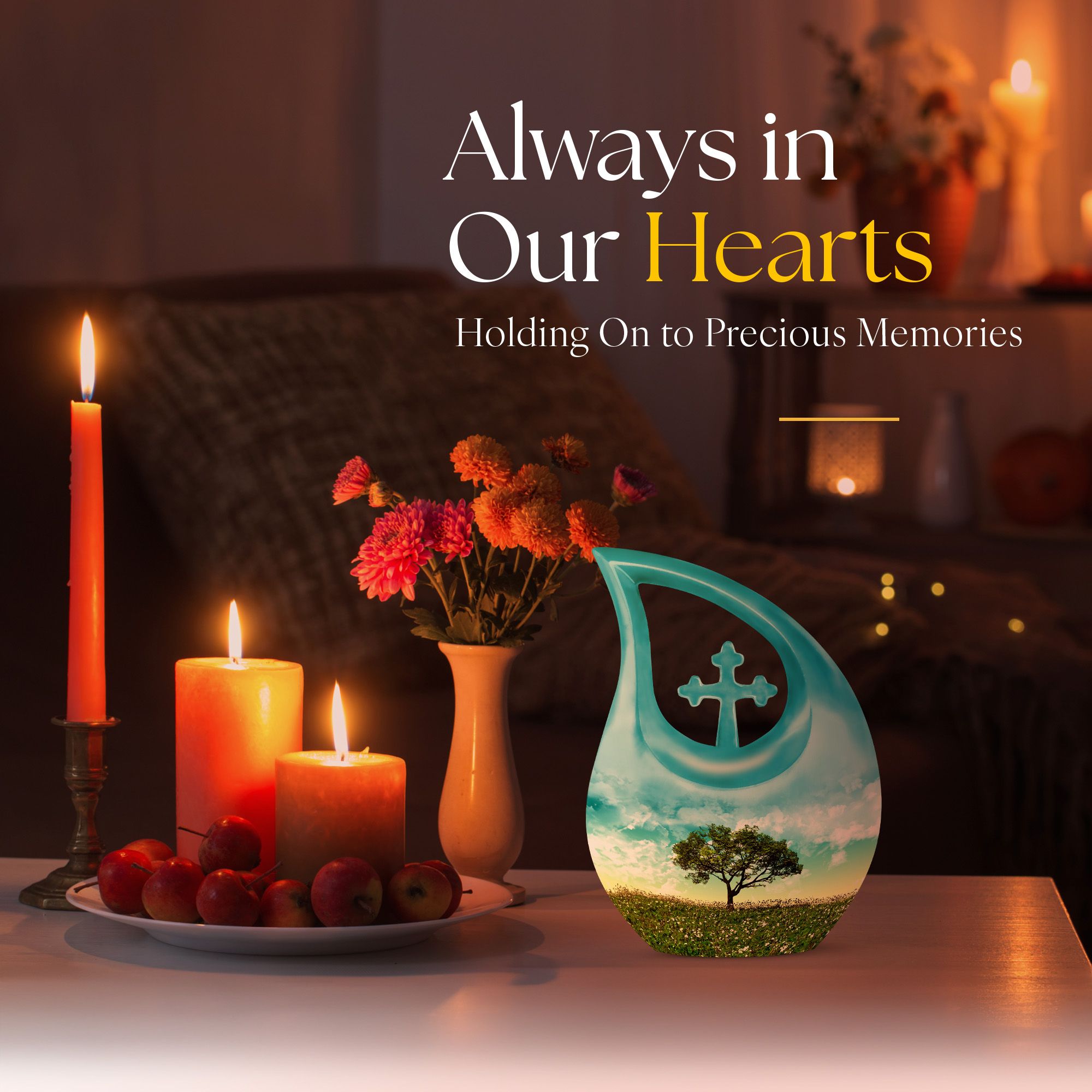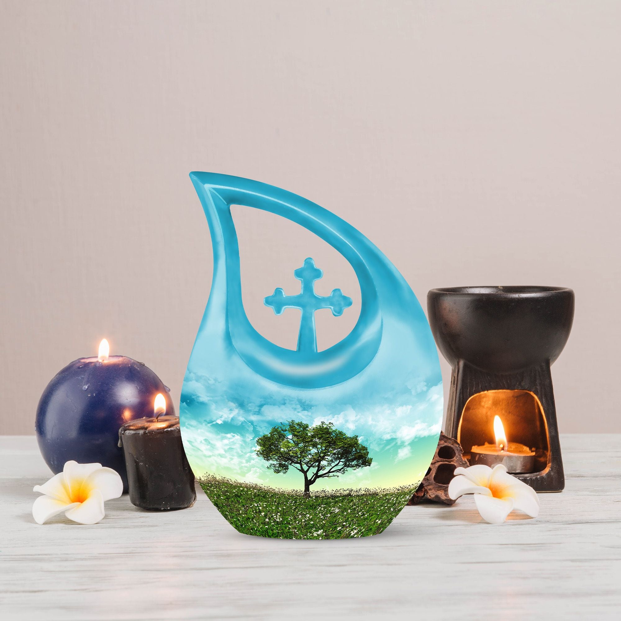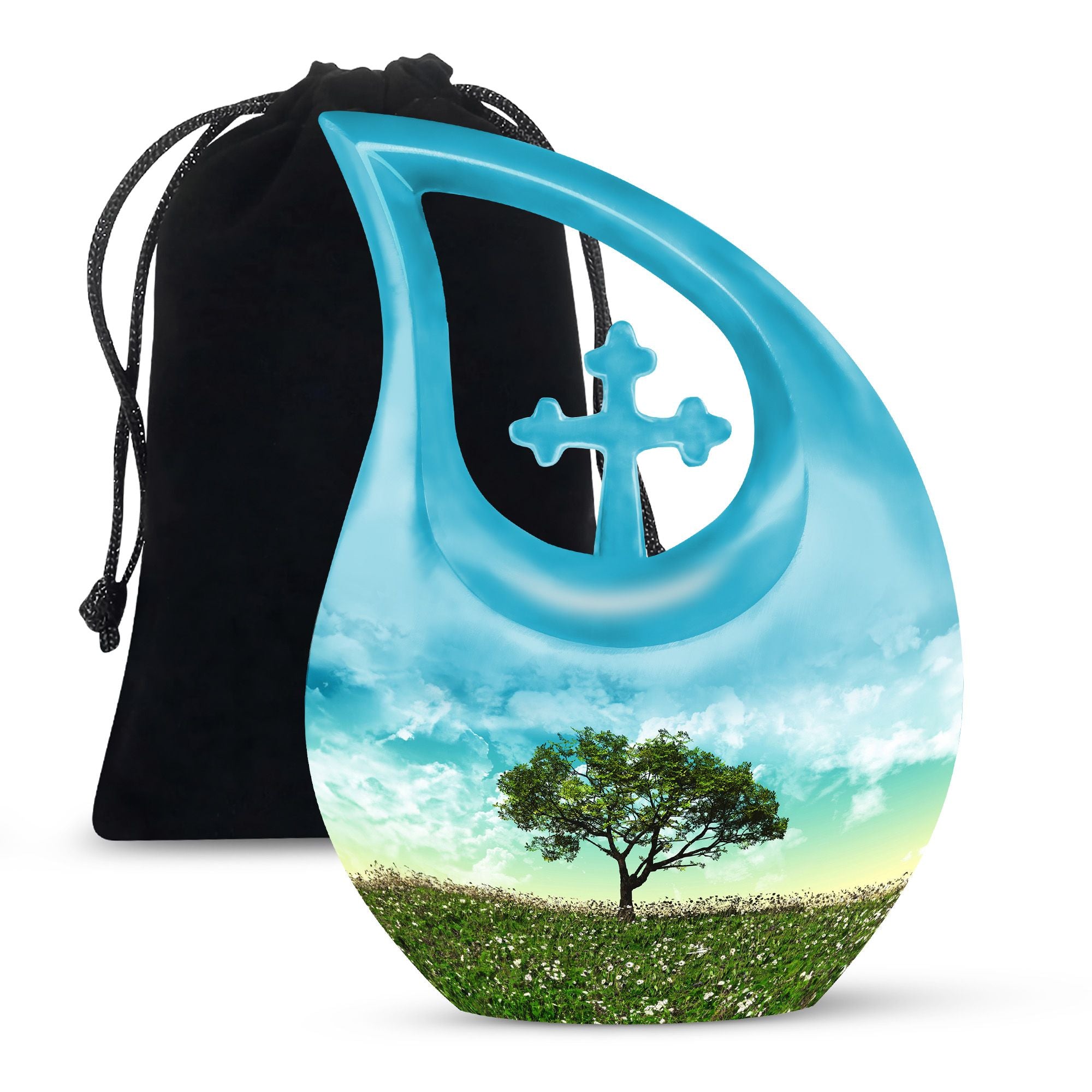 This tree urn for cremation ashes offers a peaceful and symbolic tribute, blending the calming beauty of a blue sky with the strength and grounding of nature. Designed for both men and women, it brings comfort to families seeking cremation urns for burial, burial urns for ashes, or a dignified memorial that reflects serenity, growth, and remembrance.