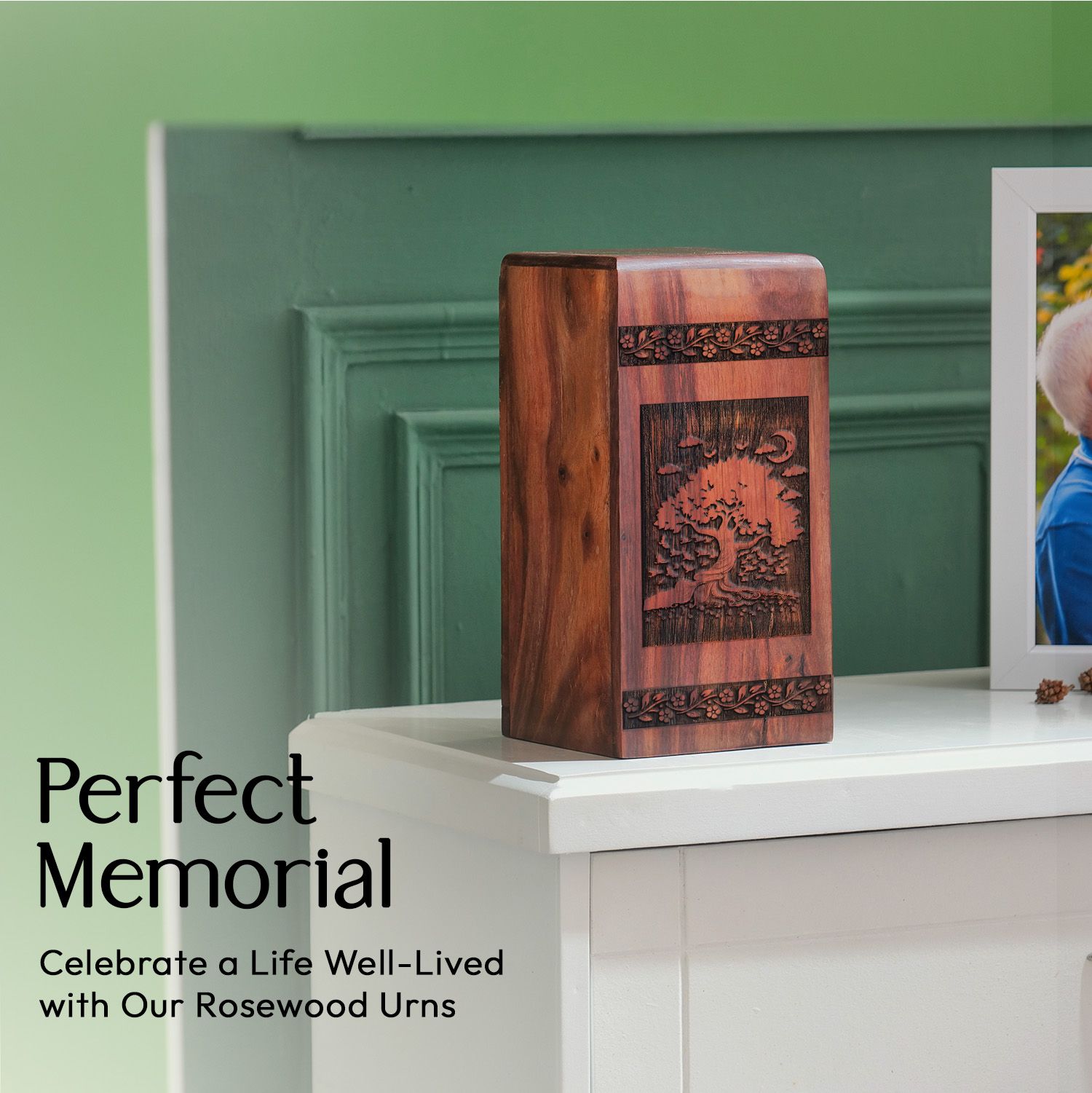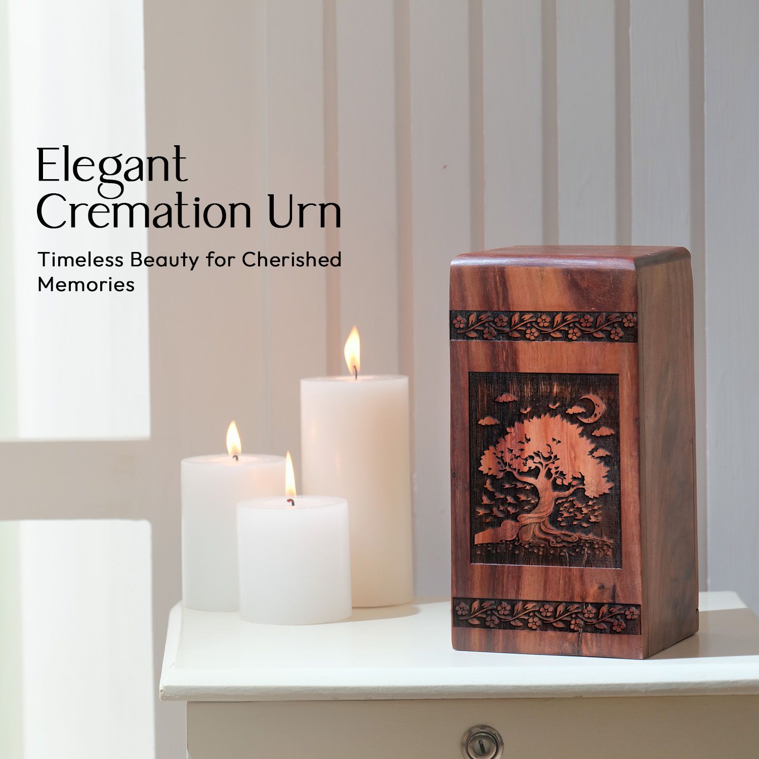 Experience symbolic eternality with our Tree of Life Urn for Ashes. Crafted in meticulous detail, this biodegradable urn serves as a loving tribute and a serene resting place for your loved one's ashes. The enchanting motif of the Tree of Life conveys beautiful sentiments of connection and continuity, making this urn a tranquil choice for ashes after cremation. Targeted at seniors and adults, it is sophisticated in design yet simple in essence. Particularly appealing to women, the urn embraces an organic and environmentally conscious outlook with its biodegradable trait. Intended for adult ashes, it affords a serene last resting place, while maintaining the dignity and respect that your departed loved one deserves. This urn is a thoughtful choice for those searching for a way to honor a treasured life. Poignant, comforting, and respectful – our Tree of Life Urn is a ceremonious blend of tradition, design, and sustainability.