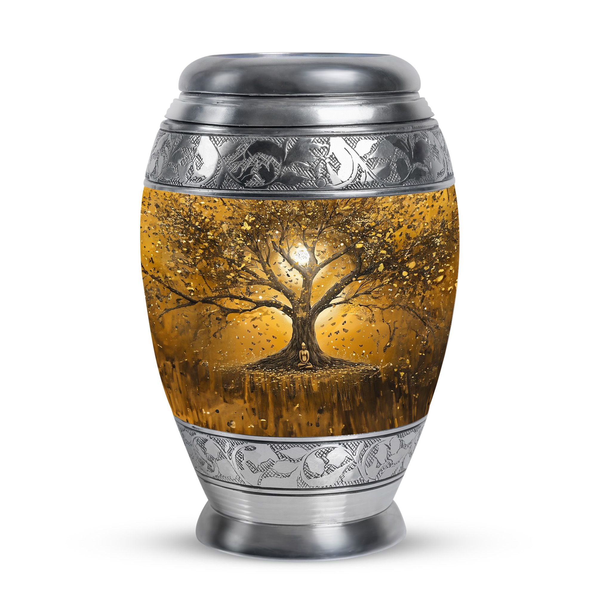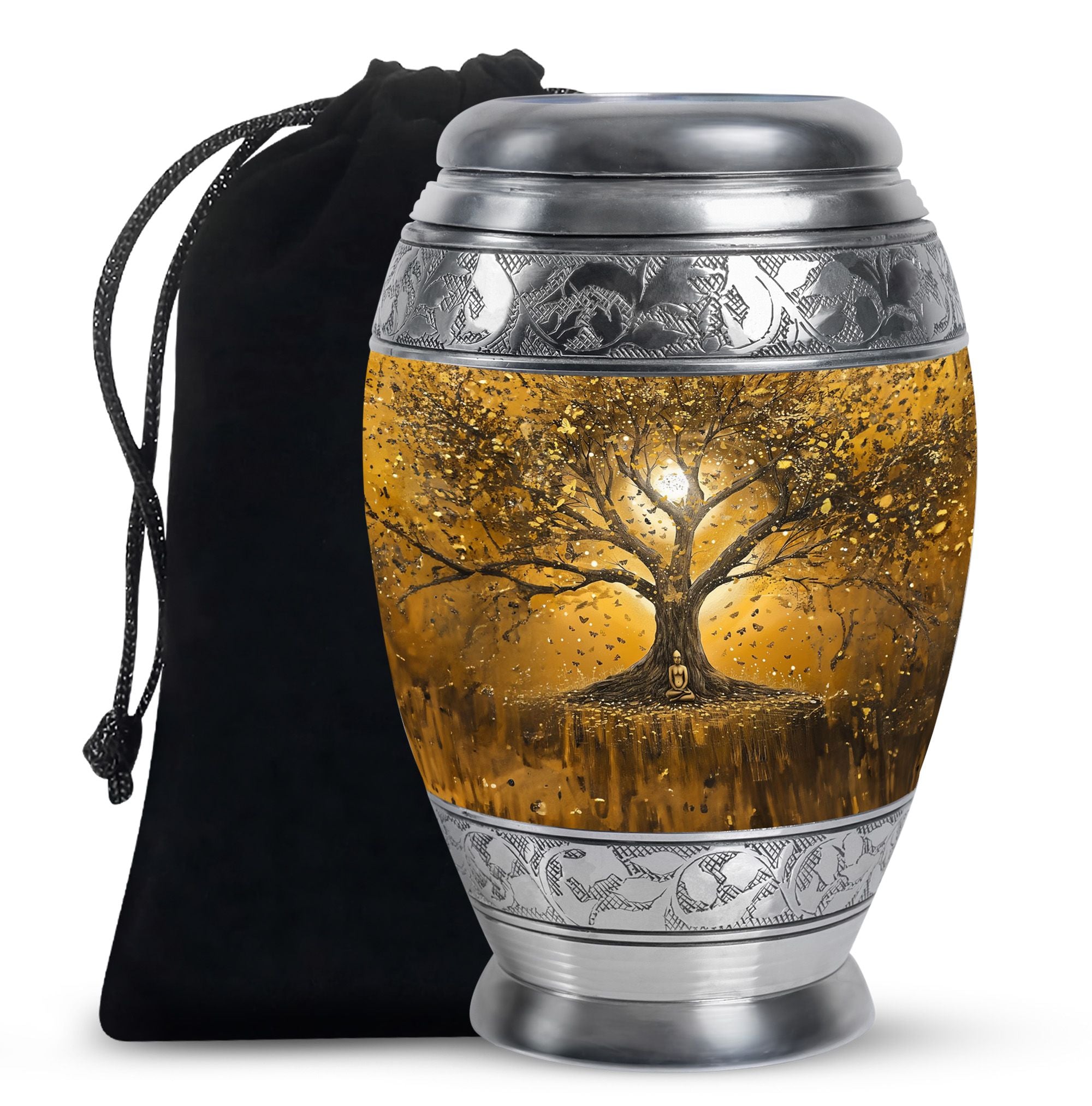 This **cremation urn for human ashes** features **a detailed Tree of Life engraving, representing strength, unity, and the eternal journey of the soul**.