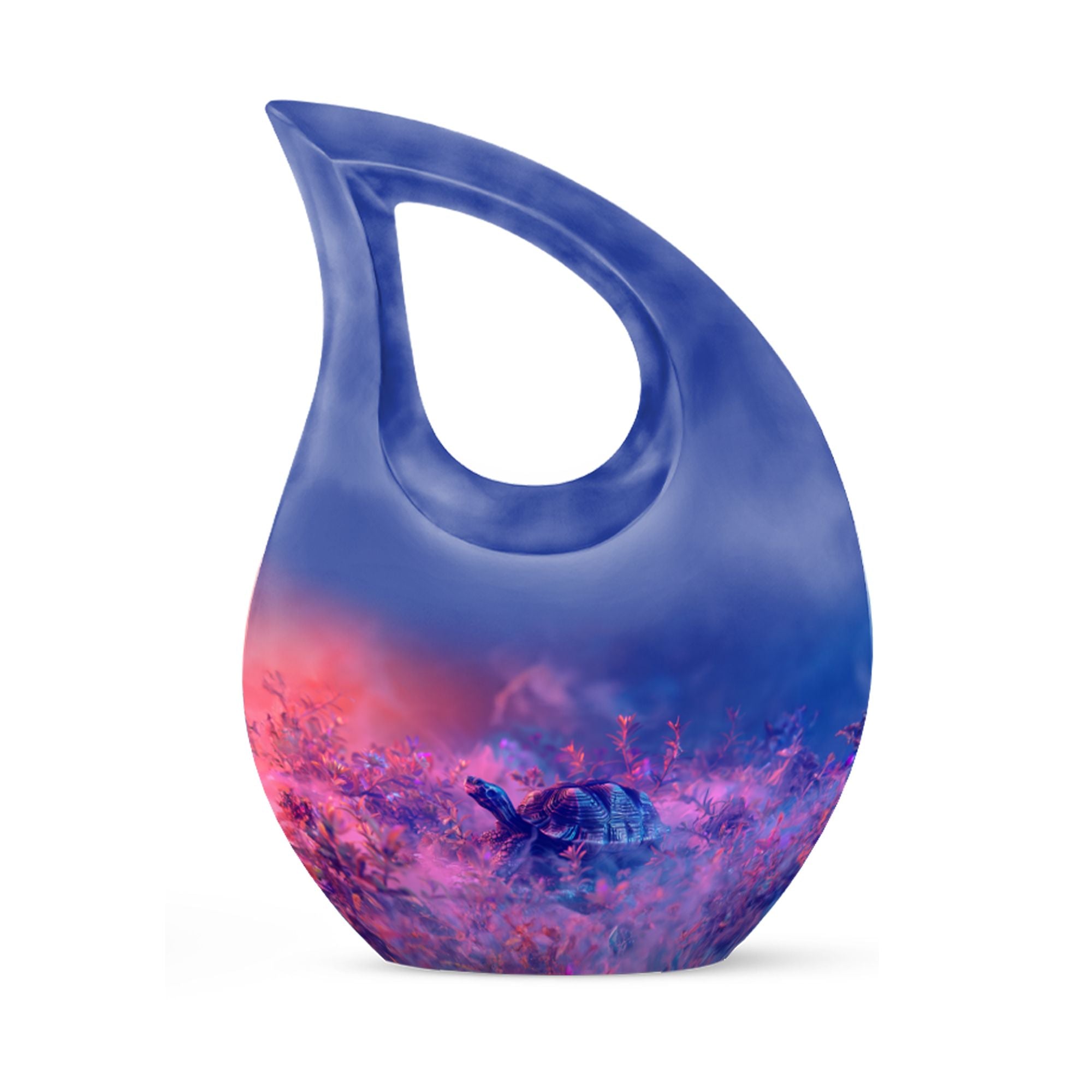 This lavender turtle urn is perfect for home memorials, burial ceremonies, or as a thoughtful keepsake for remembrance. It offers a comforting way to honor a loved one while serving as a lasting symbol of love and memory.