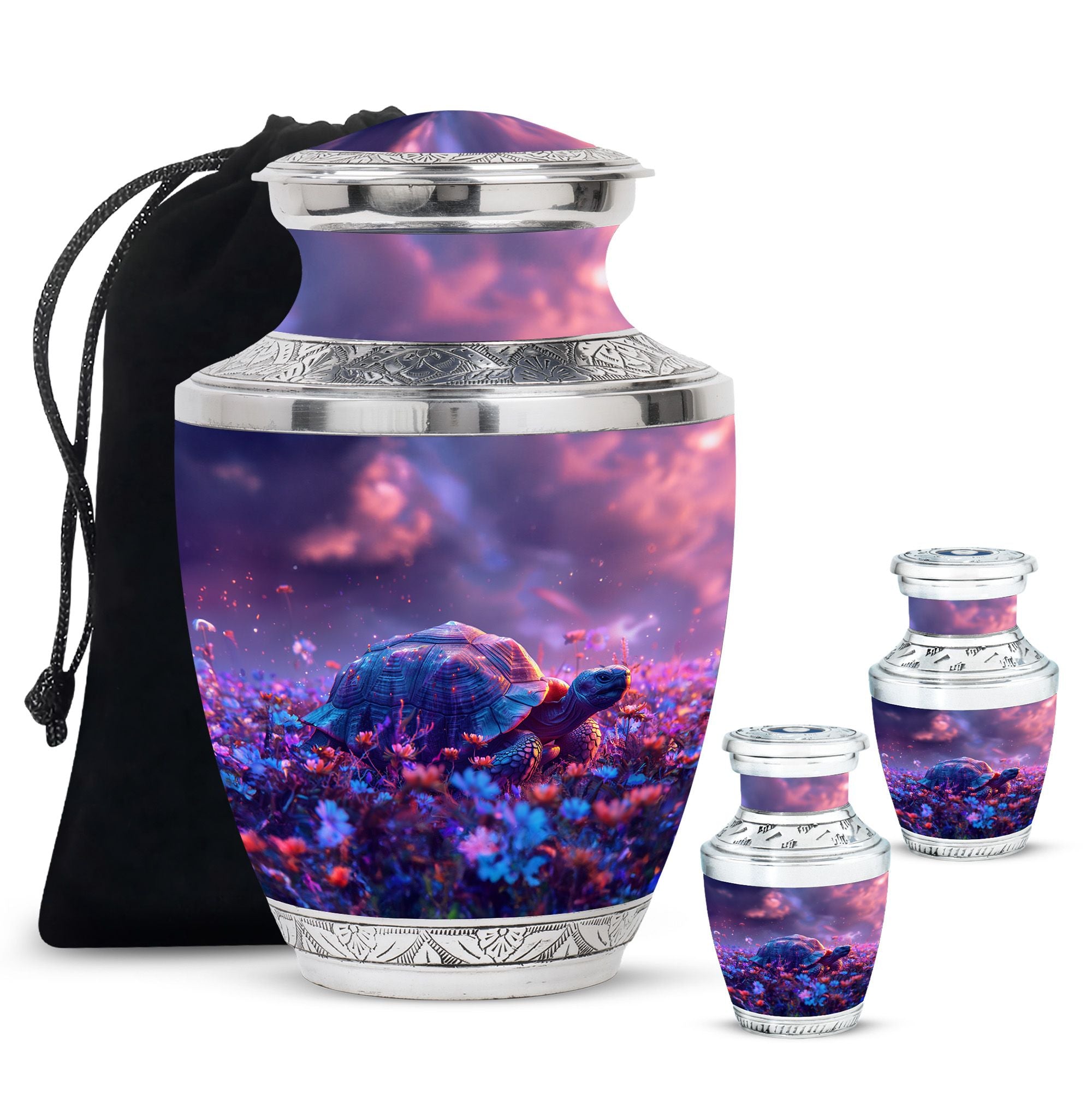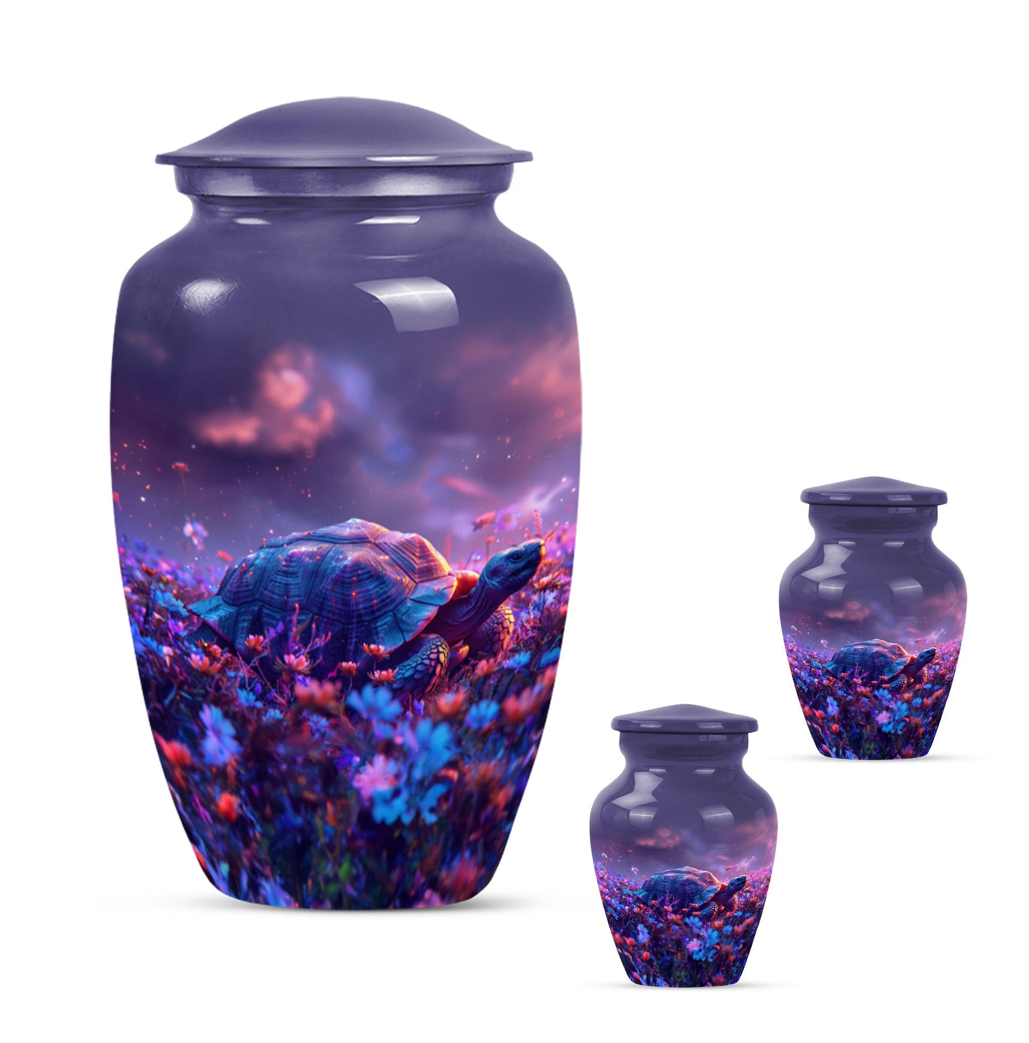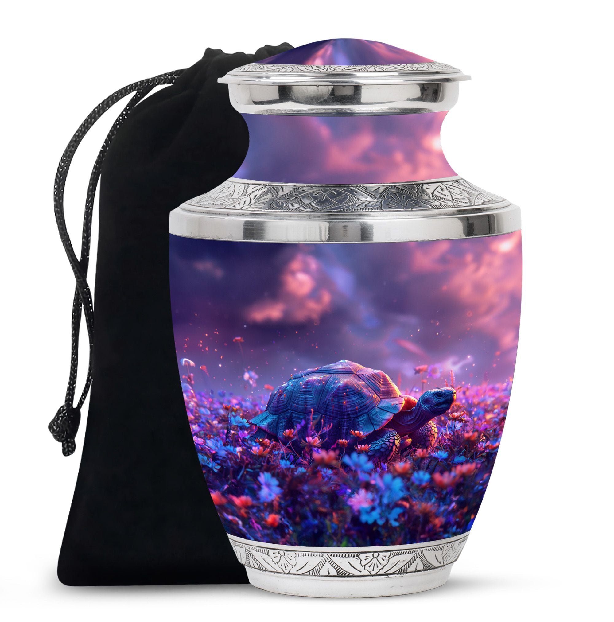 Perfect for funeral ceremonies, burial, or home memorial displays, this purple turtle urn serves as a dignified tribute to a life cherished. Its striking design provides comfort and a sense of connection to those who remain.