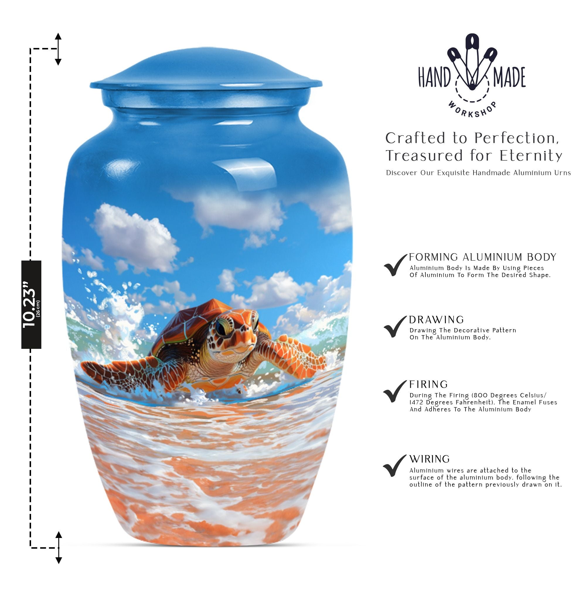 A memorial urn should reflect the beauty of life and the peace of eternity. This turtle urn is crafted to symbolize wisdom and endurance, making it a heartfelt tribute for families seeking a meaningful beach urn or ocean urn to honor their loved ones.