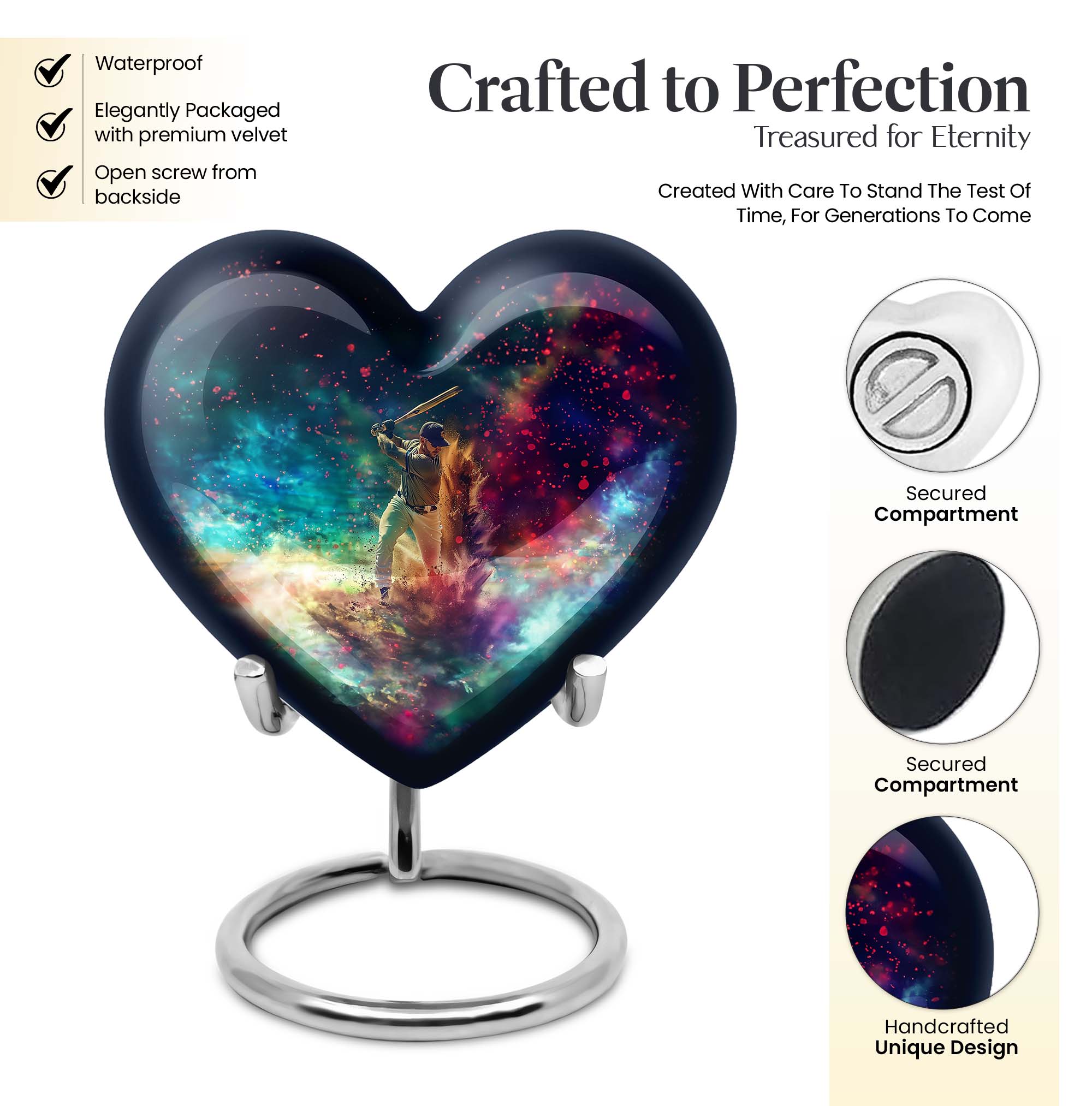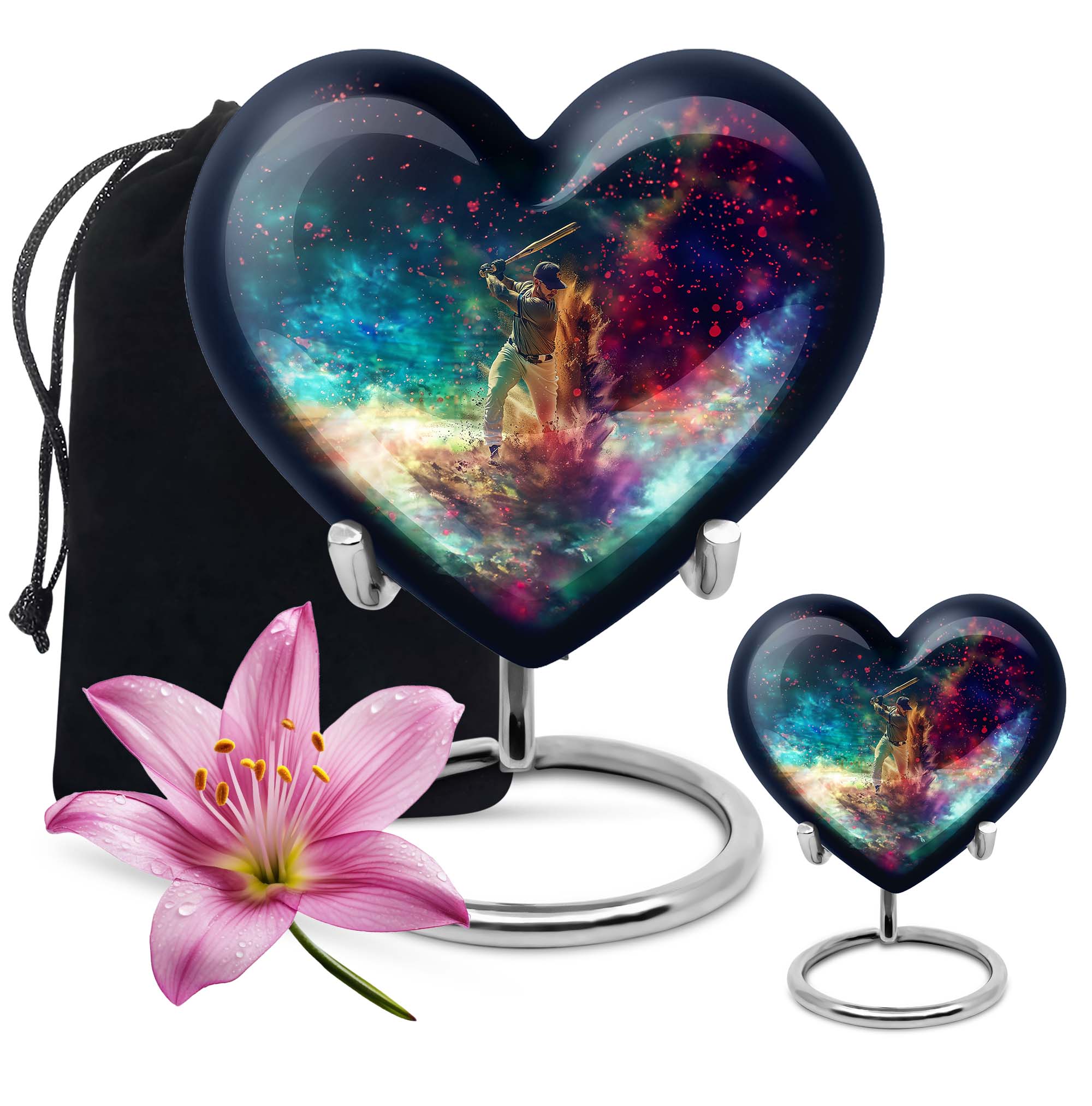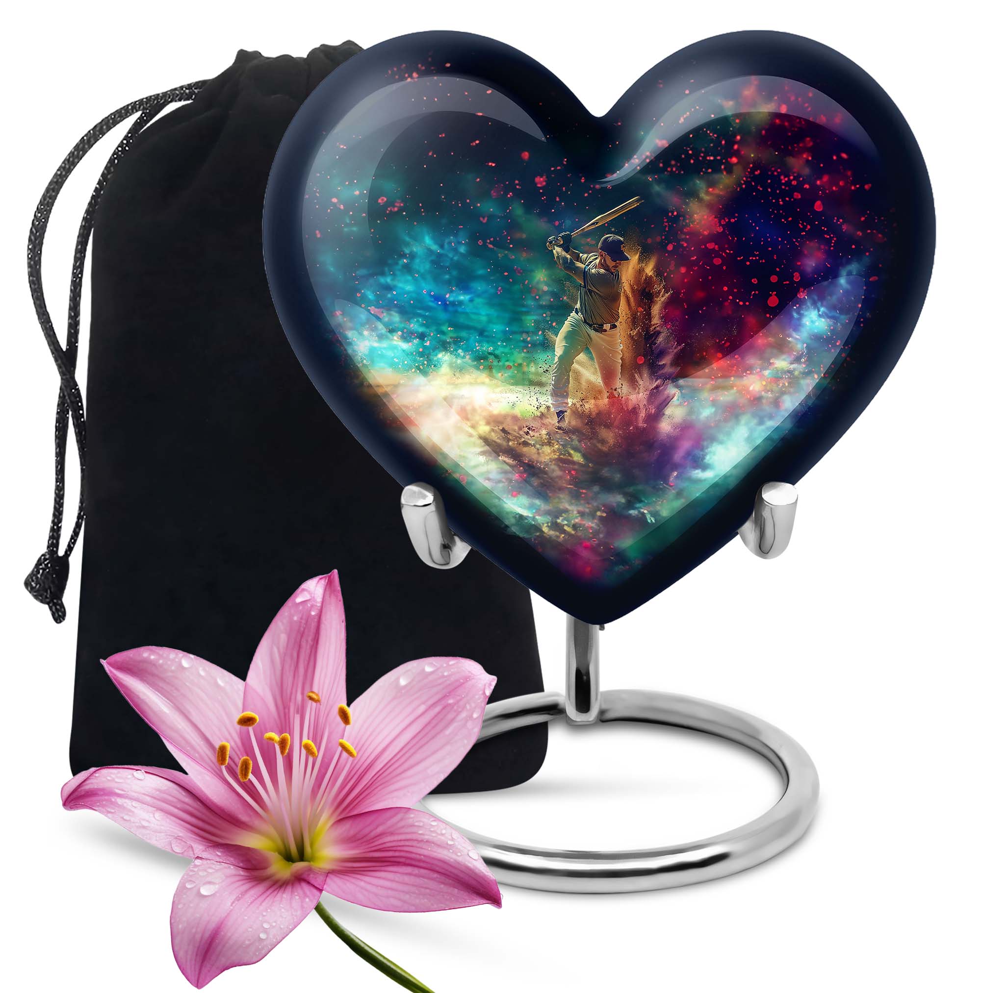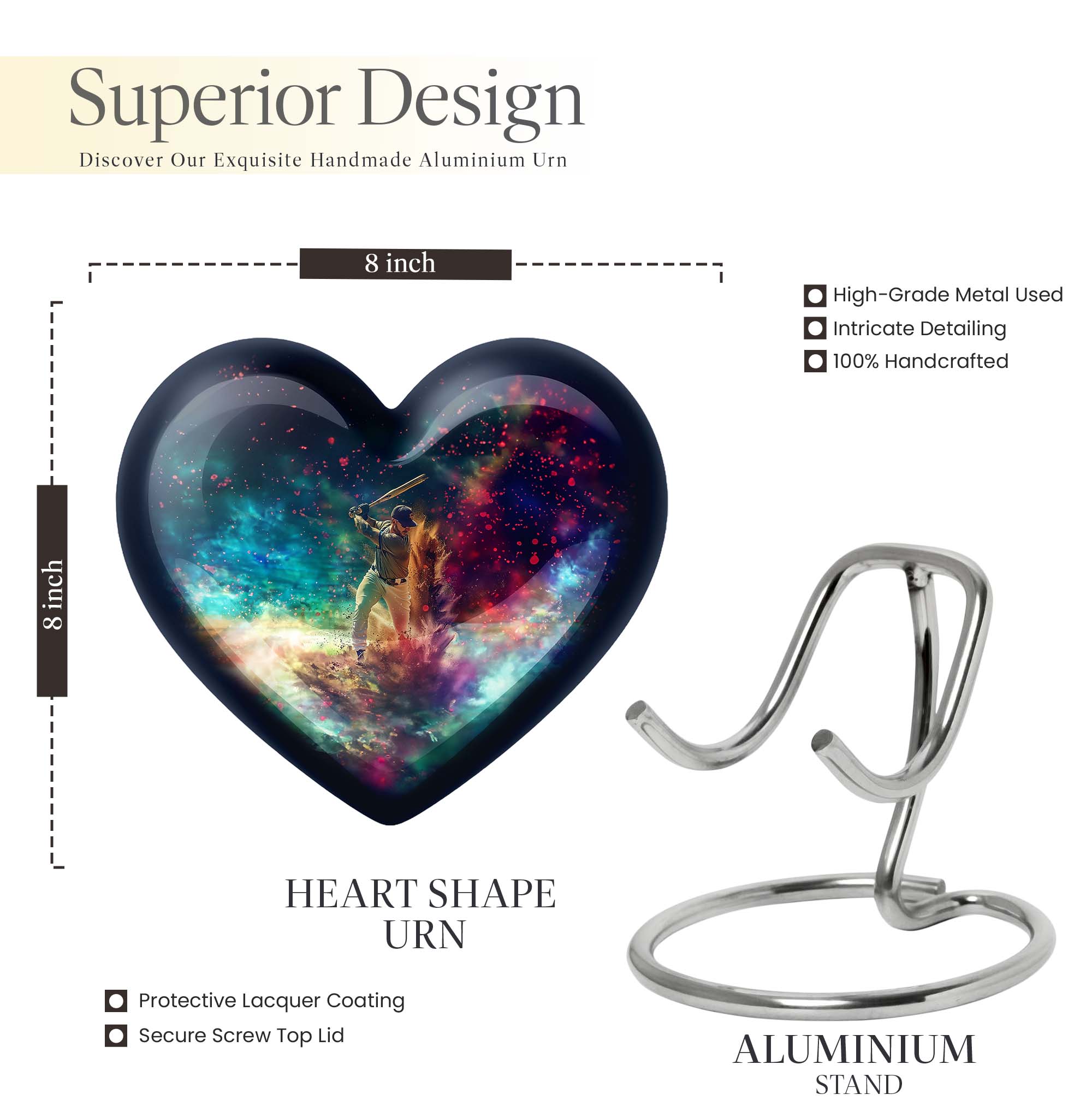 Discover the enveloping symbolism of our Butterfly Heart Urn, a large aluminium urn with an enchanting 10-inch stature. This expressive cremation urn serves as a meaningful tribute. It hosts a notable capacity of 200 cubic inches, embodying sentiments as profound as the relationships they honor. Announced at a modest weight of 3.3 pounds, it delivers a poignant balance of presence and discernment. The package offers an intimate velvet pouch, specially designed for the respectful containment of ashes. Personalize this burial urn for an adult female, with engravings, adding an intimate touch to an enduring memento. Our funeral urn deftly navigates the balance of quality and legacy. Whether you’re in search of a burial urn for an adult woman or a metal urn for the ashes of an adult male, expect a memorial gift fostering solace and serenity. Please note: This cremation urn does not disclose its 'Baseball Urn' design.