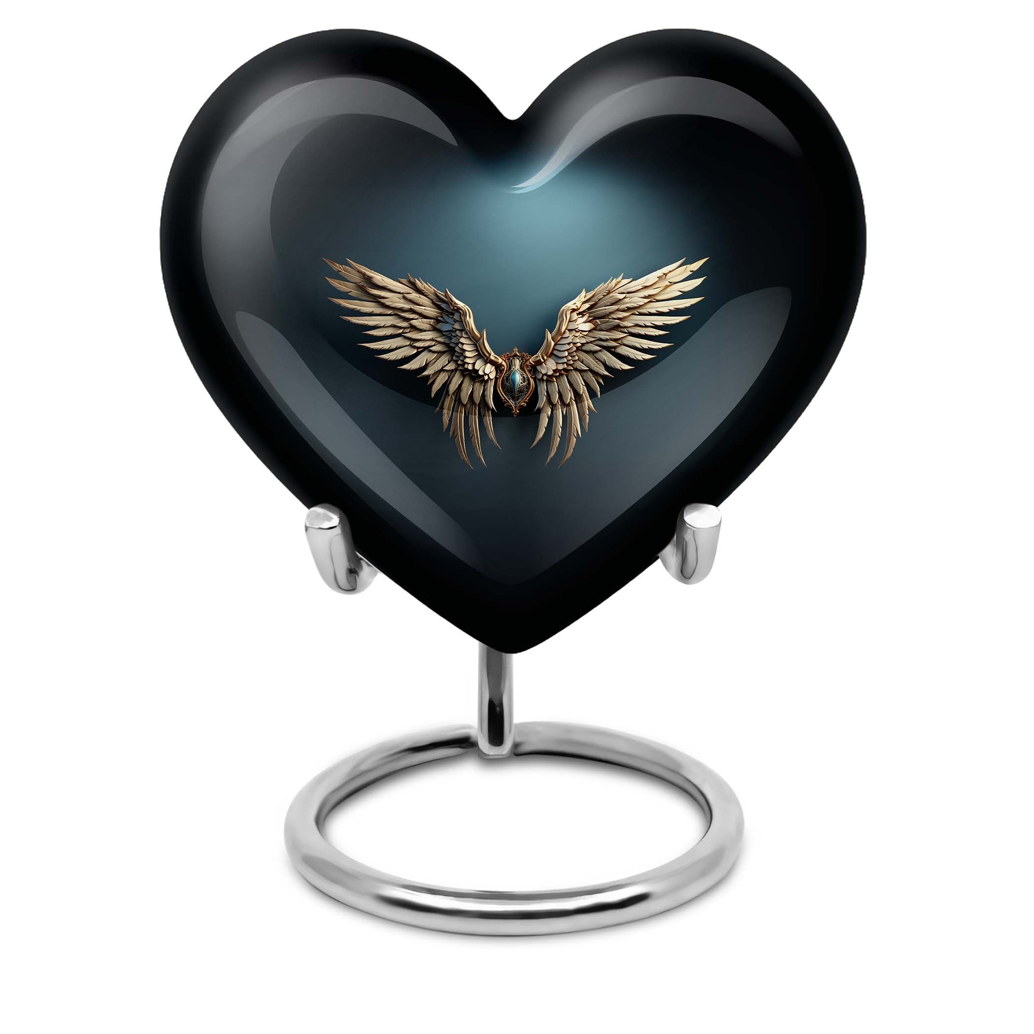 Unveiling our Wings Blue Urn, a large burial container designed for adults requiring peace and tranquility during memorial ceremonies. At a sturdy weight of 3.3 pounds, this aluminium-based urn embodies durability and elegance. Its butterfly theme imparts a sense of life's beauty and transformation, answering to both the delicacy of loss and the spirit of remembrance. The Heart Urn measures 10 inches in height, providing a capacity of up to 200 cubic inches for ashes. This suitable size makes the container a fitting tribute and a subtle reminder of loved ones. Each urn comes complete with a velvet pouch, adding an additional layer of respect and care for the treasured remains within. Moreover, we understand the importance of individuality in remembrance; therefore, we offer personalized engraving for names. Keywords that could guide you in finding this product could include 'memorial adult urns,' 'adult burial,' 'cremation urns for dad' and, of course, 'wings blue urn.' Experience a distinctive way of commemorating loved ones with our Memorial Adult Urns.
