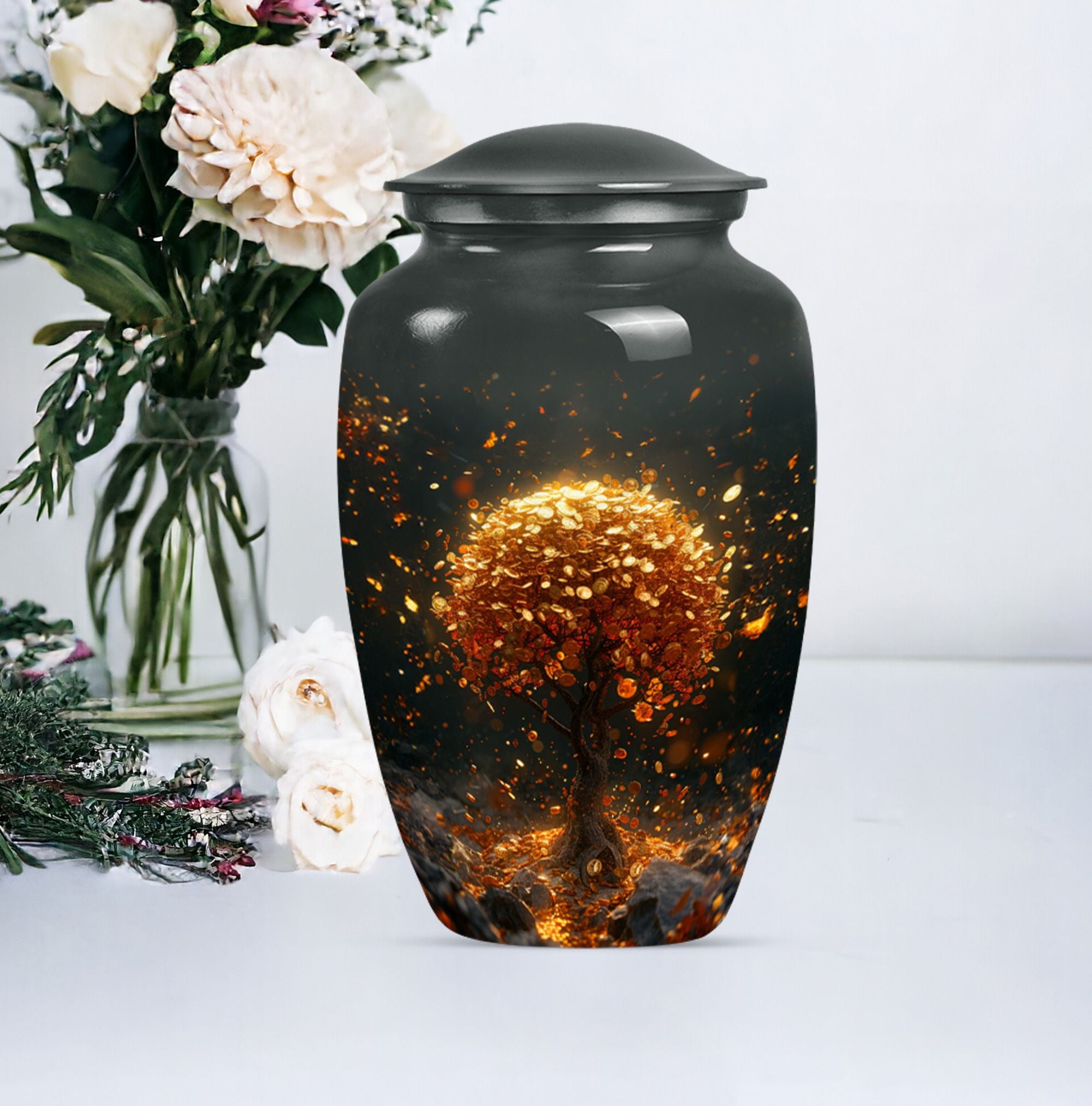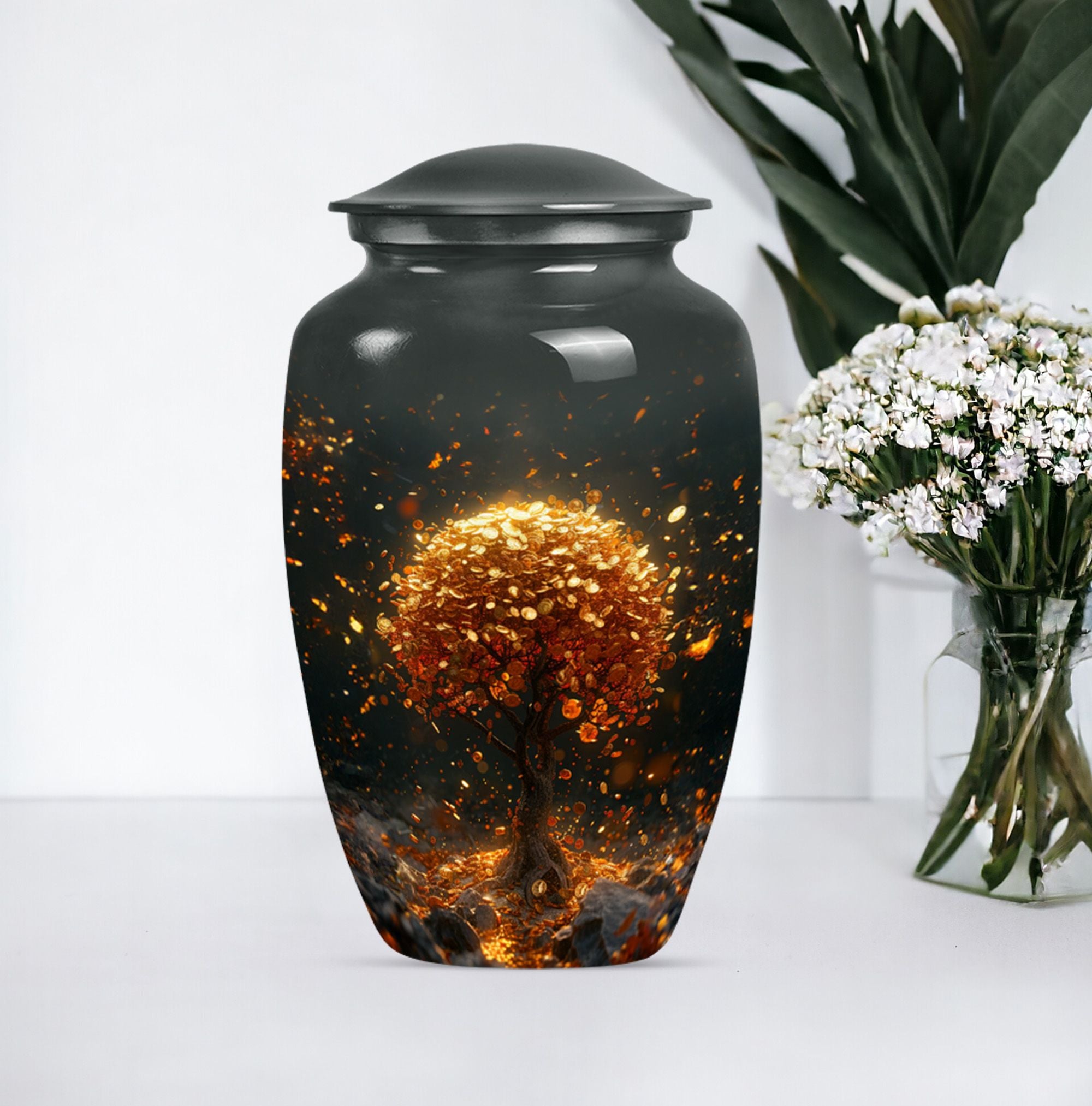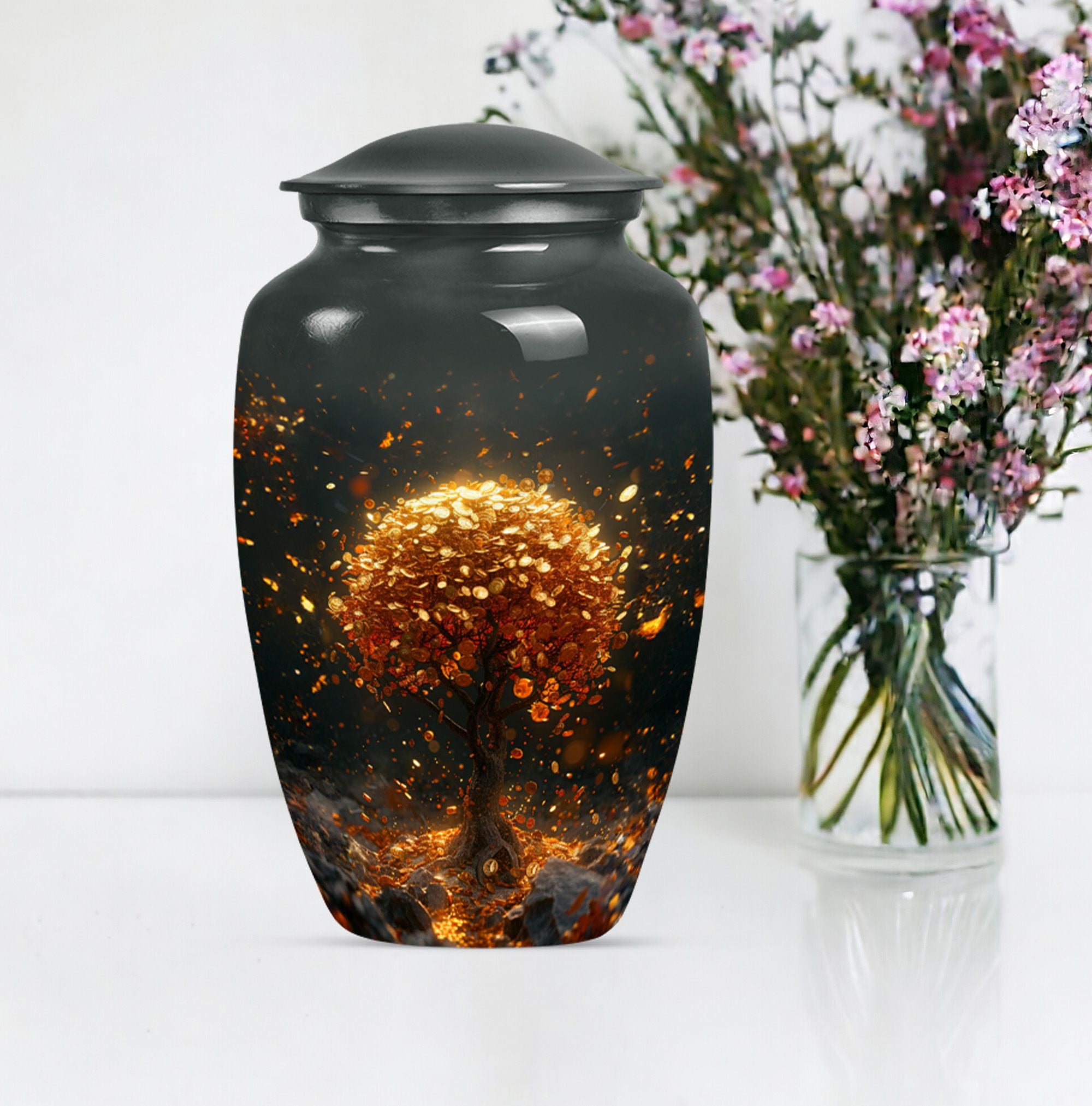 Discover the comfort of remembrance and the elegance of spirituality through our 10-Inch Tree of life cremation urn. This sizeable vessel, ideal for adult males and females, offers a substantial 200 cubic inch capacity - ensuring enduring containment for your beloved ones' remains. Weighing a solid 3.3 pounds and crafted from sturdy aluminium, this large urn is characterized by a classic design with an abstract theme. The element of customization steals the limelight, as it allows personalized engravings to adorn the urn, thereby fostering a unique bond. The cremation urn doesn't forego practicality, arriving with a velvet pouch meant for secure containment of ashes. This particular feature makes the urn package a comprehensive solution in memorial ceremony supplies. Hence, this cremation companion urn captures the essence of human connection, immortalizing it not just spiritually, but physically as well. Keywords to remember: tree of life urn, funeral large urns for human ashes adult male, memorial urns for ashes adult female, and ash adult women.
