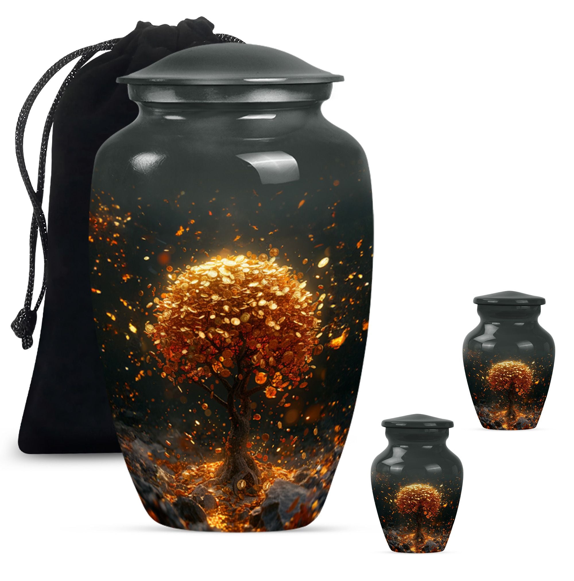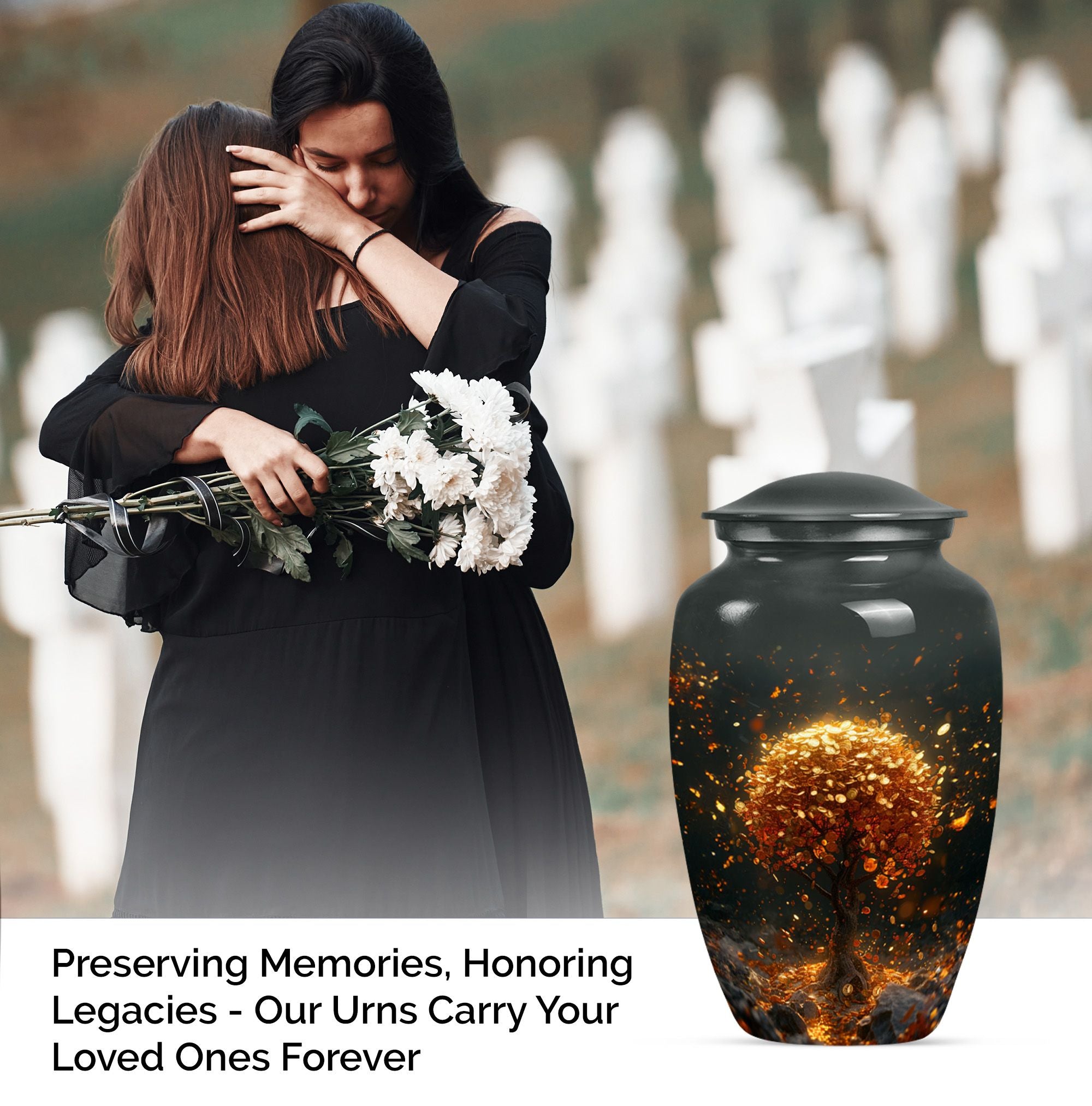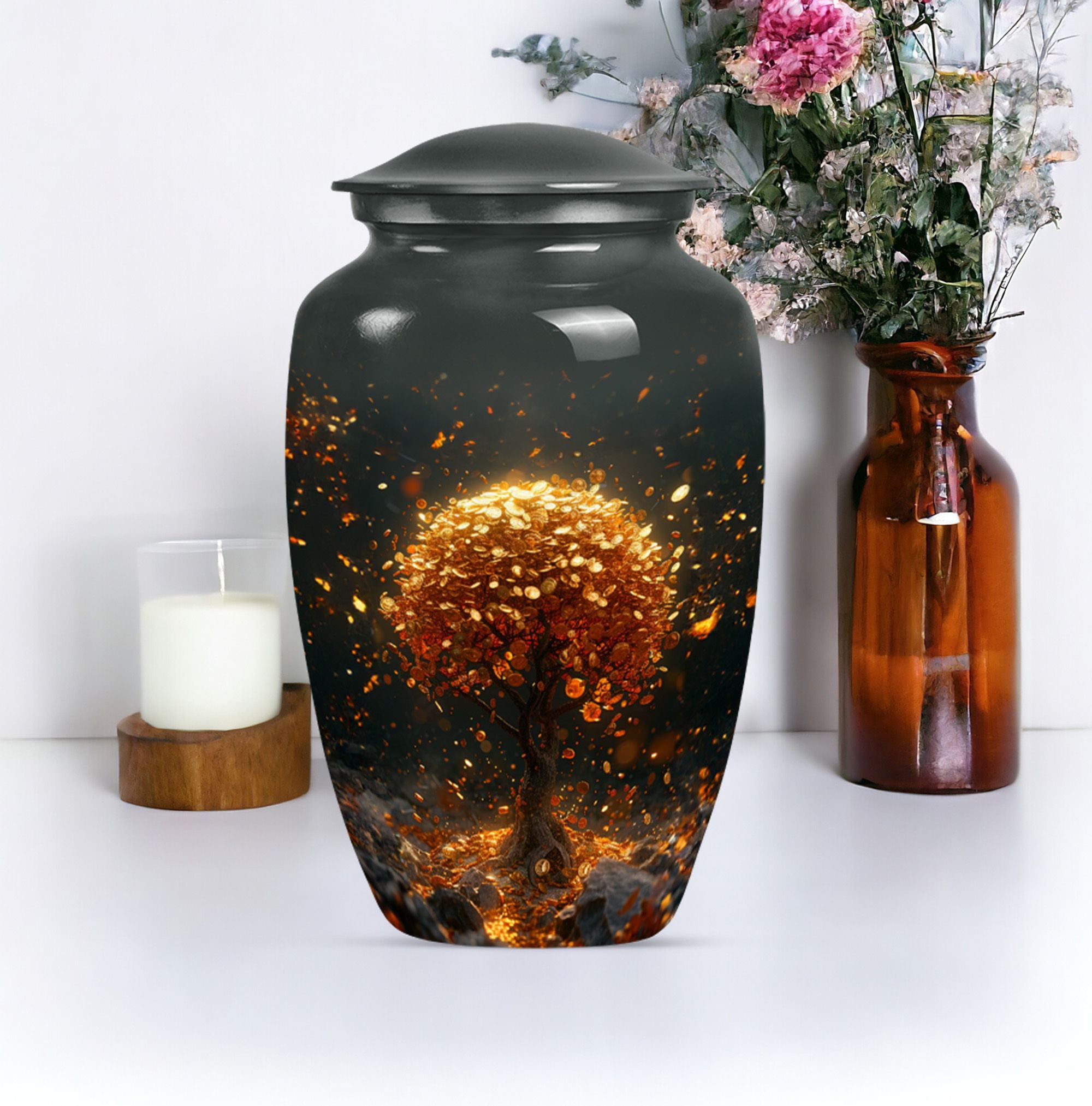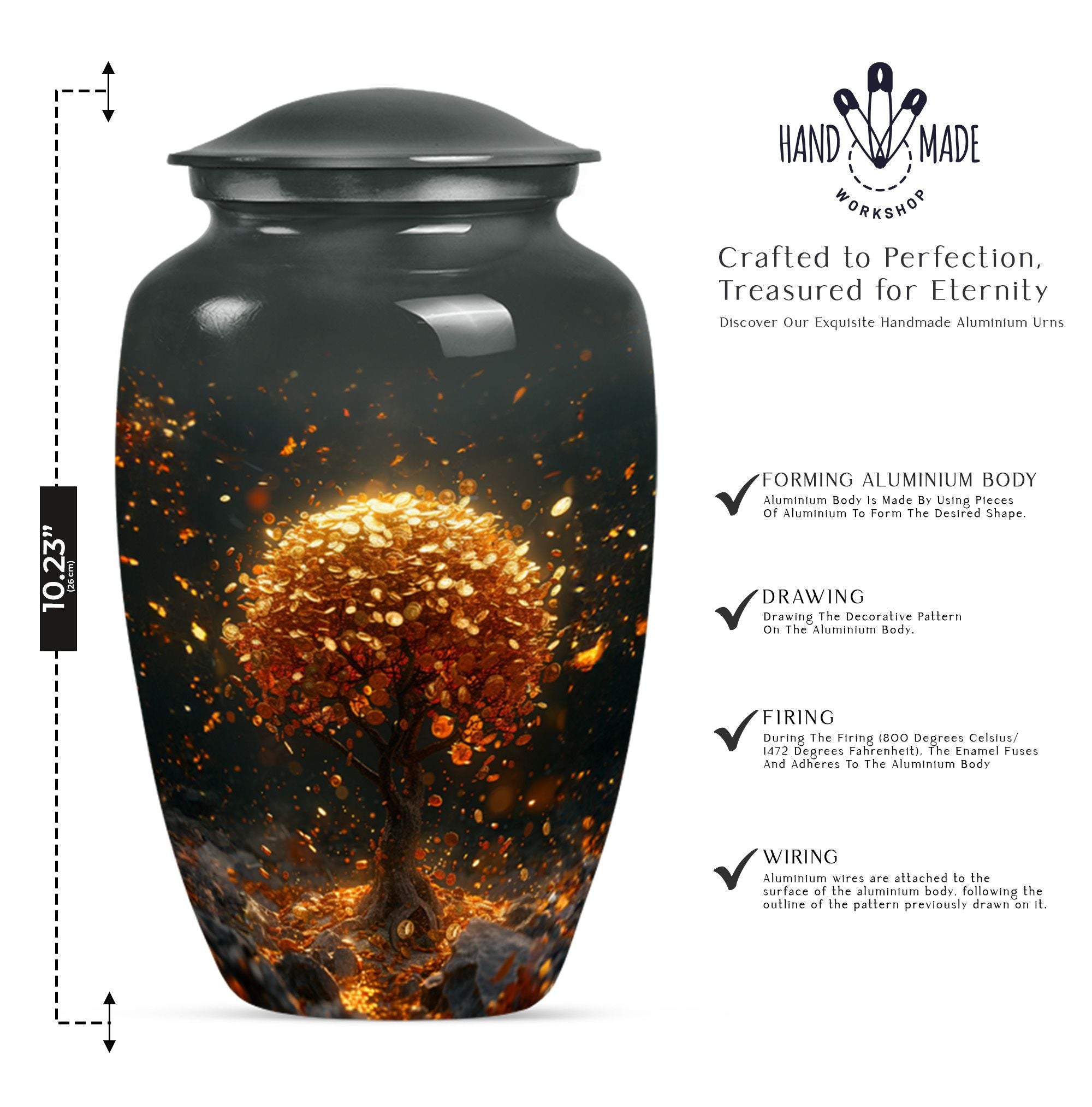 Discover the comfort of remembrance and the elegance of spirituality through our 10-Inch Tree of life cremation urn. This sizeable vessel, ideal for adult males and females, offers a substantial 200 cubic inch capacity - ensuring enduring containment for your beloved ones' remains. Weighing a solid 3.3 pounds and crafted from sturdy aluminium, this large urn is characterized by a classic design with an abstract theme. The element of customization steals the limelight, as it allows personalized engravings to adorn the urn, thereby fostering a unique bond. The cremation urn doesn't forego practicality, arriving with a velvet pouch meant for secure containment of ashes. This particular feature makes the urn package a comprehensive solution in memorial ceremony supplies. Hence, this cremation companion urn captures the essence of human connection, immortalizing it not just spiritually, but physically as well. Keywords to remember: tree of life urn, funeral large urns for human ashes adult male, memorial urns for ashes adult female, and ash adult women.