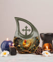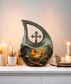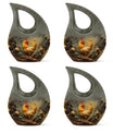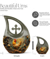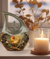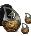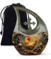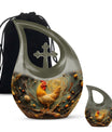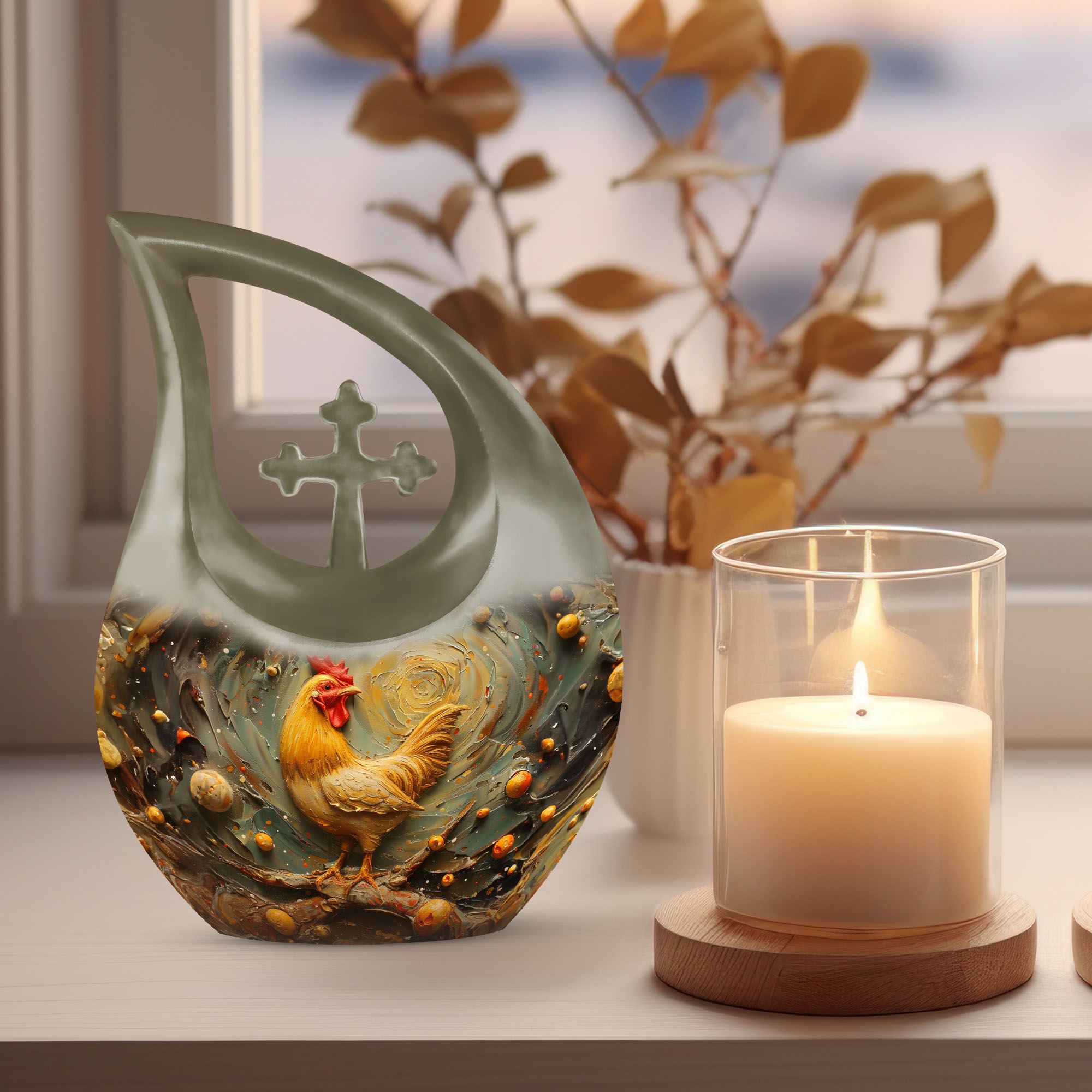 Fulfill your commemorative needs with an affordable, tastefully crafted Chicken Urn. Weaving a connection of faith and devotion, our 'Cross Drop' engraved, 10-inch aluminium urn is a large-sized token of enduring love that could be personalized with names. Its lightweight design at just 3.3 pounds, ensures easy repositioning, should you wish. With a unique offering of a complimentary velvet pouch, containment of ashes is solemnized, ensuring a dignified resting place. The unique 'Chicken' theme offers a heartwarming touch for those appreciating the simpler charm. Suitable for a volume of 200 cubic inches, our Low-cost Cremation Urns or memorial urns find a perfect place in your heart and home. Befitting for use as Cremation Containers and Urns For Ashes, their uniqueness lies in balancing sentiment with subtle elegance. Embrace a distinct ceremonial choice with this unique urn.