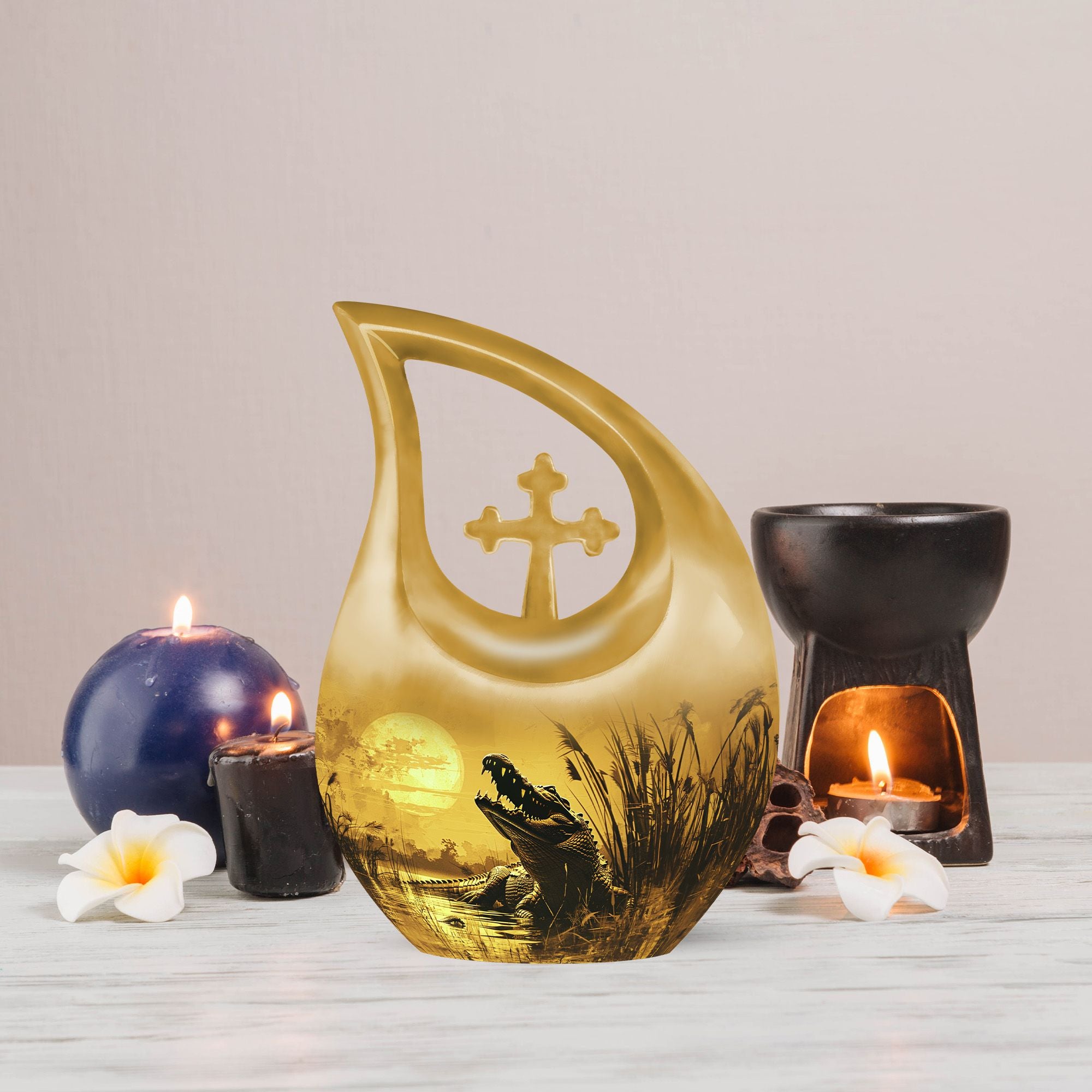 Choosing a final resting place is an act of deep love, and this Golden Alligator Cremation Urn offers a powerful tribute filled with warmth and symbolism. Designed for families seeking large cremation urns, a large urn for ashes adult male, or a meaningful large urn for ashes for women, it provides a dignified and comforting memorial for Mom, Dad, or any cherished loved one.