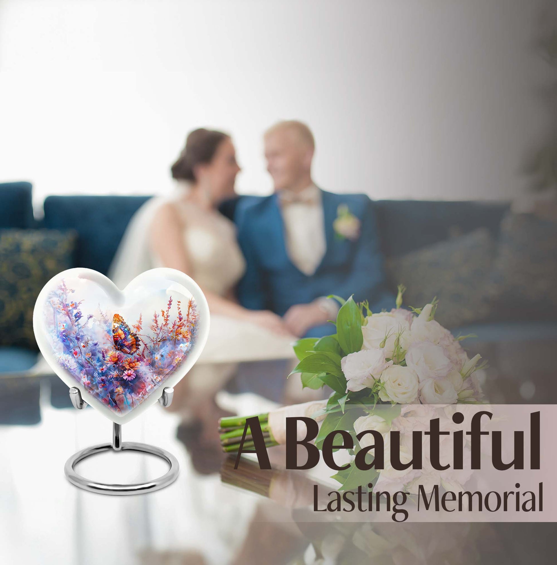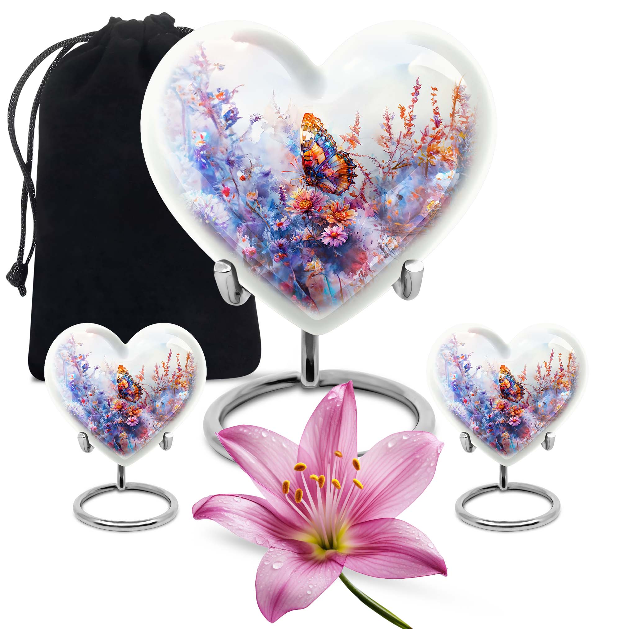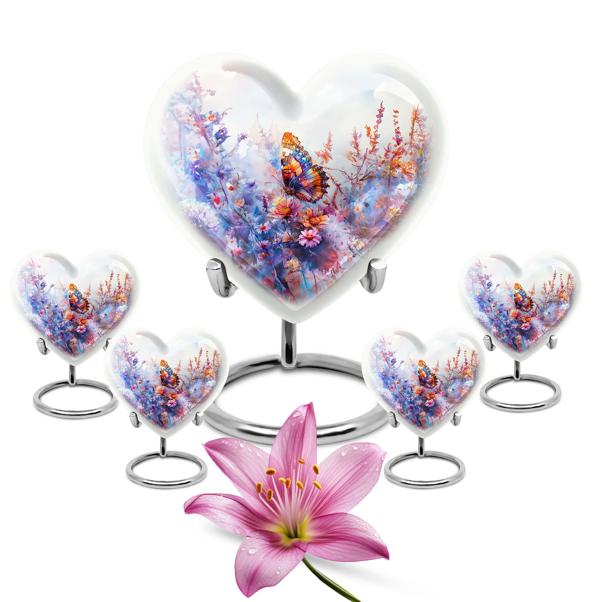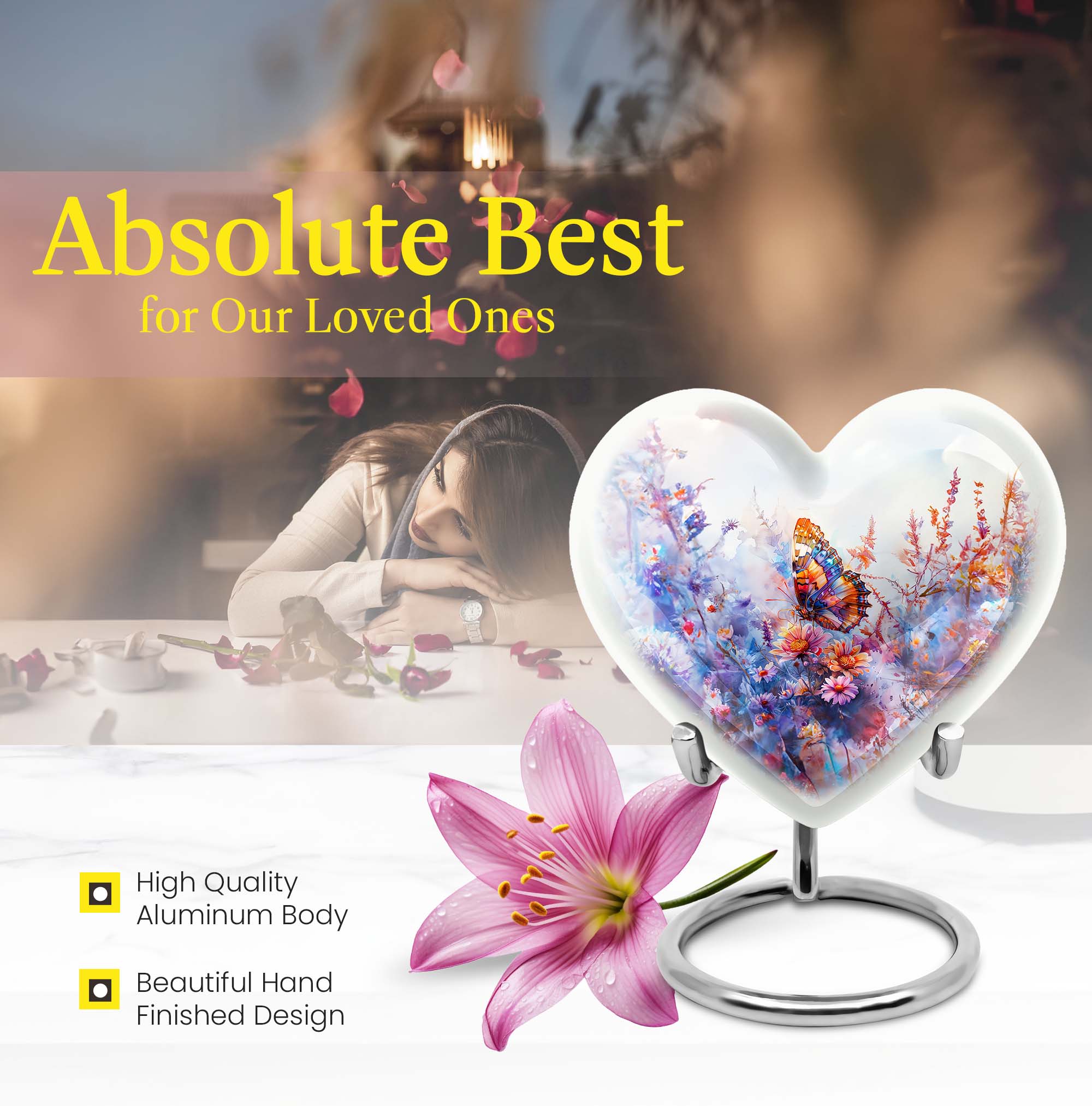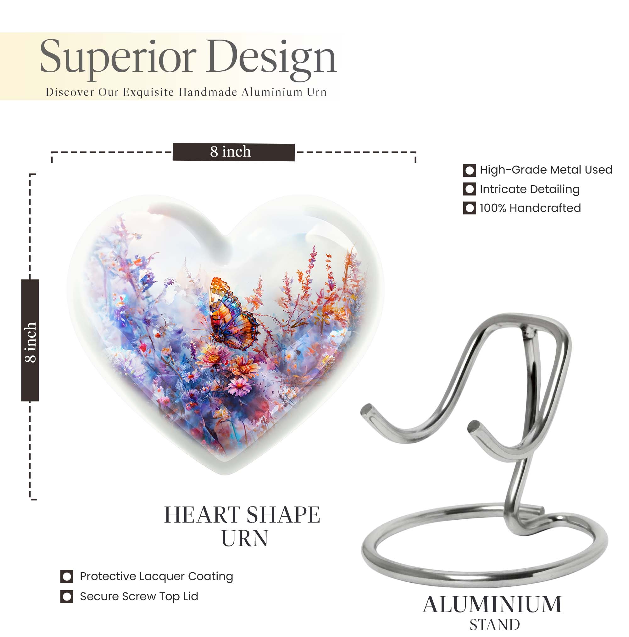 This exquisite heart-shaped butterfly urn is a beautiful way to cherish and safeguard your loved one’s memory. With vibrant artwork featuring butterflies and wildflowers, it symbolizes peace, hope, and eternal love.