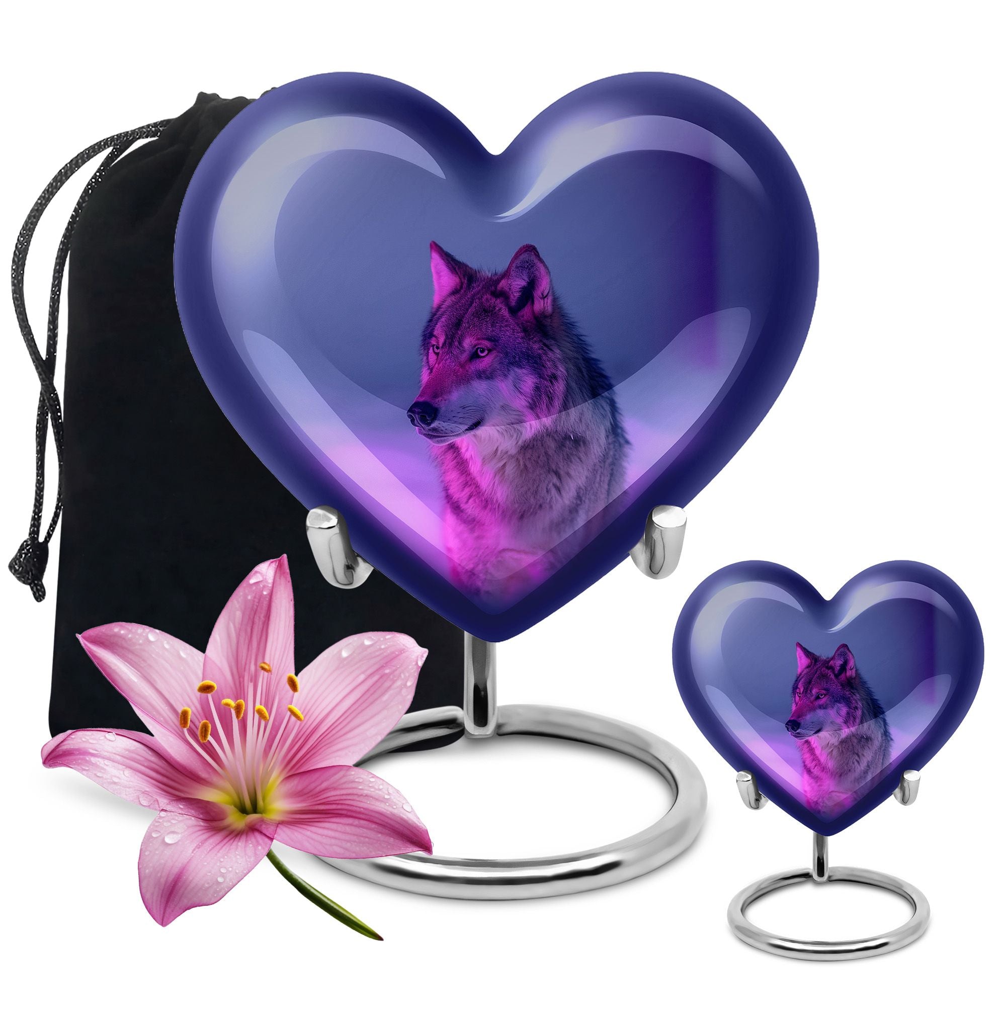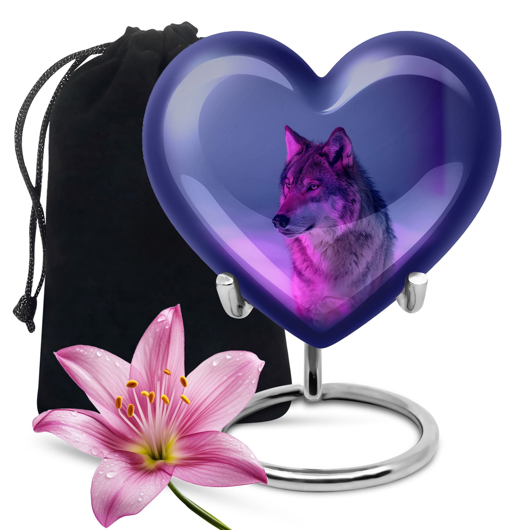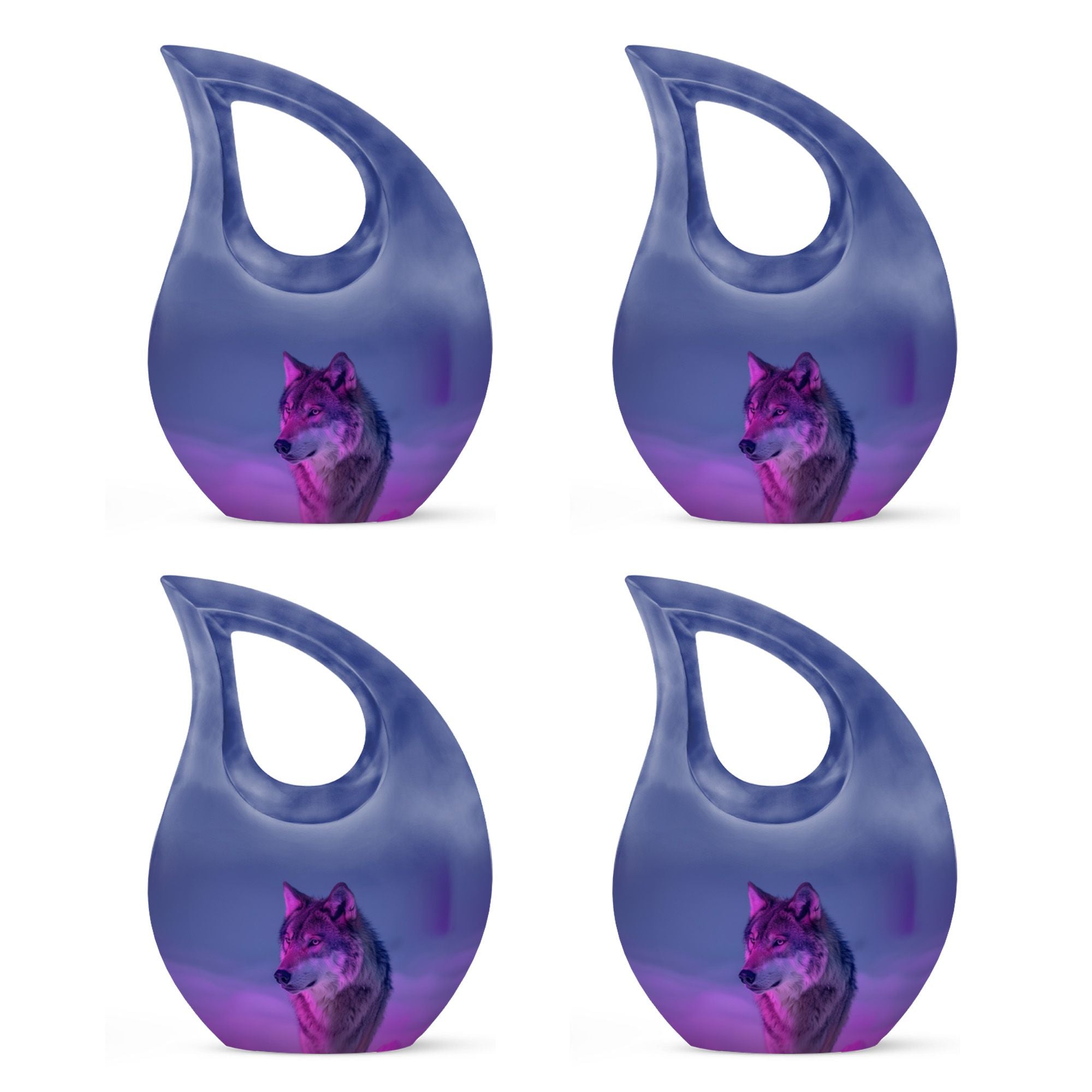 Expertly crafted with precision and care, this purple wolf urn is made from high-quality materials, offering both durability and elegance. The striking artwork showcases a serene wolf design surrounded by soft hues of purple—symbolizing peace and transformation. Perfect as wolf urns for cremation or wolf urns for human ashes, it features a smooth finish and secure closure to protect your loved one’s ashes for generations. Whether displayed at home or used as a burial urn wolf, its craftsmanship and symbolic beauty make it a heartfelt tribute.