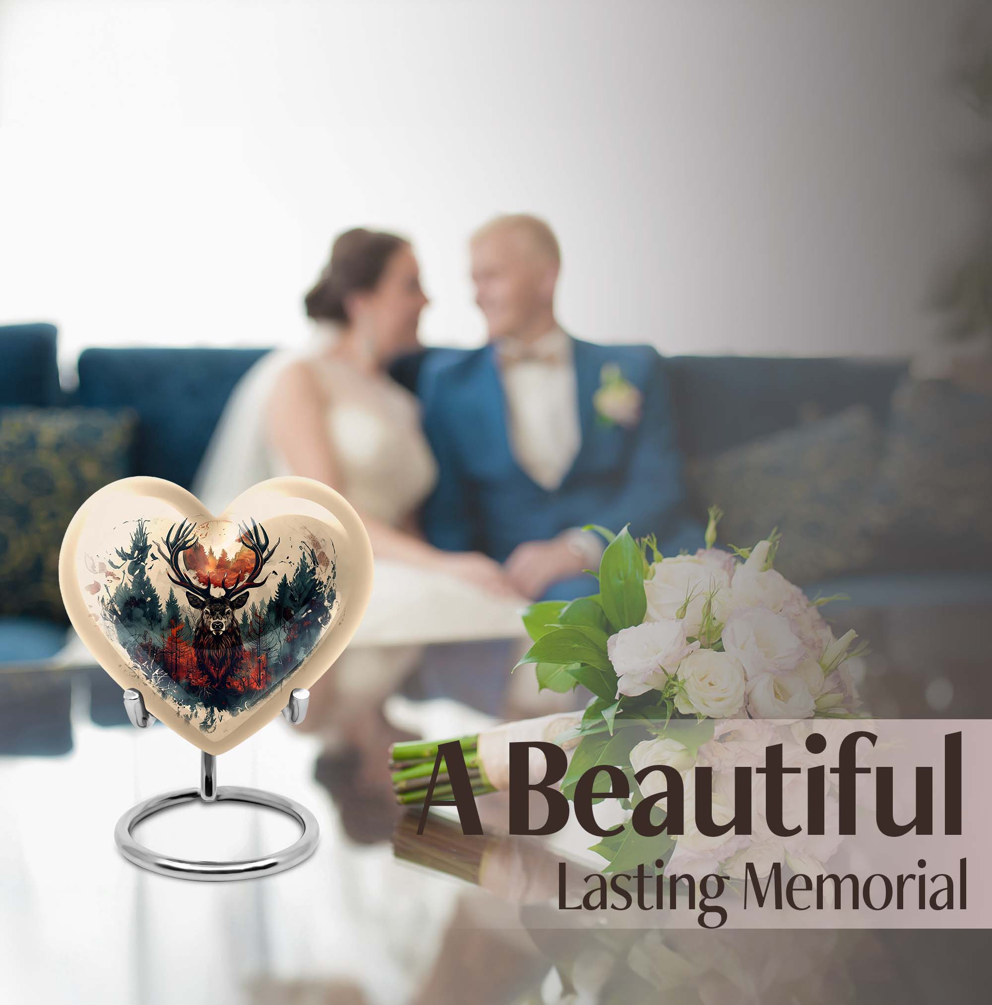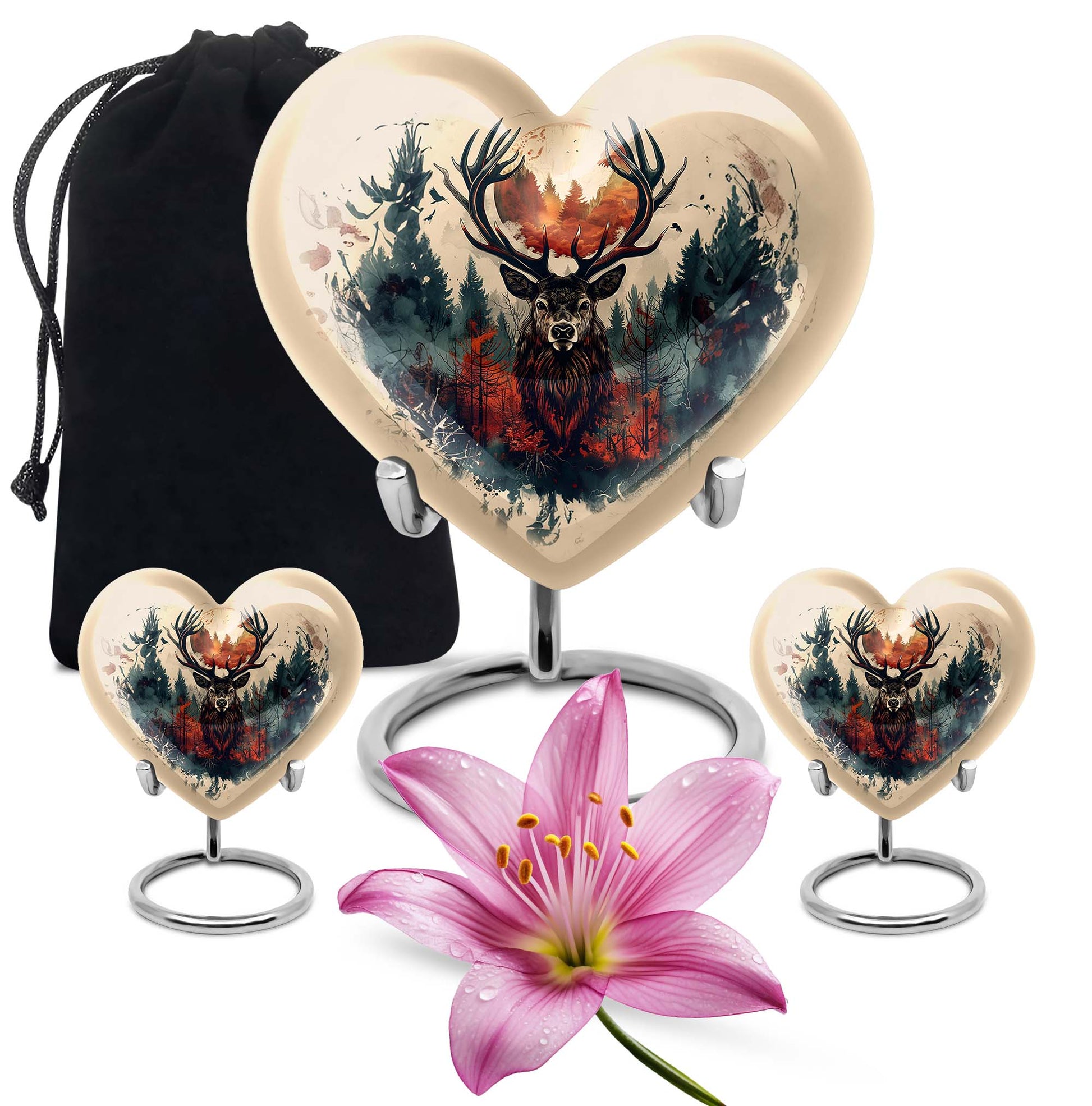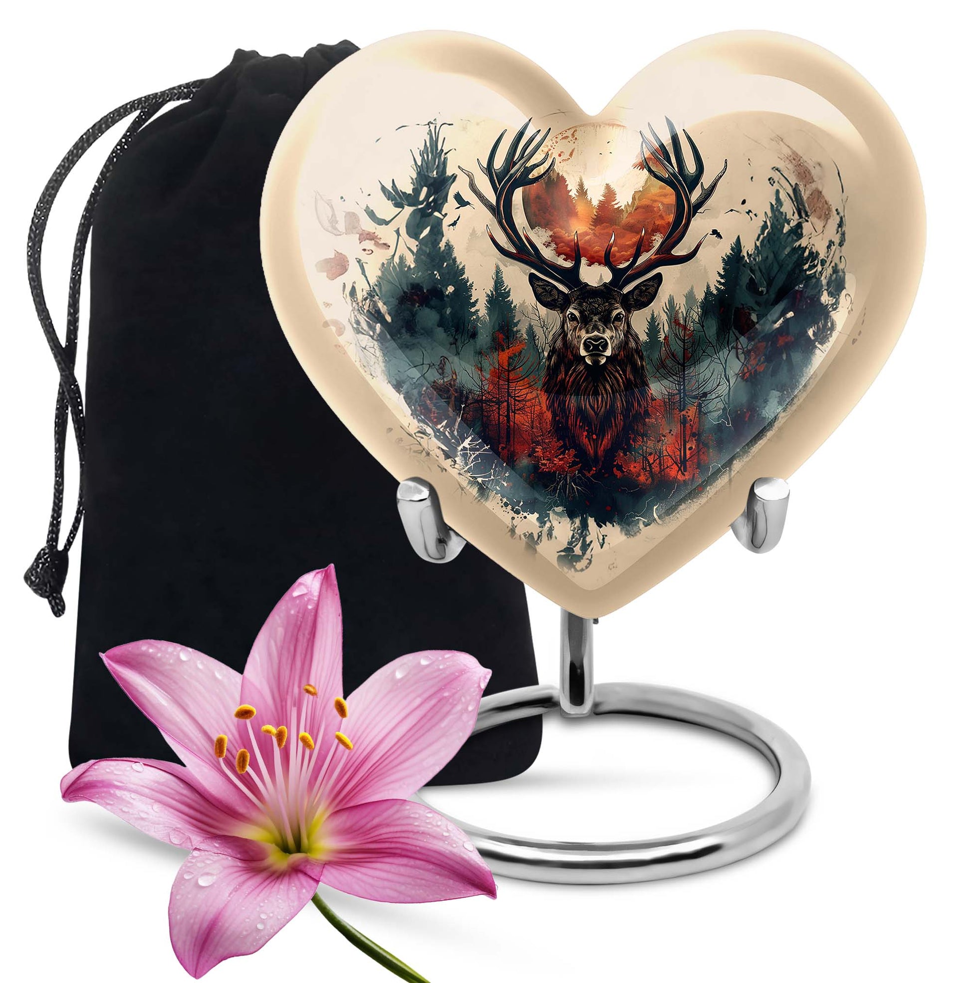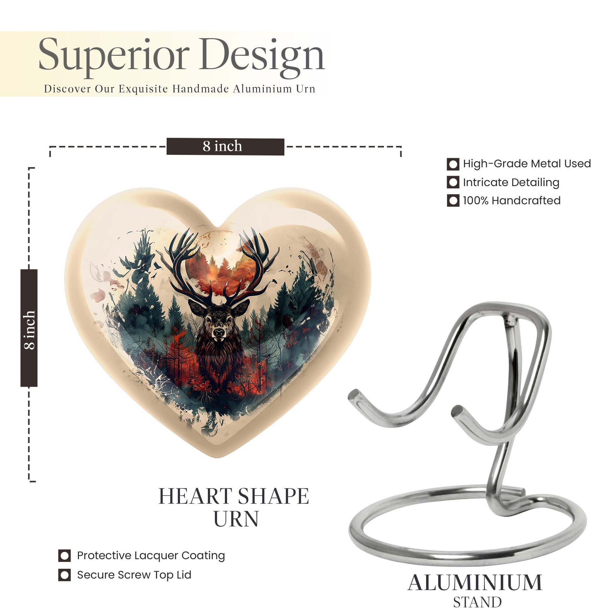 Discover the heart-warming comfort of our wolf-themed Deer Urn in the challenging times of bereavement. Also known as memorial urns, this particular piece is of large size, translating to 10 inches in height and has the capacity to hold up to 200 cubic inches of ashes, making it ideal for an adult burial, funeral urns for burial, or cremation ashes. Crafted with utmost care and precision from robust Aluminium, the urn weighs around 3.3 pounds, promising long-lasting durability. The Heart Urn design, accented by the deeply emotive theme of the 'Wolf Howling', not only serves as a memento but also as a sympathetic tribute to your loved one. The urn package also includes a velvet pouch designed for the safe containment of ashes. For a more personal touch, we offer customization options to engrave names, adding a meaningful connection to this precious keepsake. This piece is a thoughtful choice especially when searching for cremation urn for dad or human adult urns. Discover the solace that comes with the perfect memorial by choosing our Deer Urn.